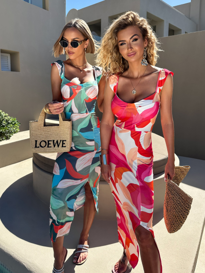Oranžové elegantní šaty AMONA s květinovým vzorem