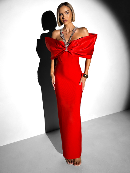 Bílé dlouhé saténově šaty ABIMA bez ramínek