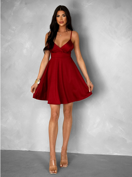 Bordó krajkované společenské áčkové mini šaty NUVIMA