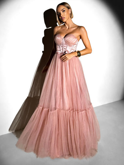 Šedé společenské tvarující dlouhé šaty ESSENTIA