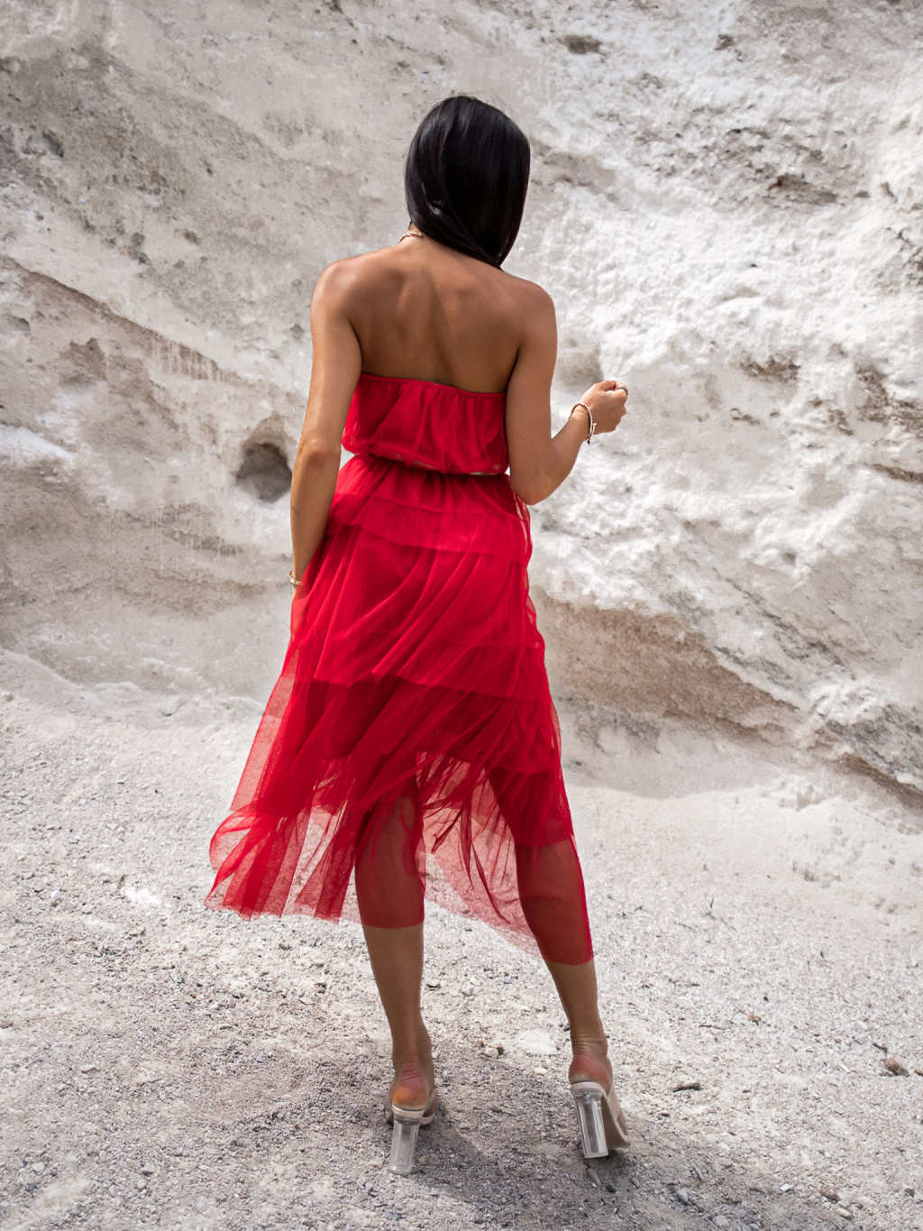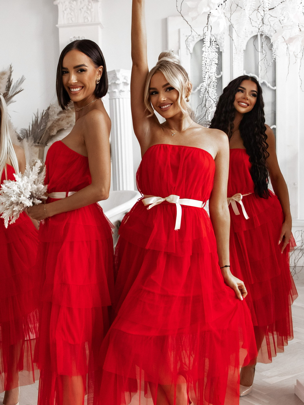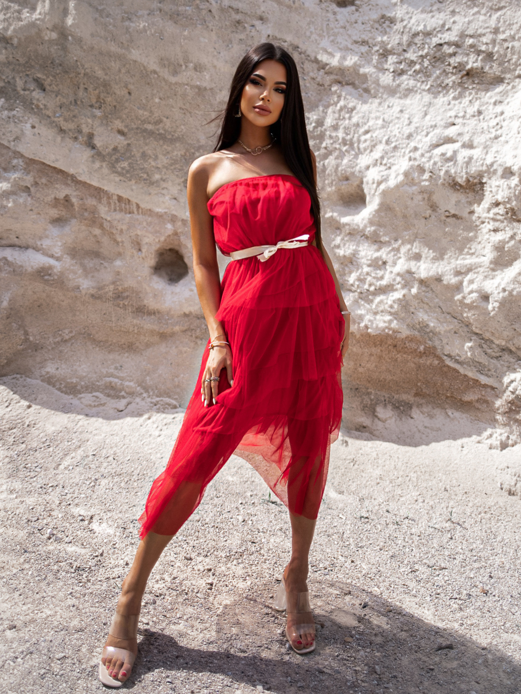 Červené elegantní šaty HARMONIA s mašlí
