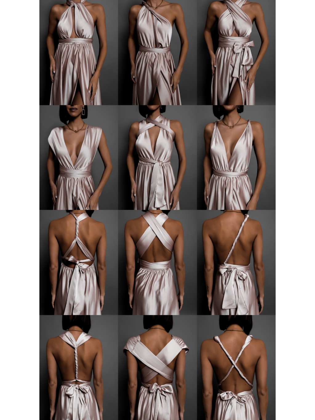 Tyto nádherné šaty jsou dokonalou volbou pro plesy i jako družičkovské šaty. Lesklý materiál dodává luxusní vzhled, zatímco rozparek přidává špetku sexy vzhledu. Variabilní vázání zajišťuje perfektní padnutí pro všechny typy postavy. Ideální kombinace elegance a pohodlí, která vás promění v hvězdu každé společenské události.