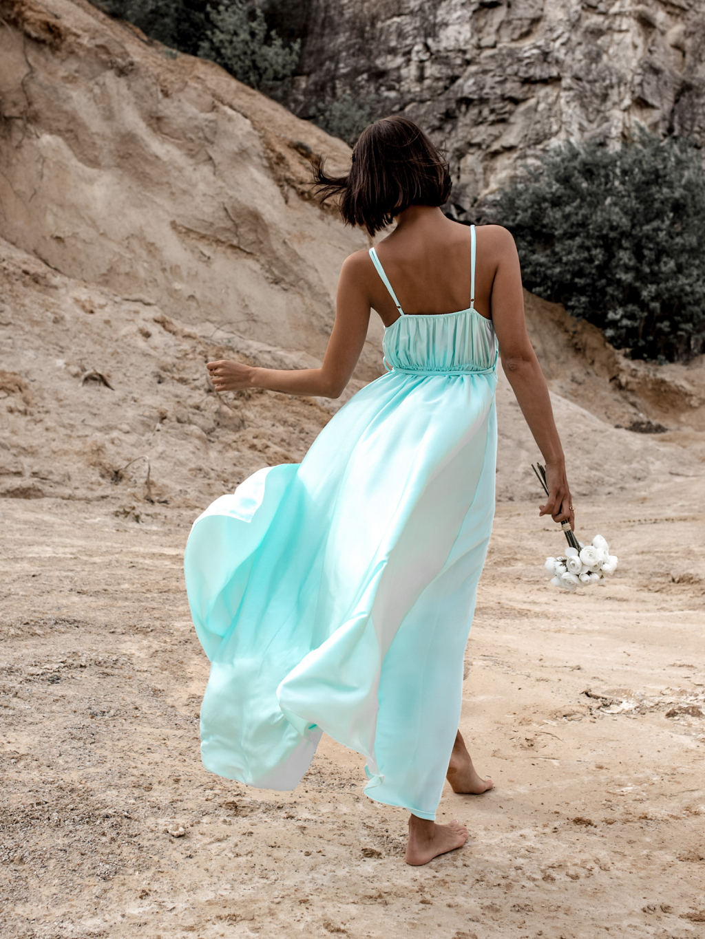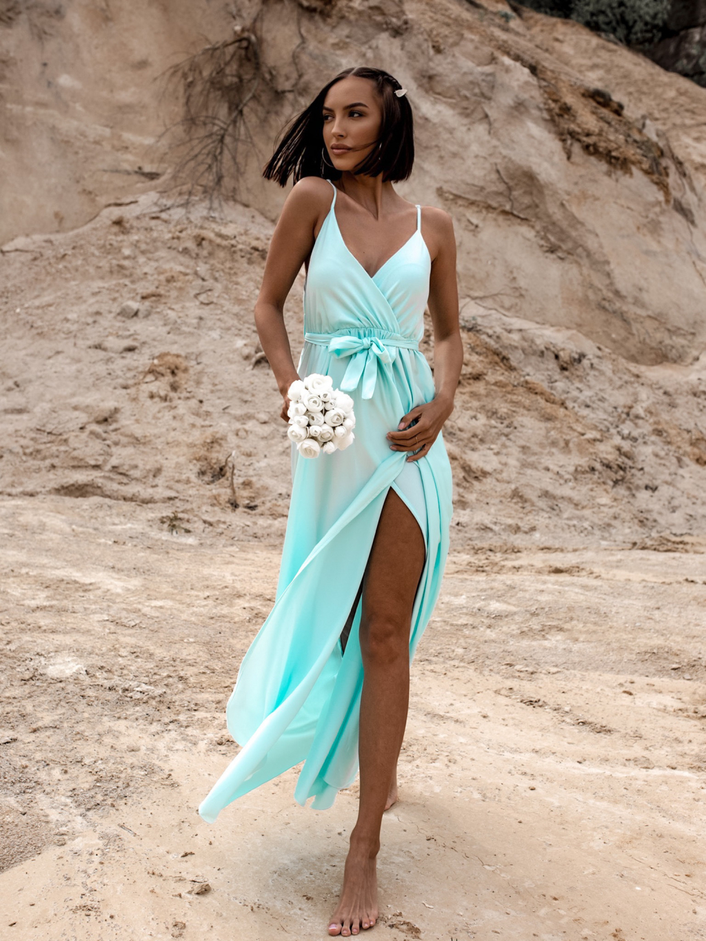Světle modré elegantní dlouhé šaty FAIRYTALE