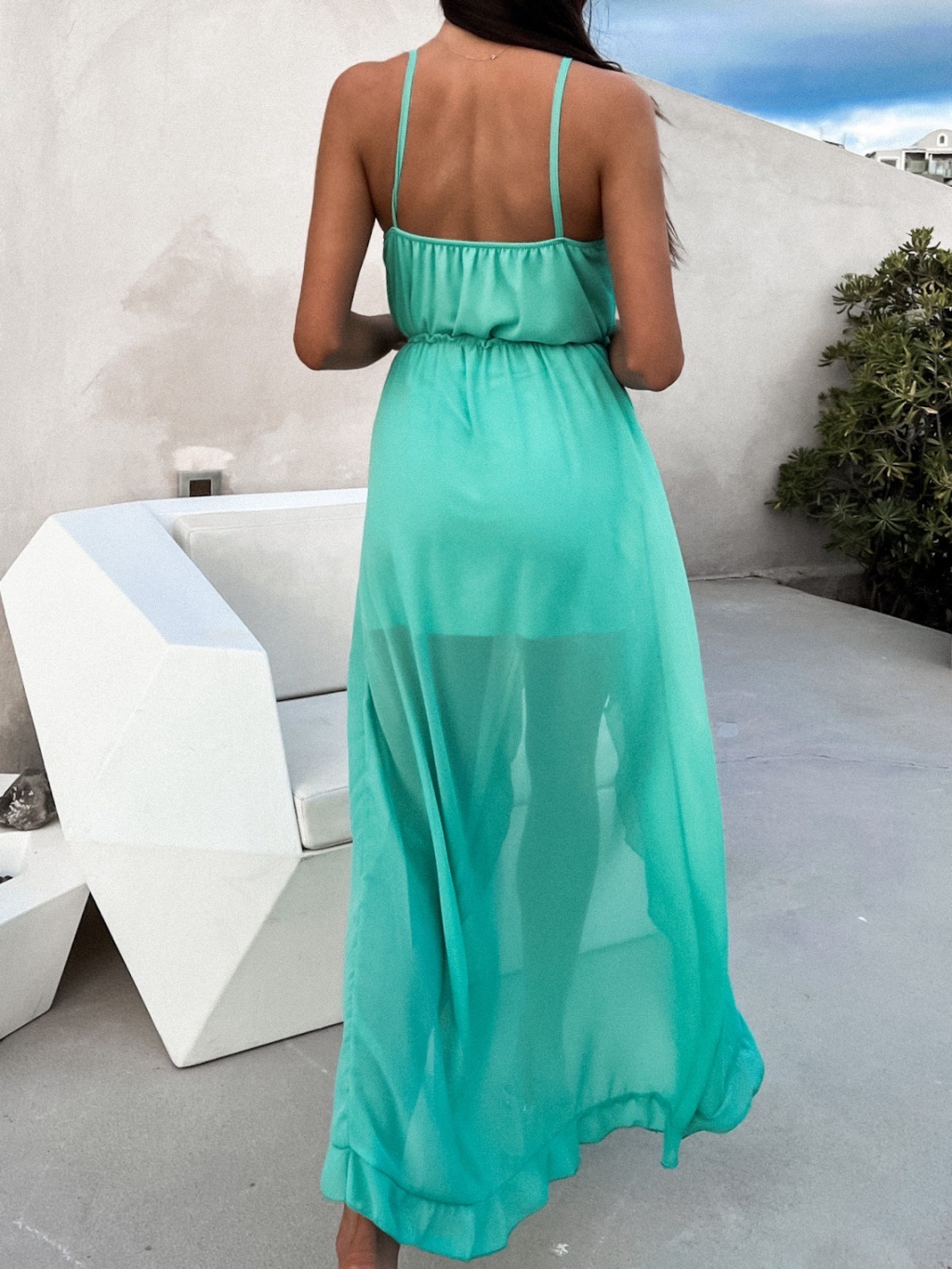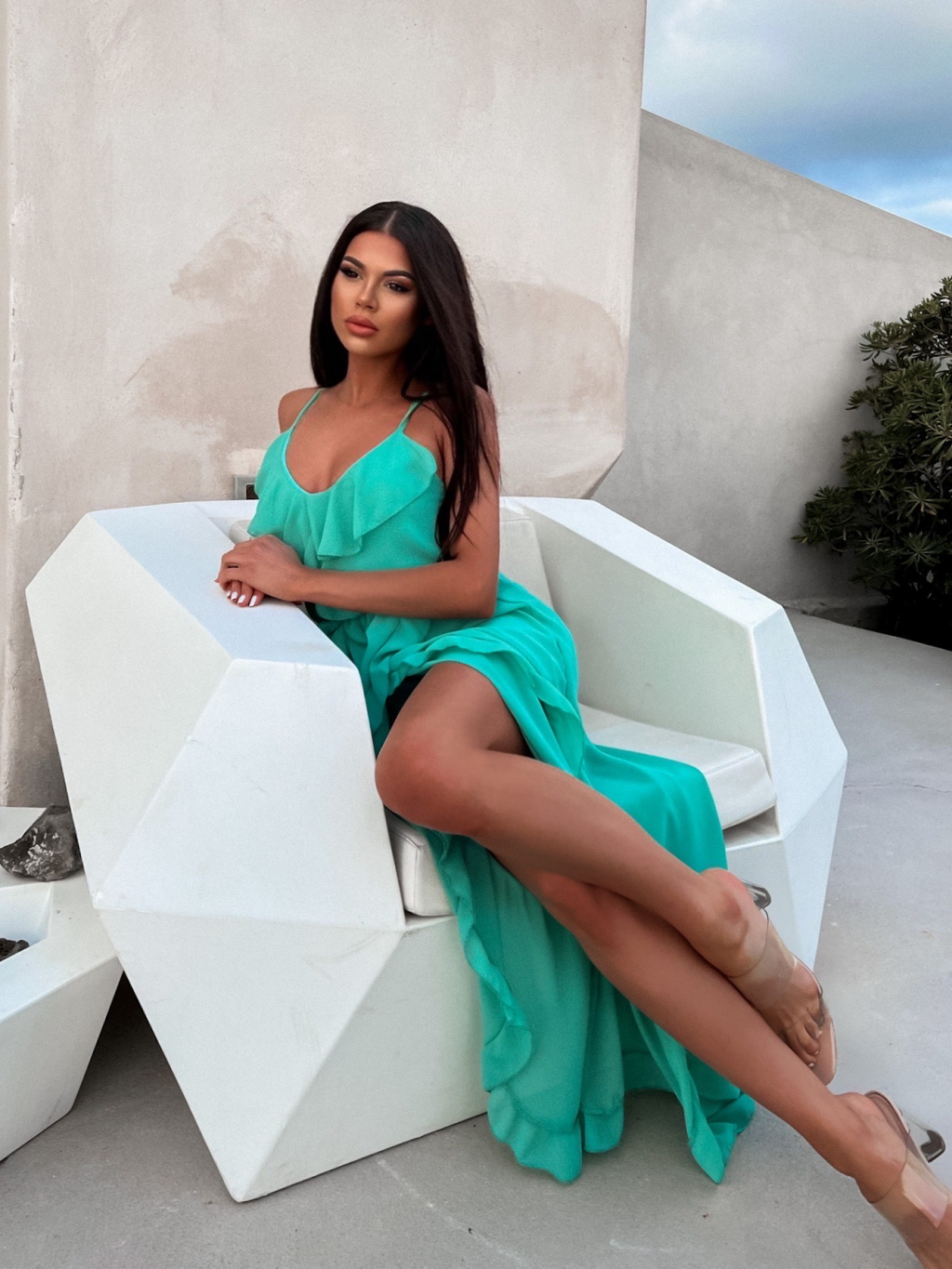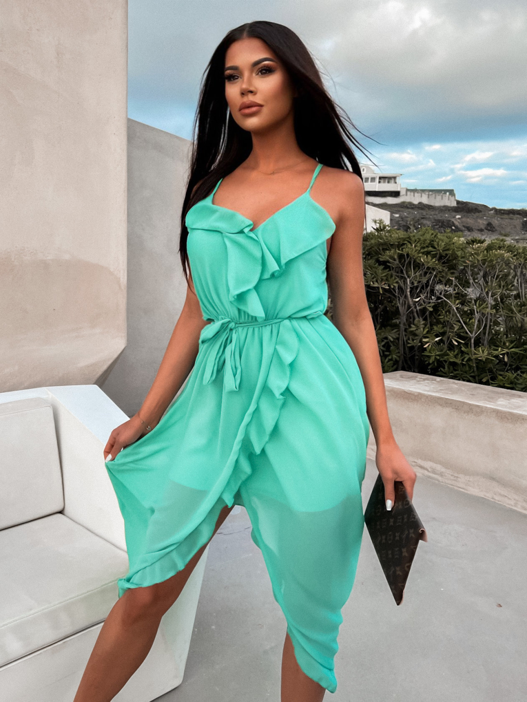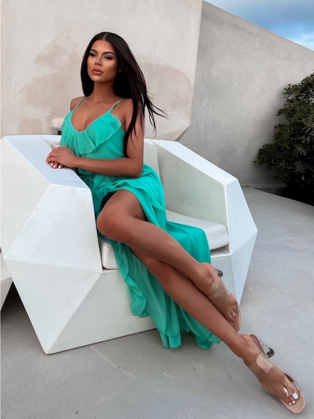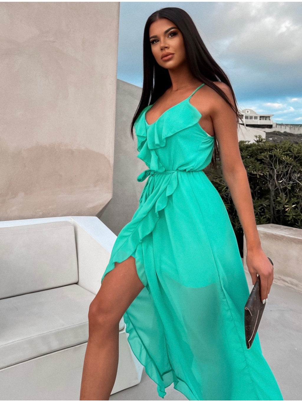 Tmavě tyrkysová volánkové šaty RHEA na ramínka