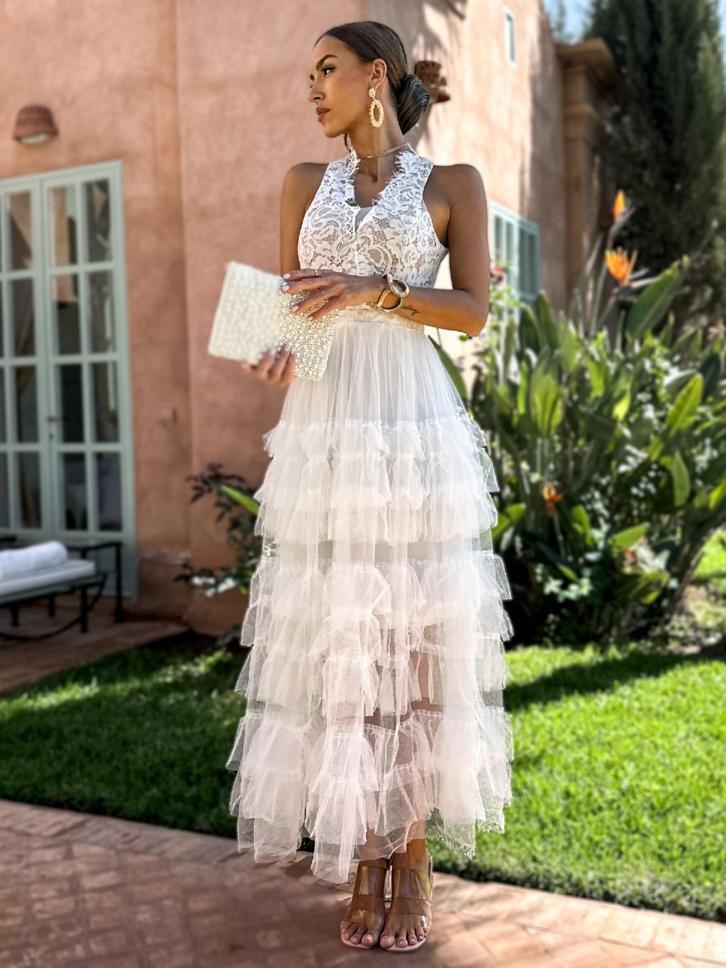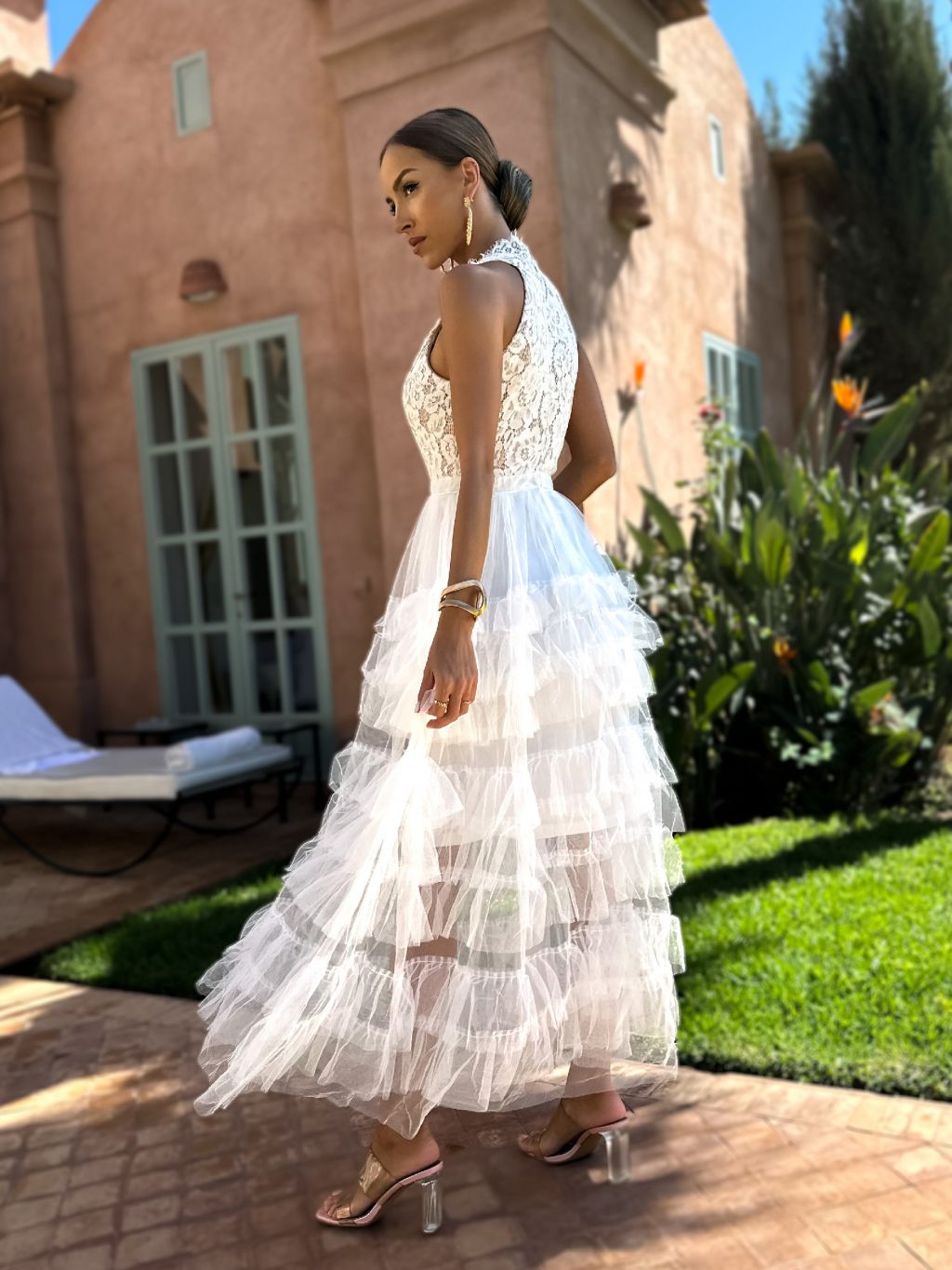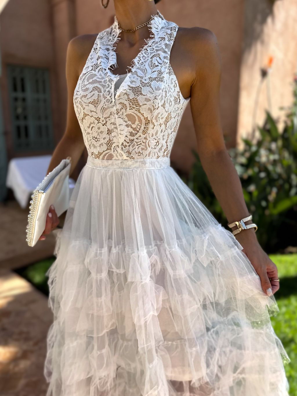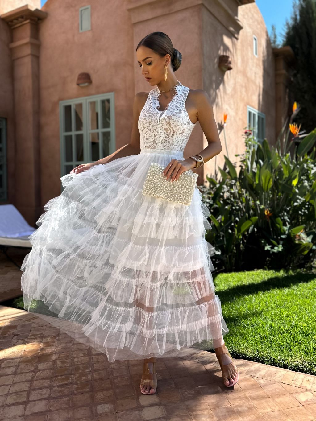 Bílé krajkové šaty JODYNY s tylovou sukní