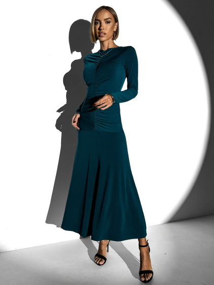 Tmavě petrolejové dlouhé saténové šaty GO HOME s krátkým rukávem