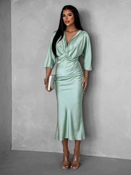 Světle zelené saténové šaty GAVYE s 3/4 rukávem