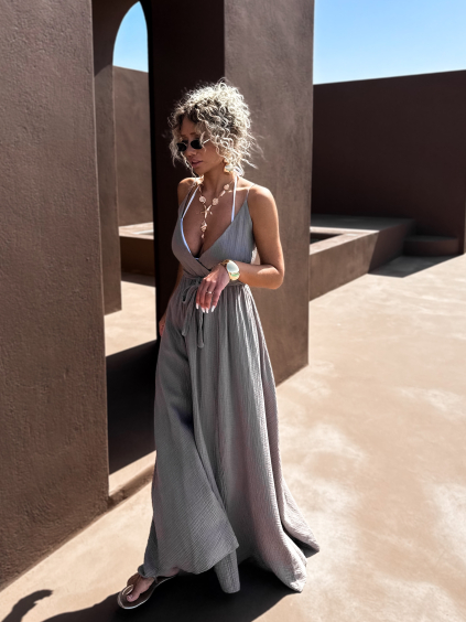 Šedohnědé dlouhé letní mušelínové šaty SILVERA