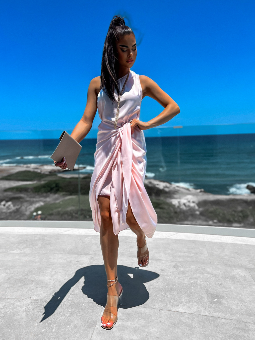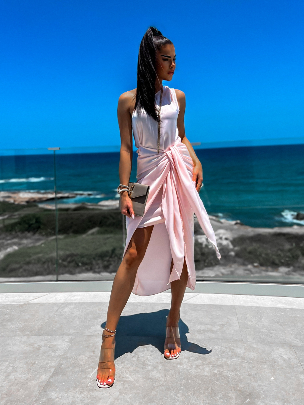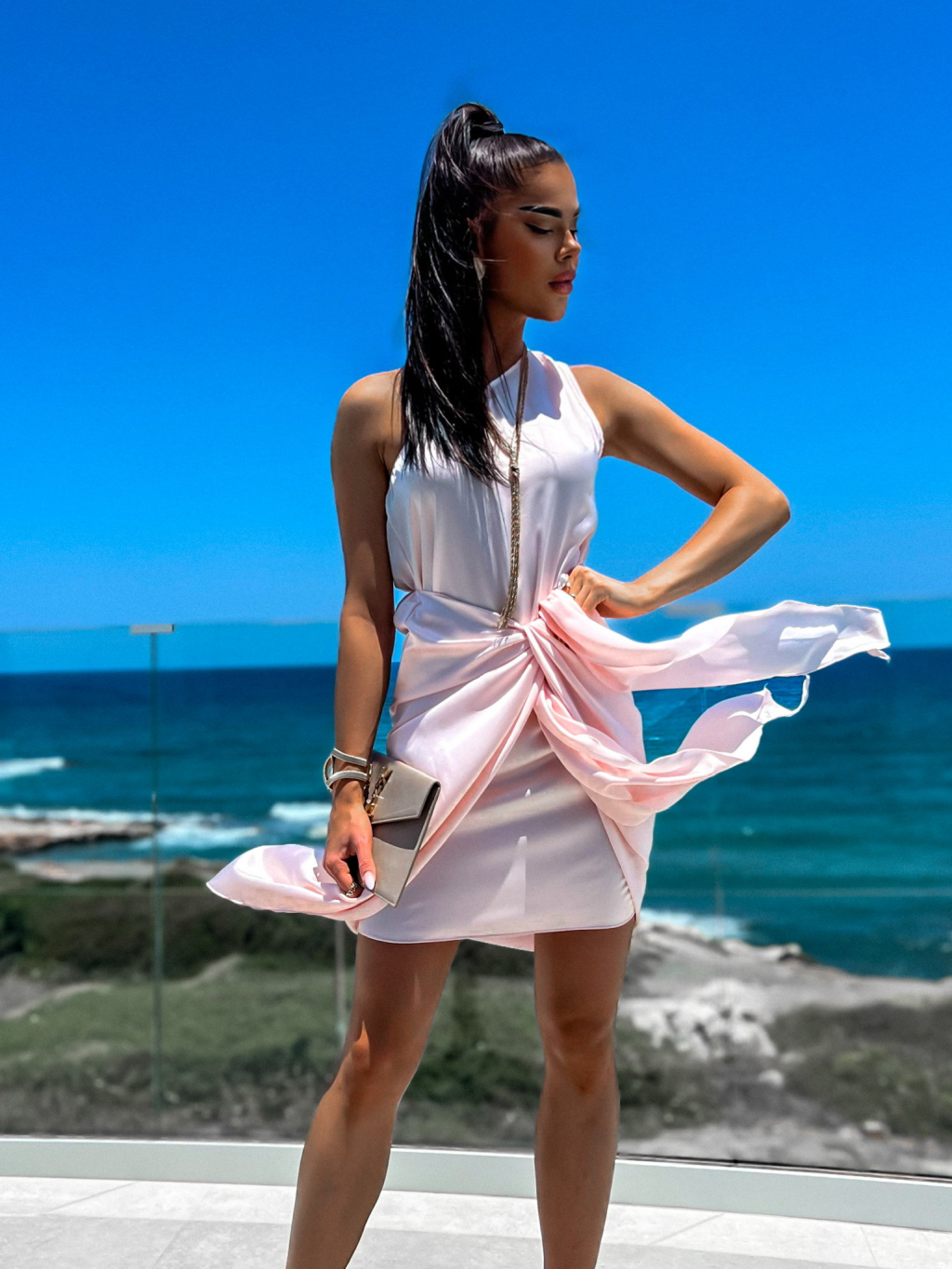 Baby růžové lesklé elegantní šaty LIBIOSI na jedno rameno