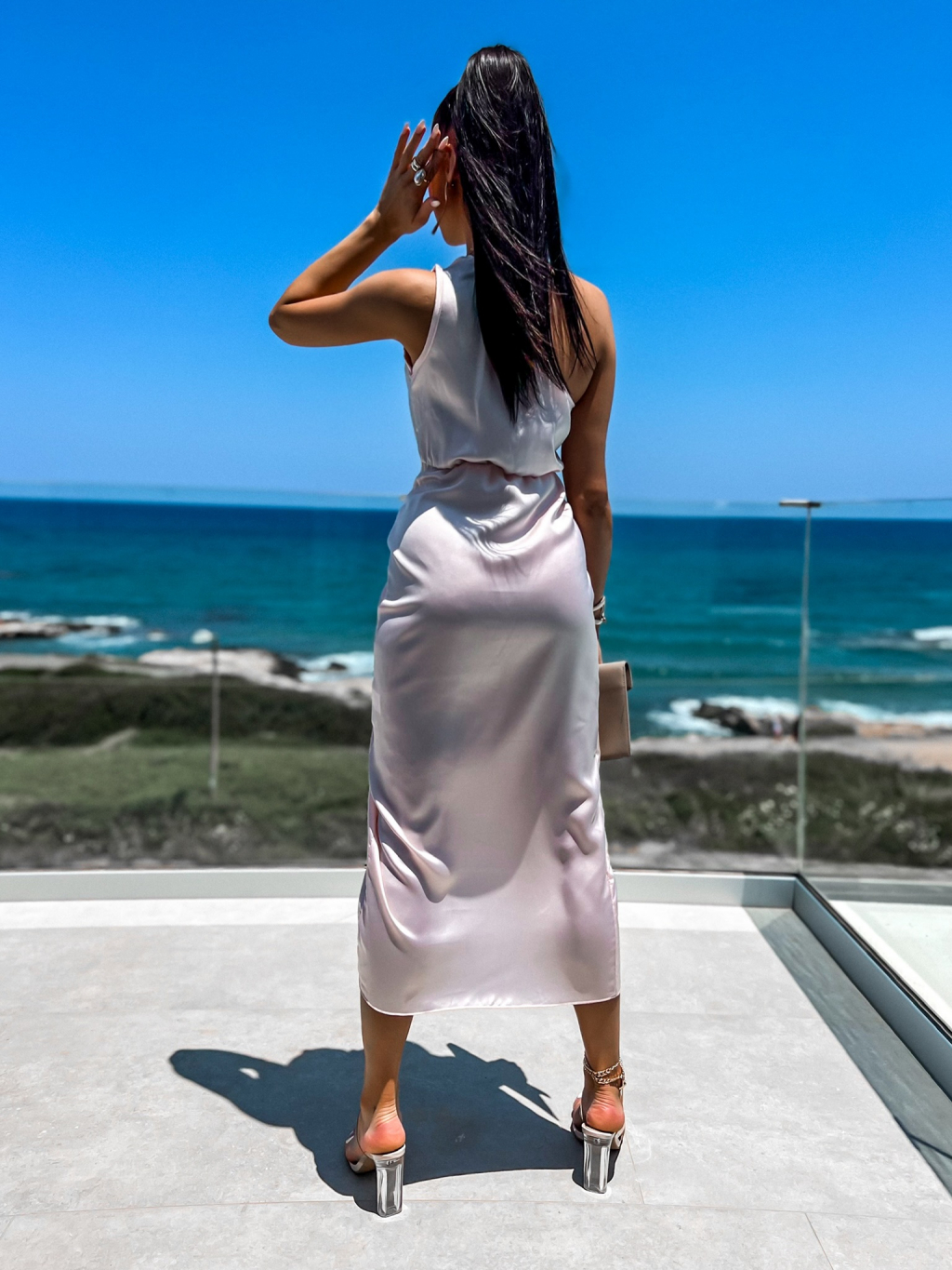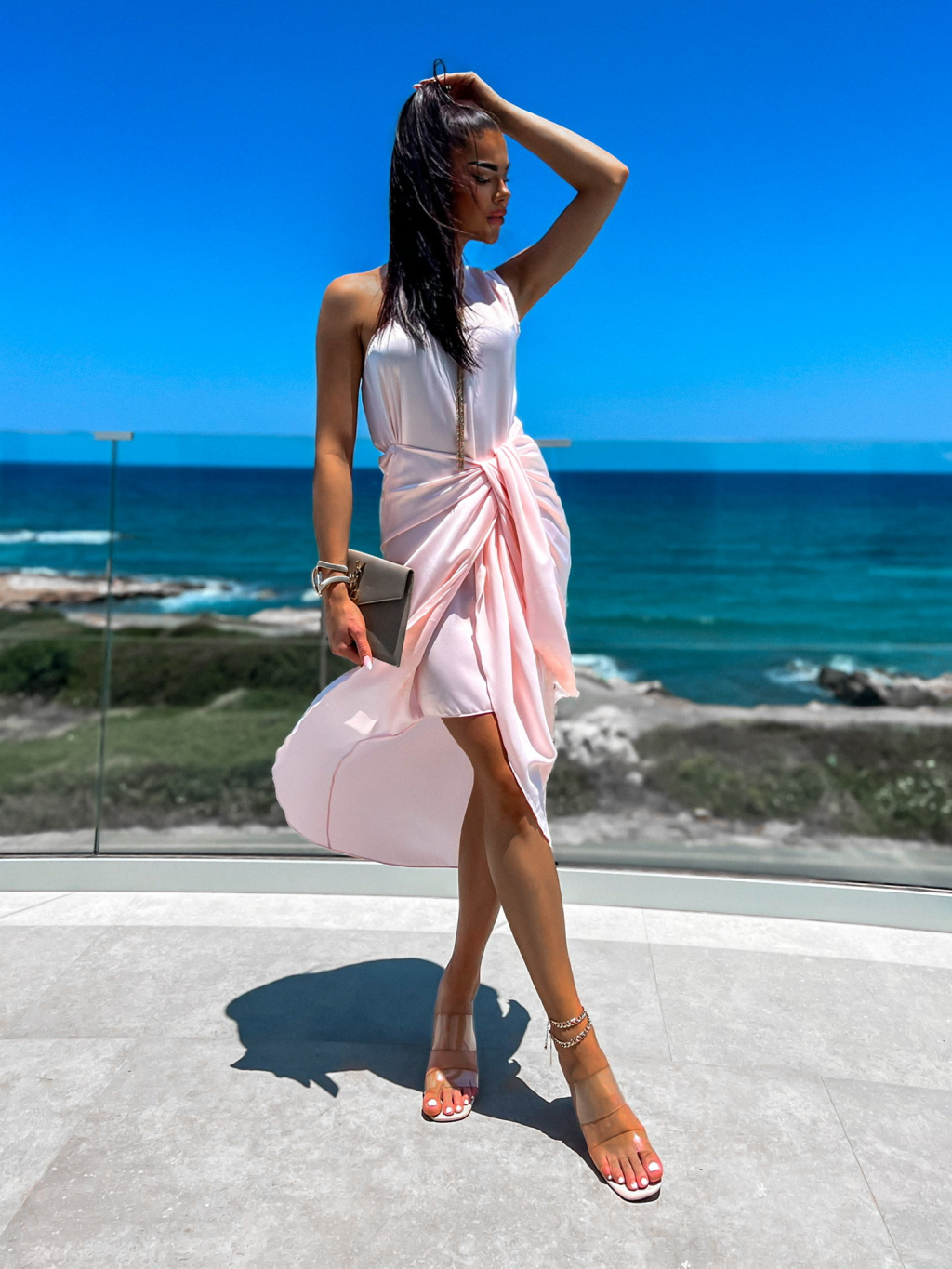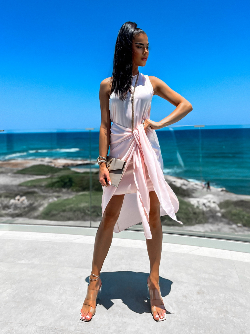 Baby růžové lesklé elegantní šaty LIBIOSI na jedno rameno