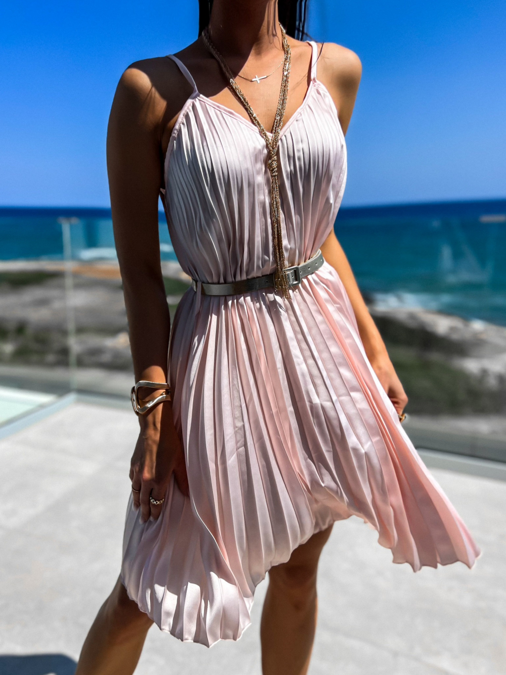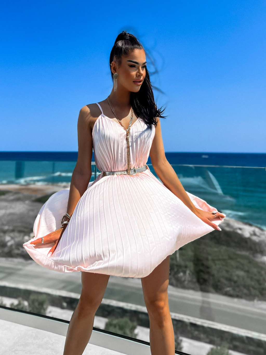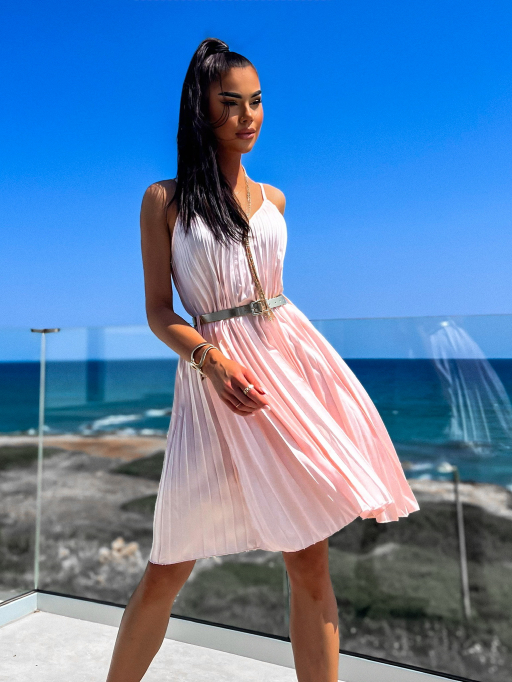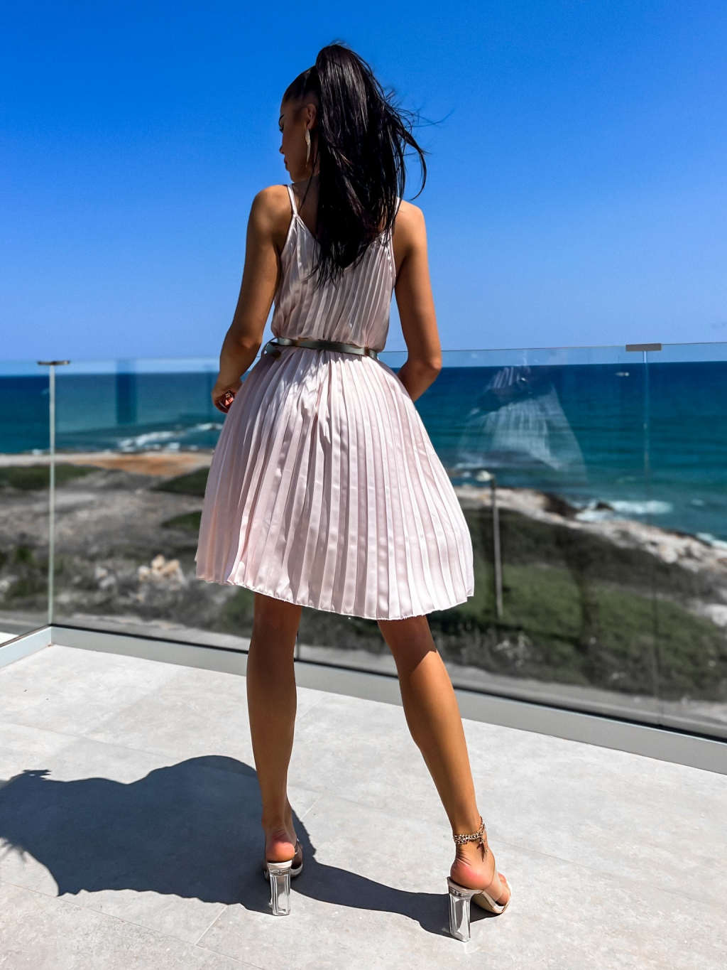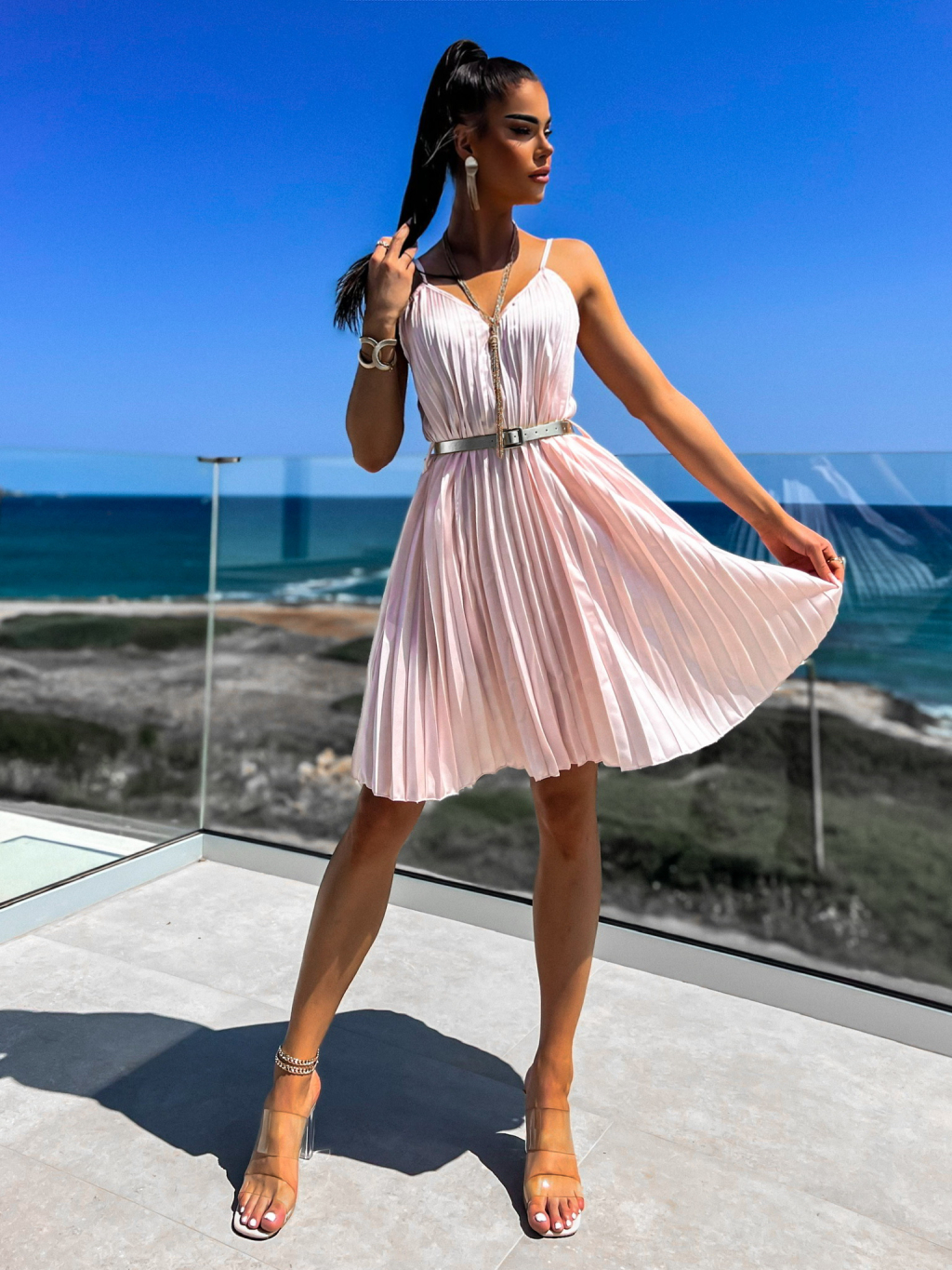 Baby růžové lesklé plisované šaty CLAURA se zlatým páskem