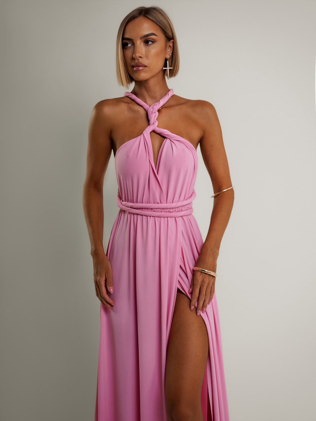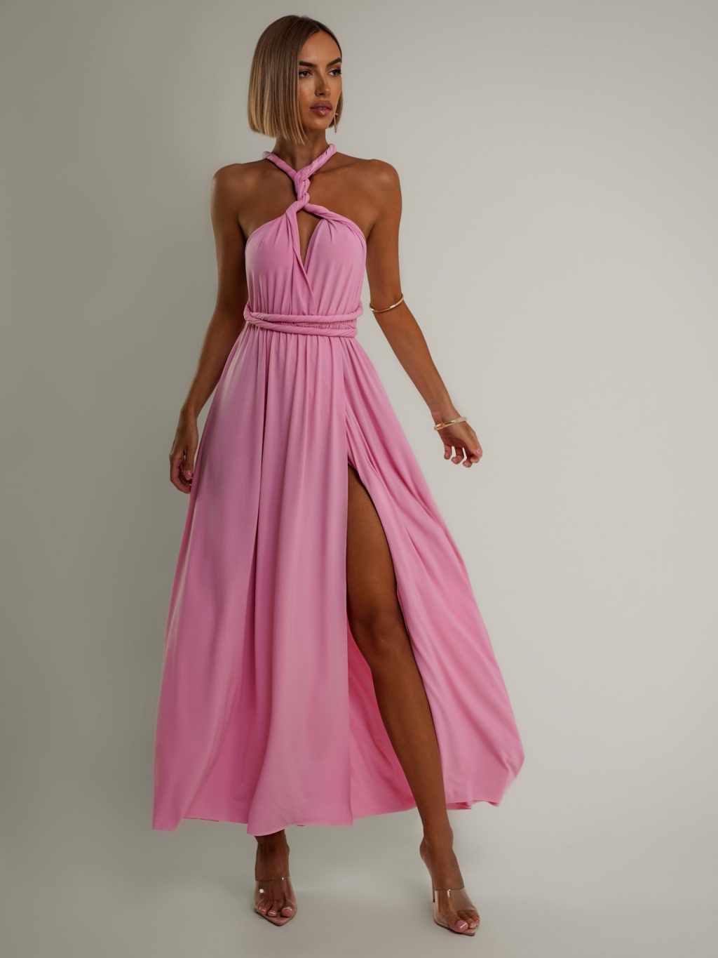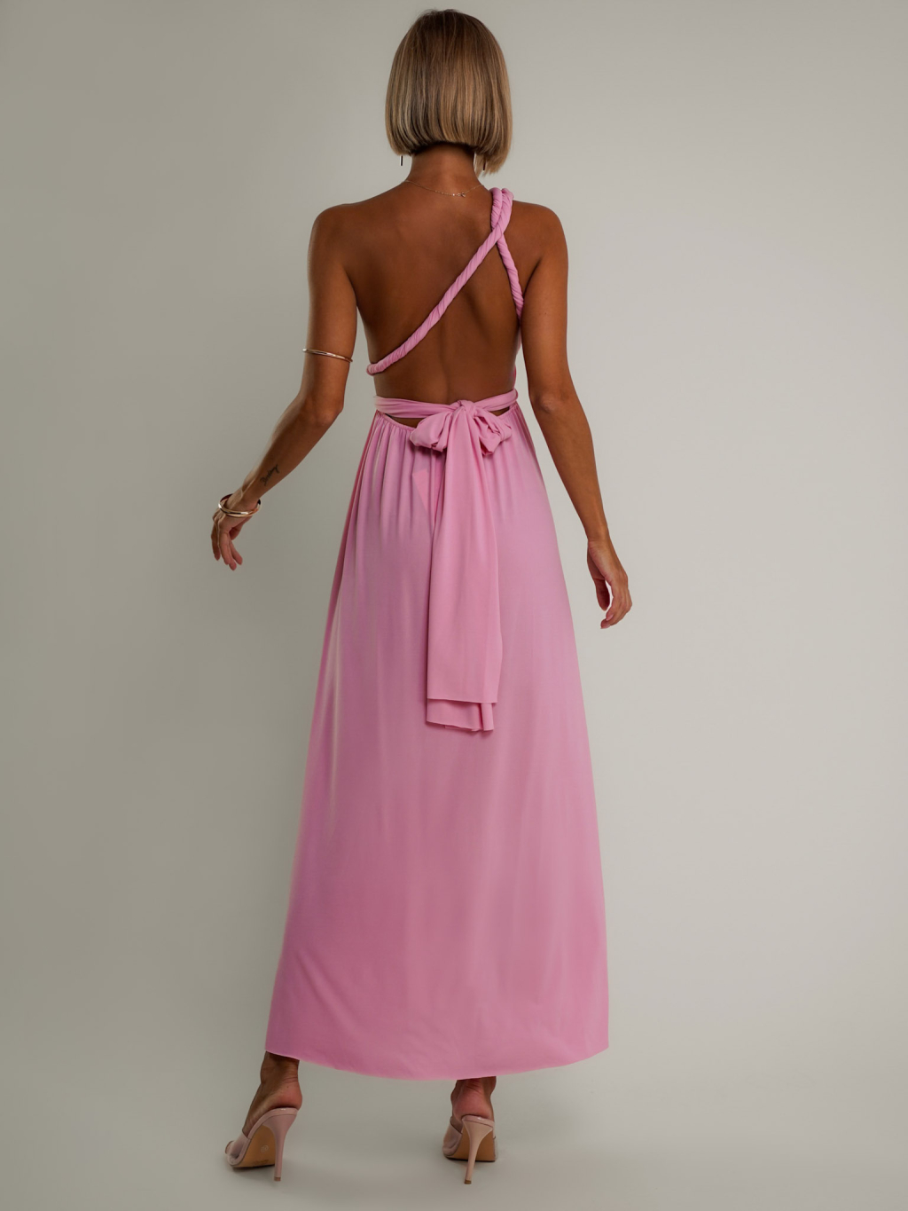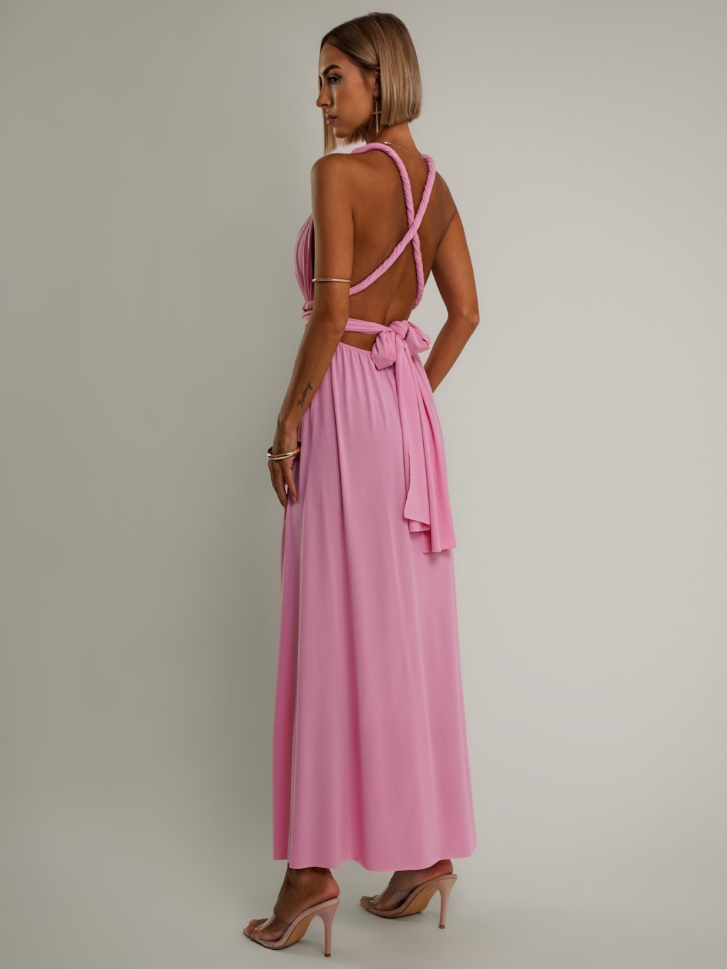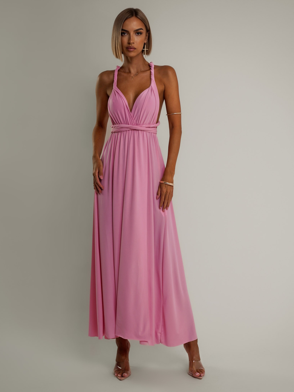 Baby růžové variabilní dlouhé šaty KATIE s vázáním
