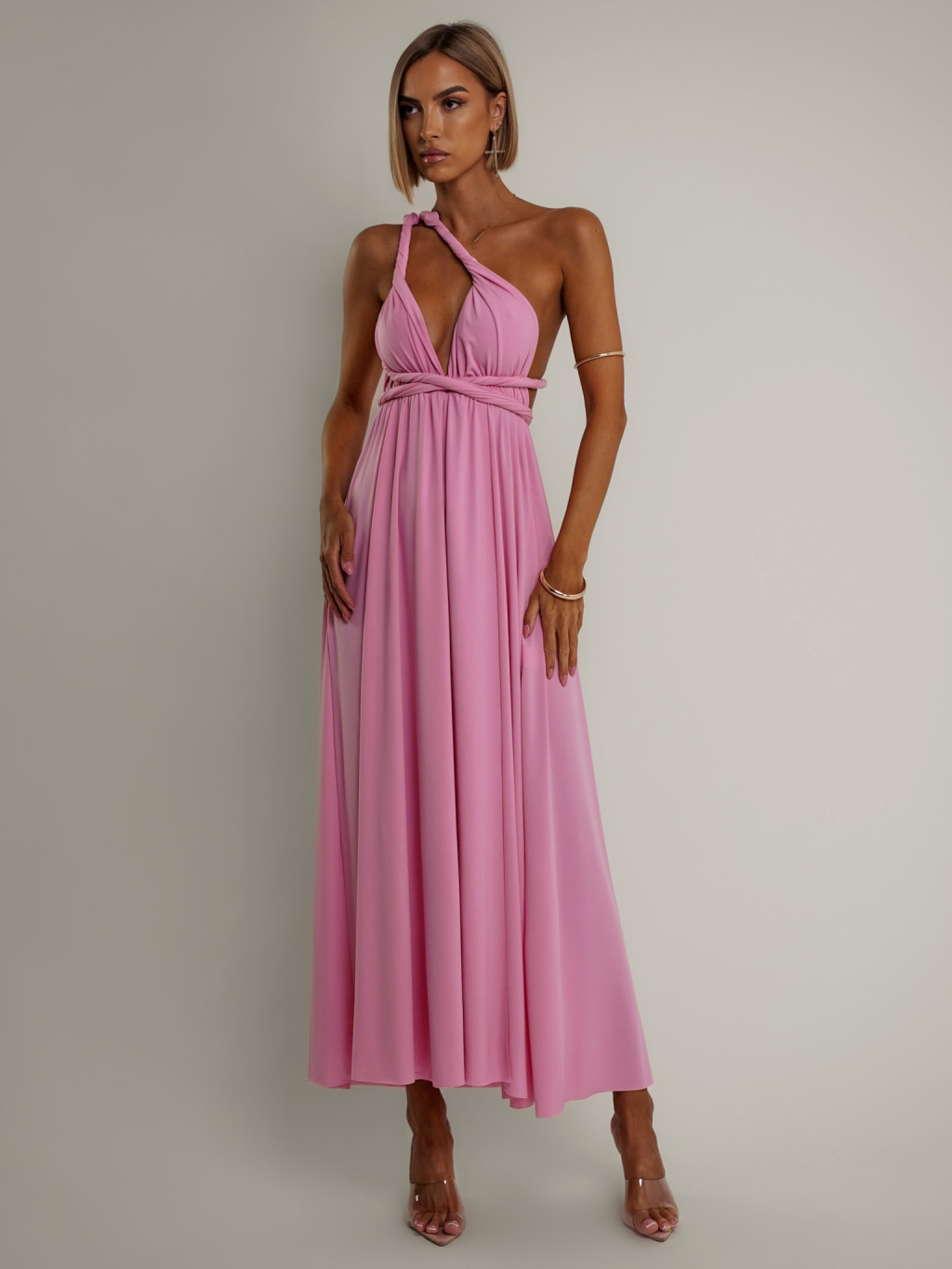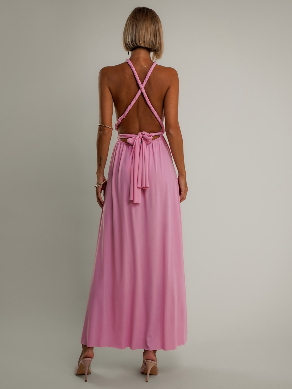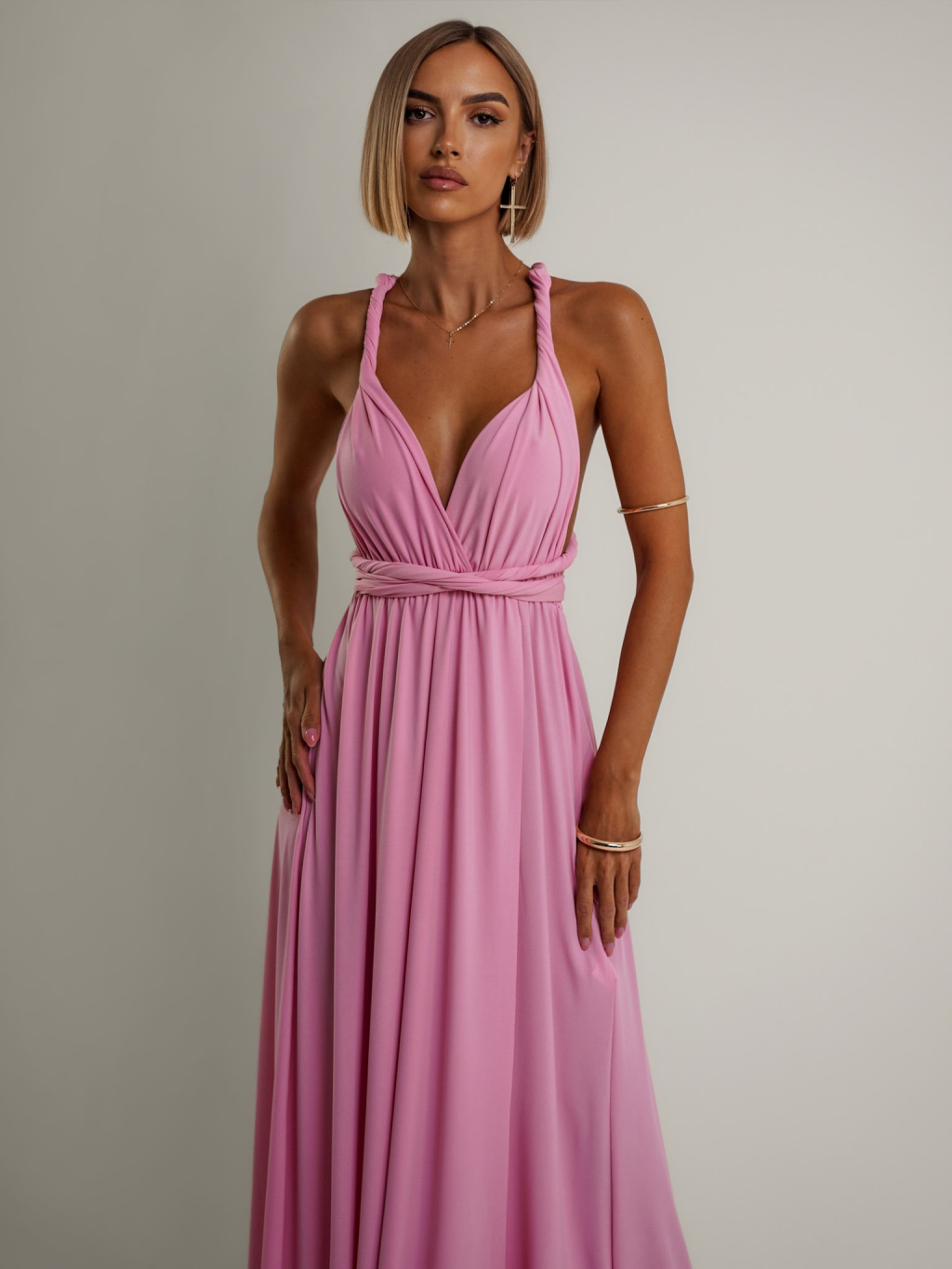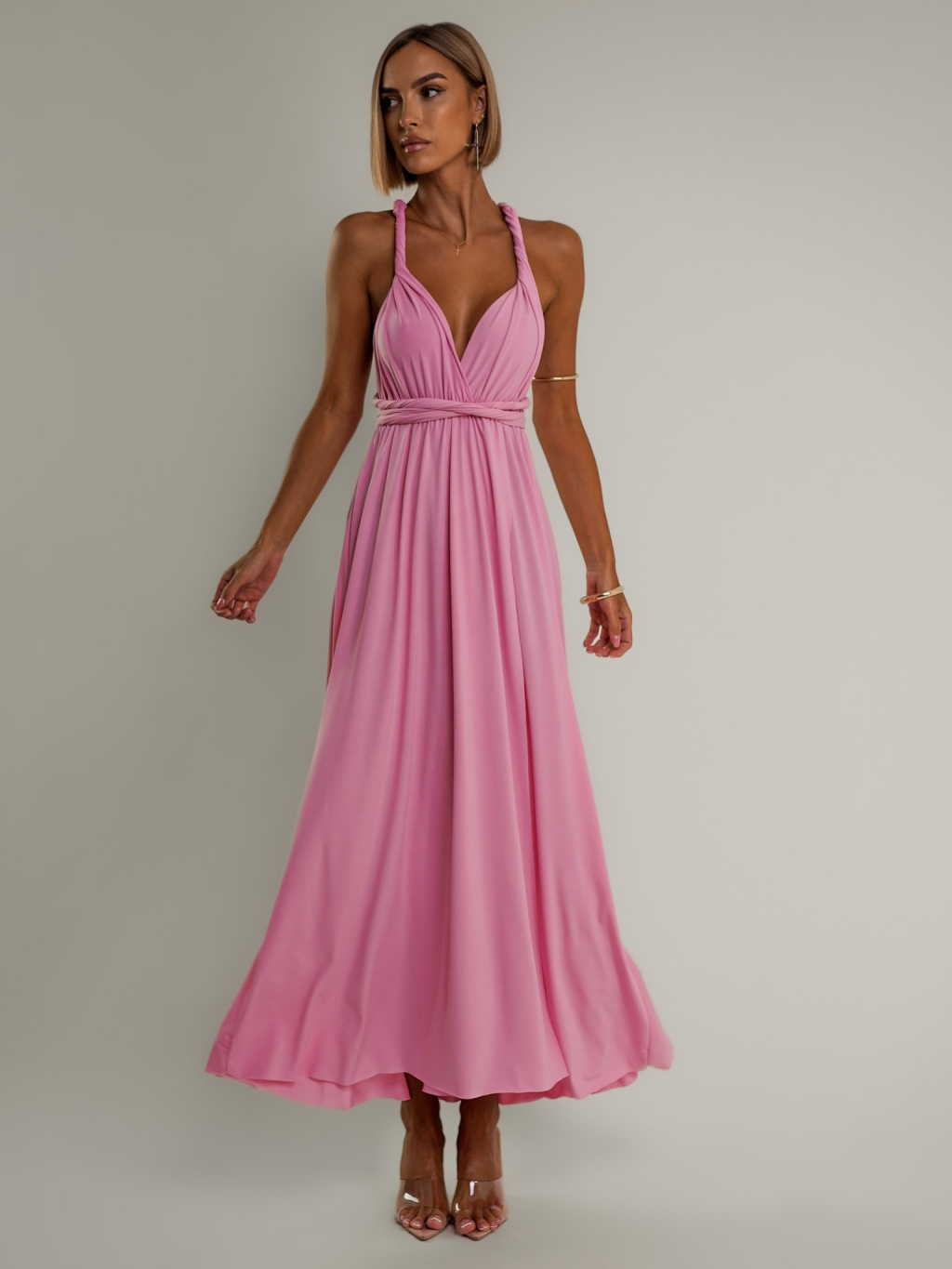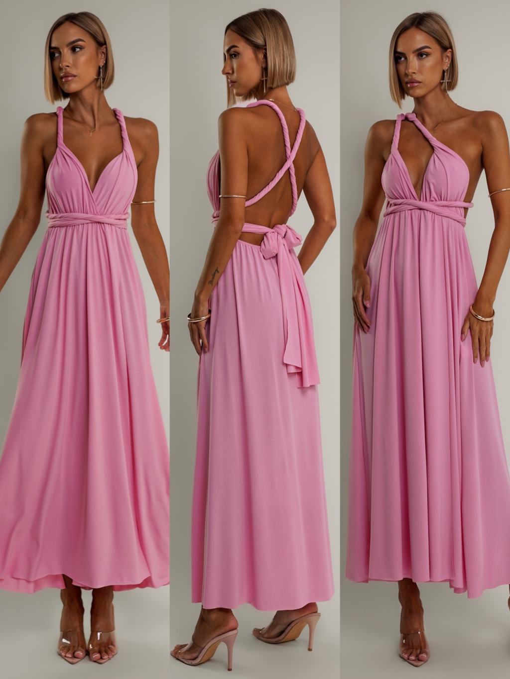 Baby růžové variabilní dlouhé šaty KATIE s vázáním