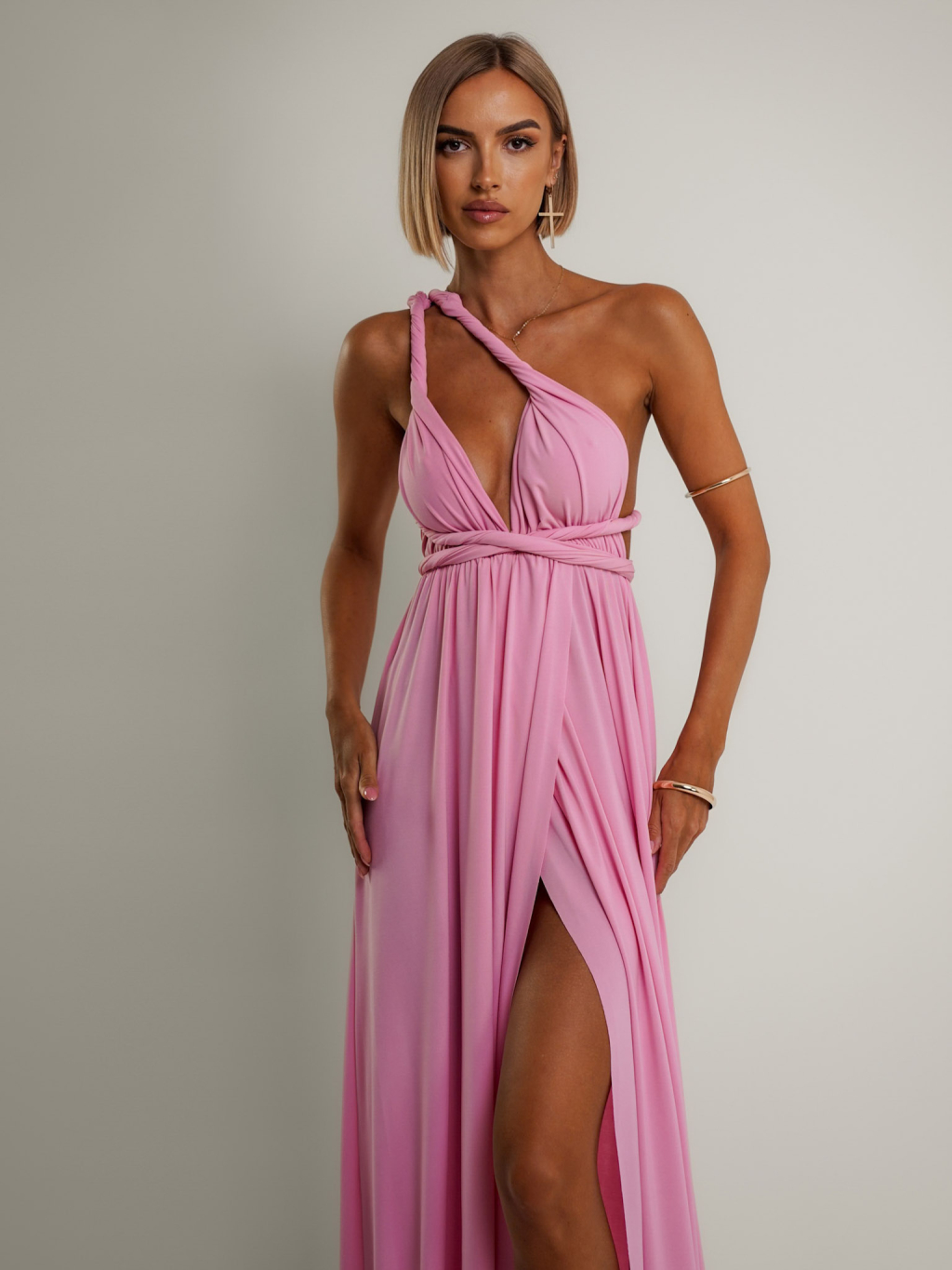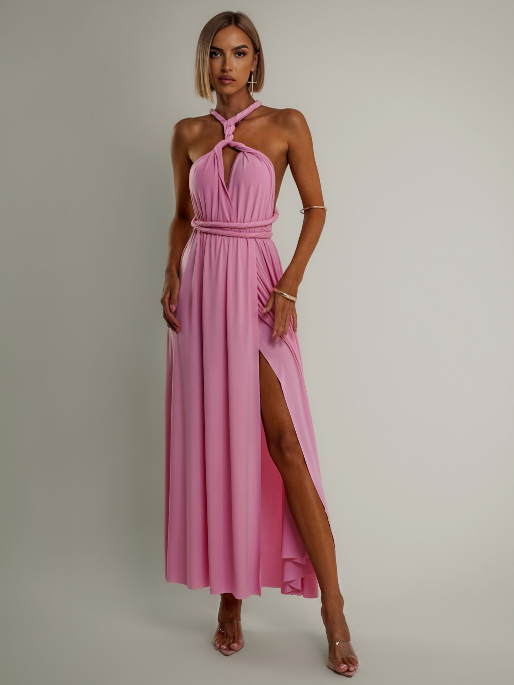Šaty Katie jsou dokonalou volbou na plesy i pro družičky. S elegantním designem, rozparkem a možností variabilního vázání nabízejí nejen perfektní padnutí, ale také jedinečný a půvabný vzhled pro každou příležitost.