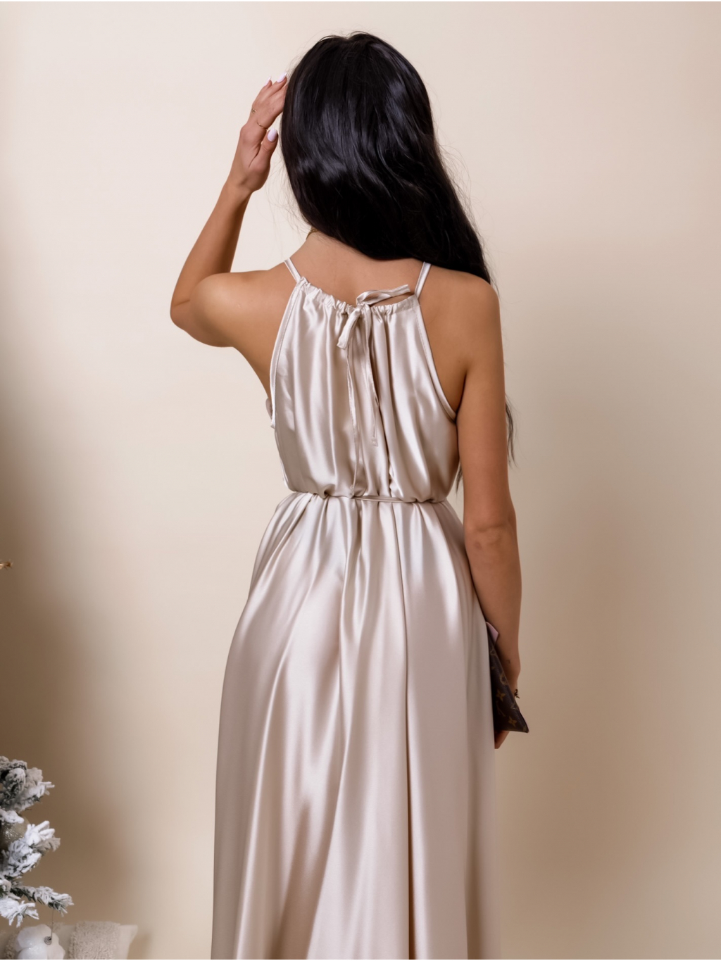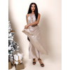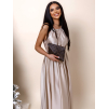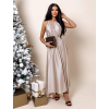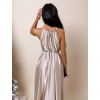 Béžové dlouhé lesklé elegantní šaty MADES se zavazováním