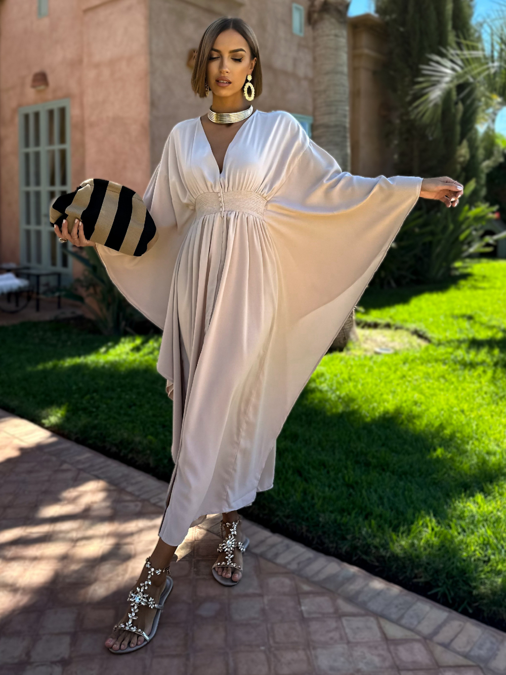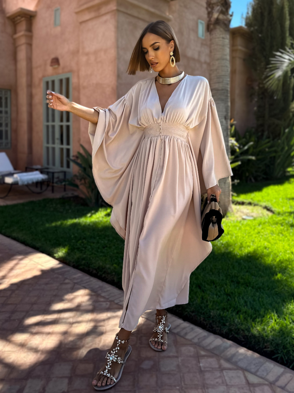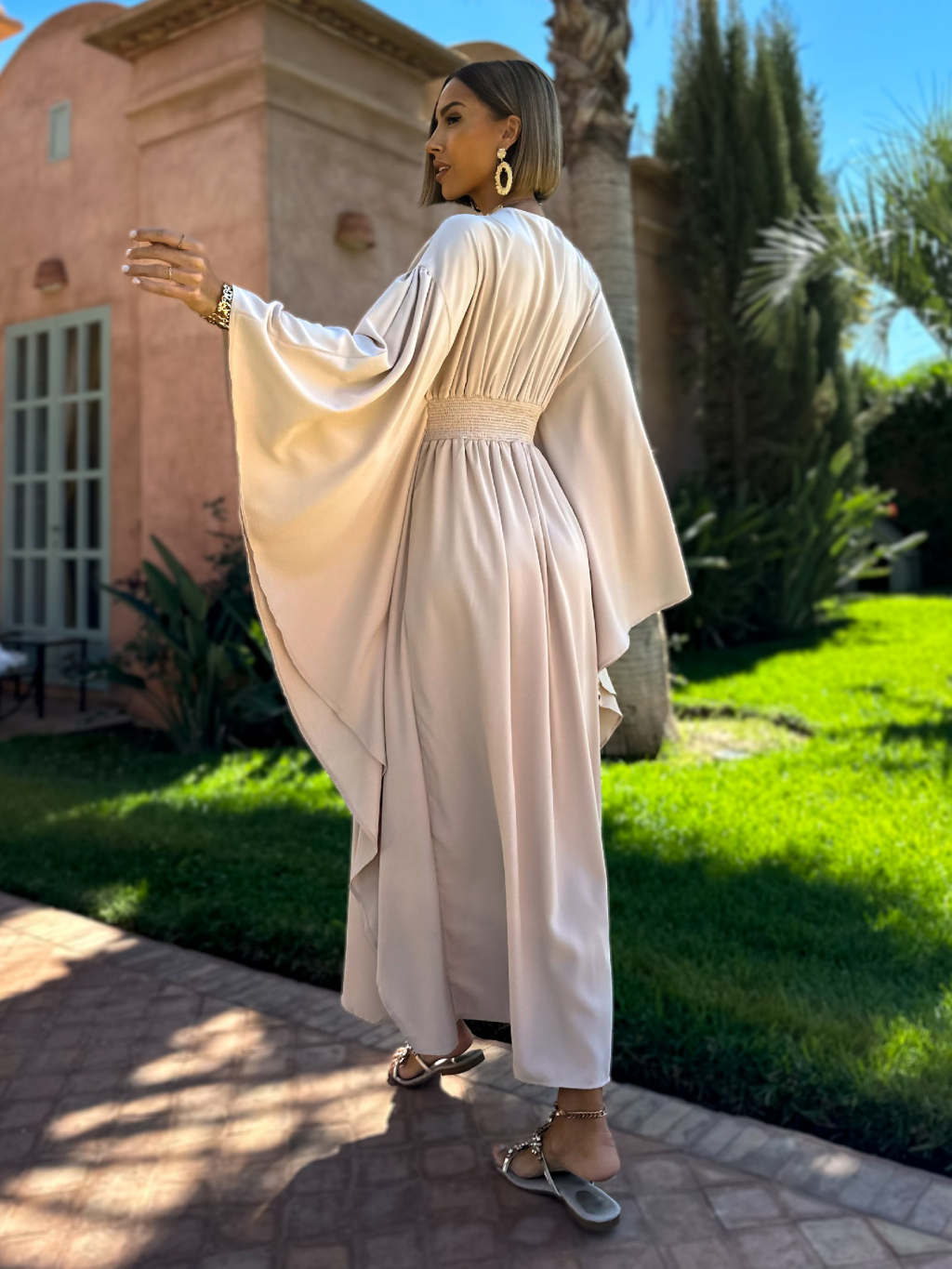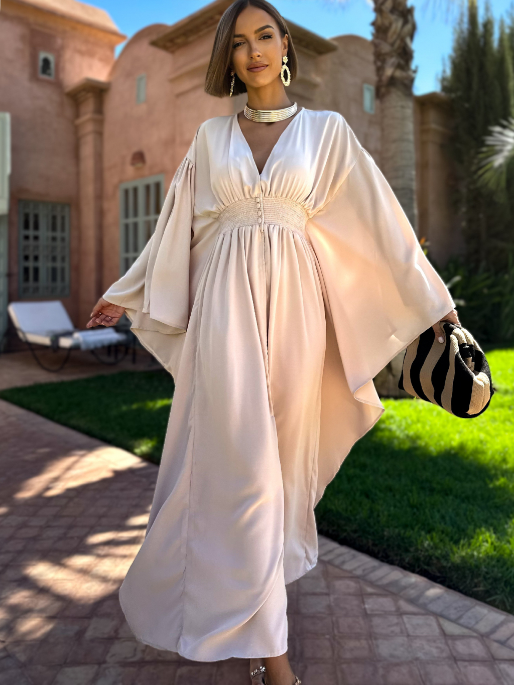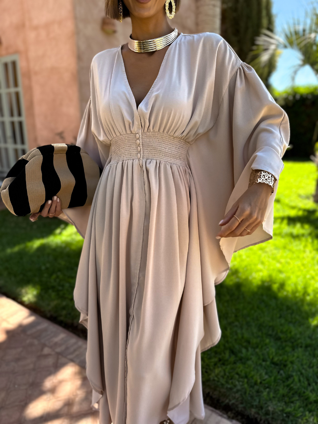 Béžové dlouhé šaty KIERANES s volnými rukávy