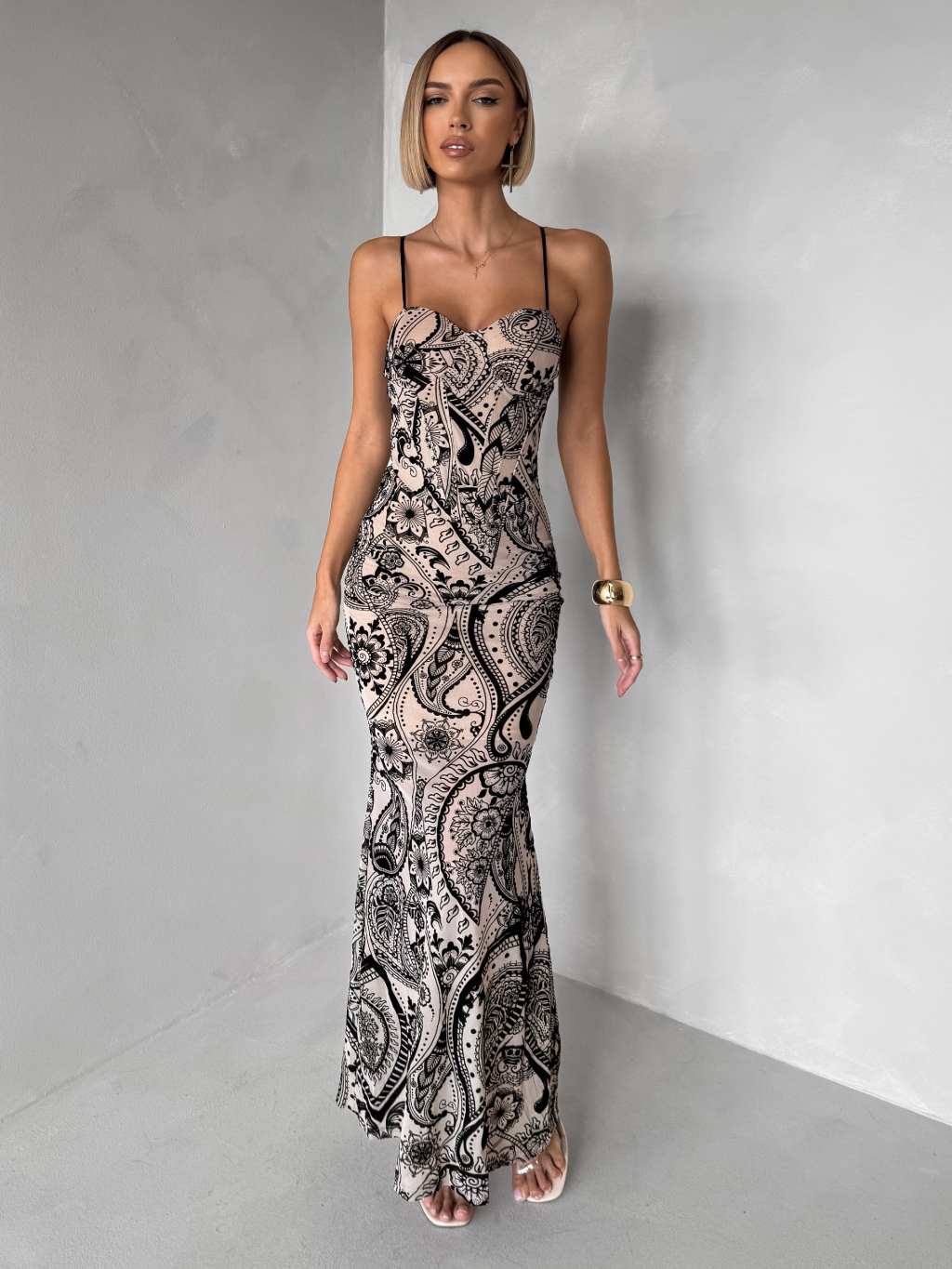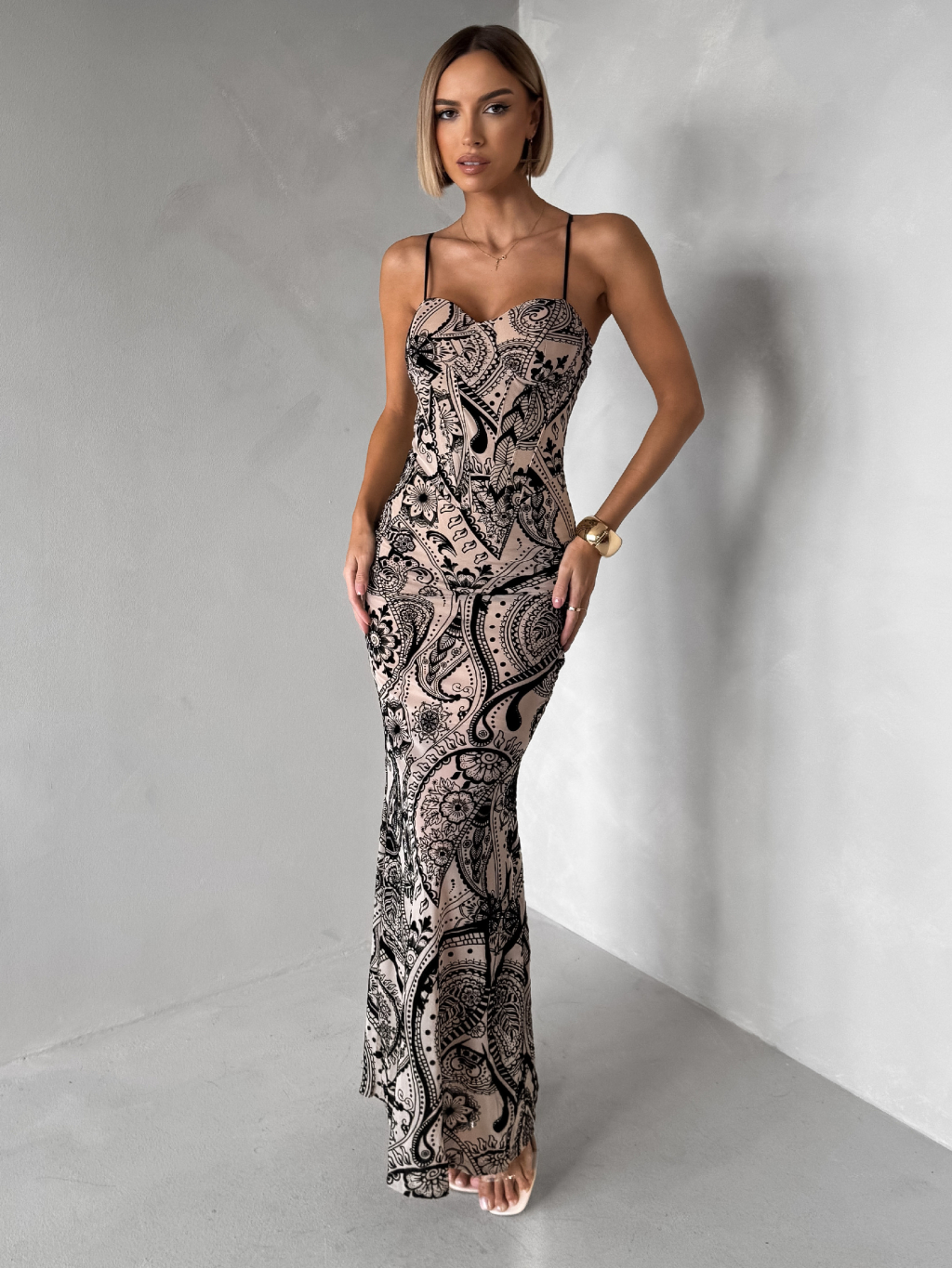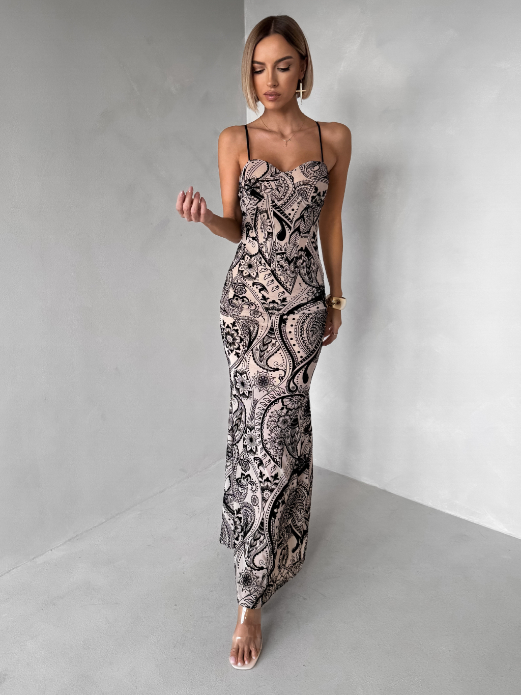 Béžové dlouhé společenské šaty AVENZIA na ramínka