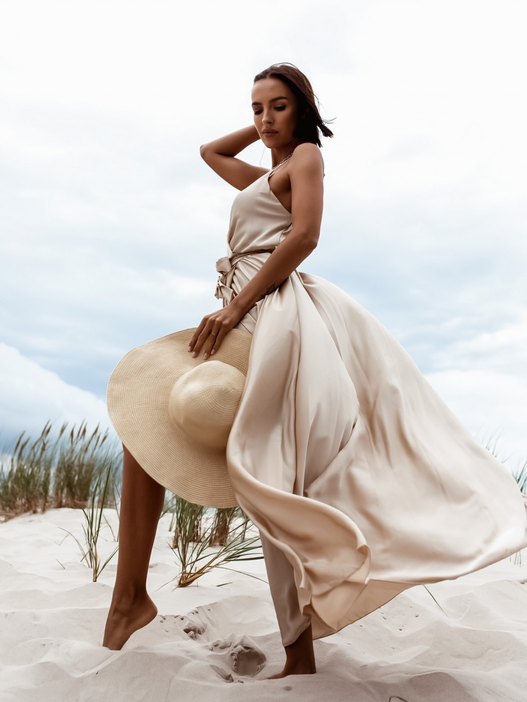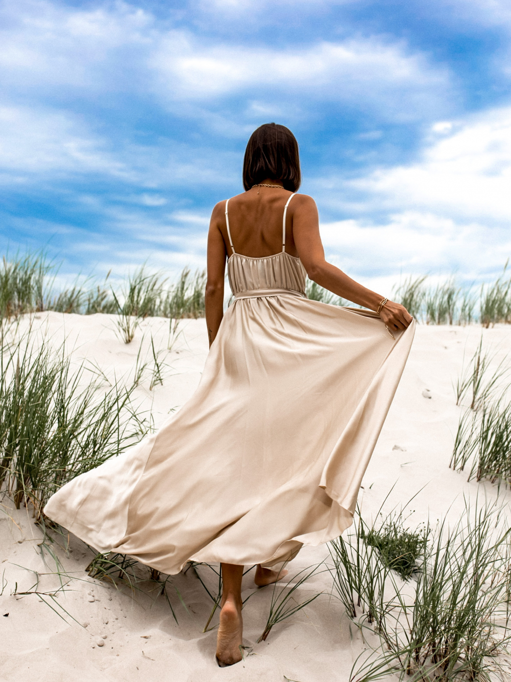 Béžové elegantní dlouhé šaty FAIRYTALE