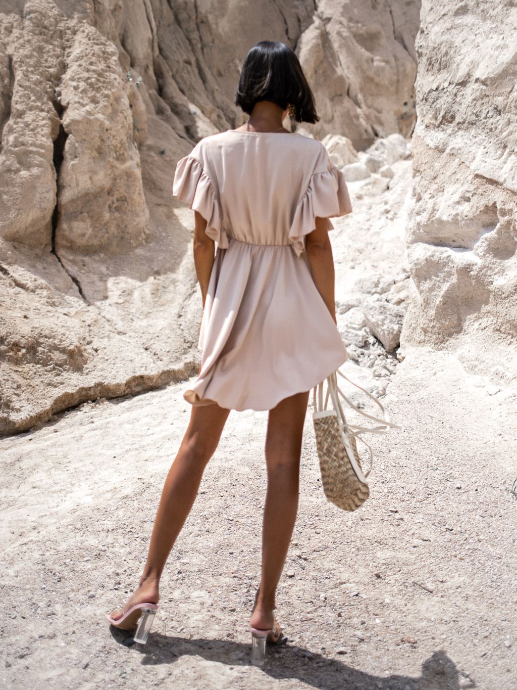 Béžové elegantní šaty ANTIS s volánky