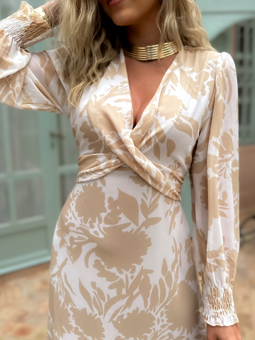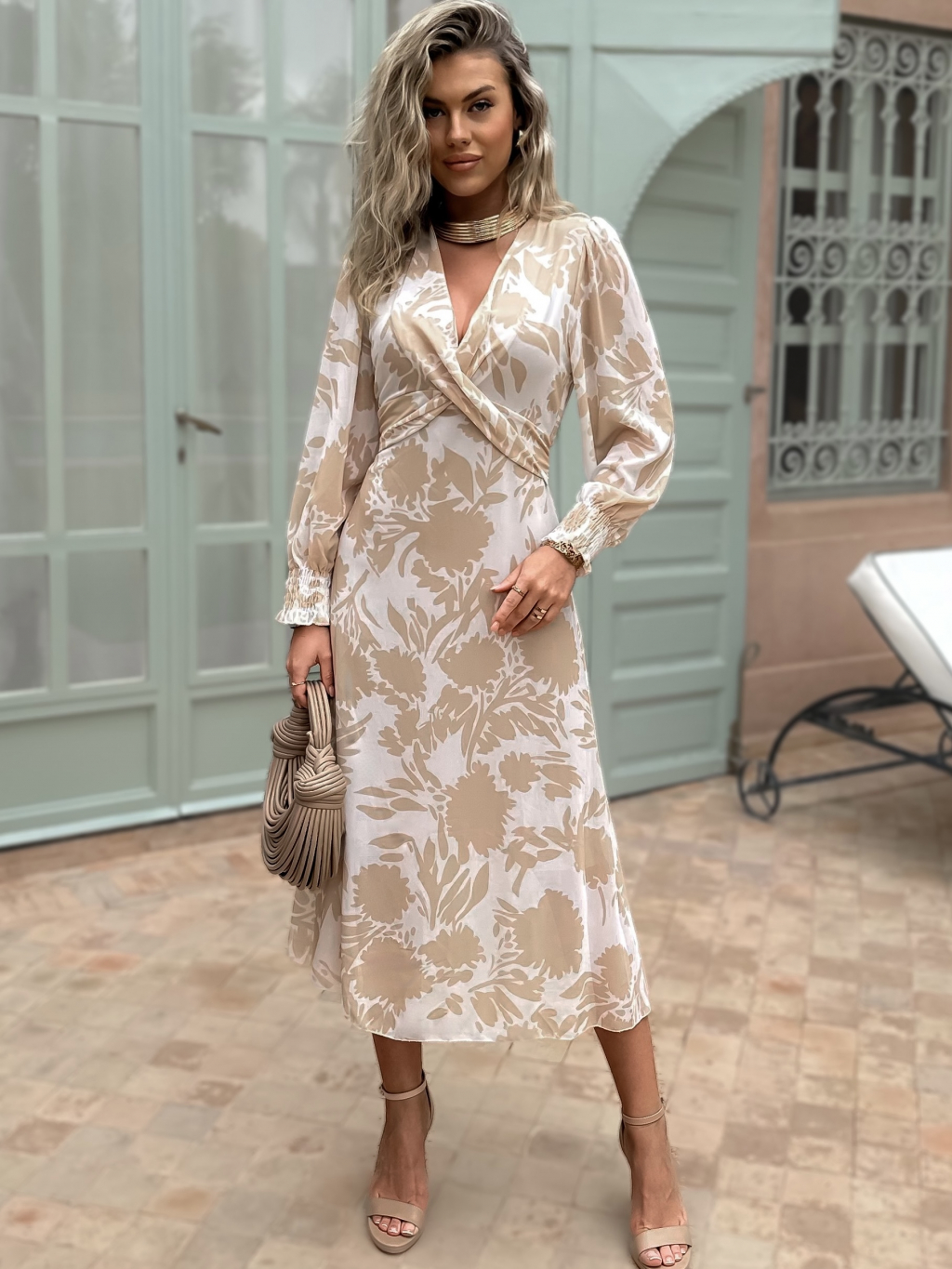 Béžové elegantní šaty CIHAN s dlouhým rukávem