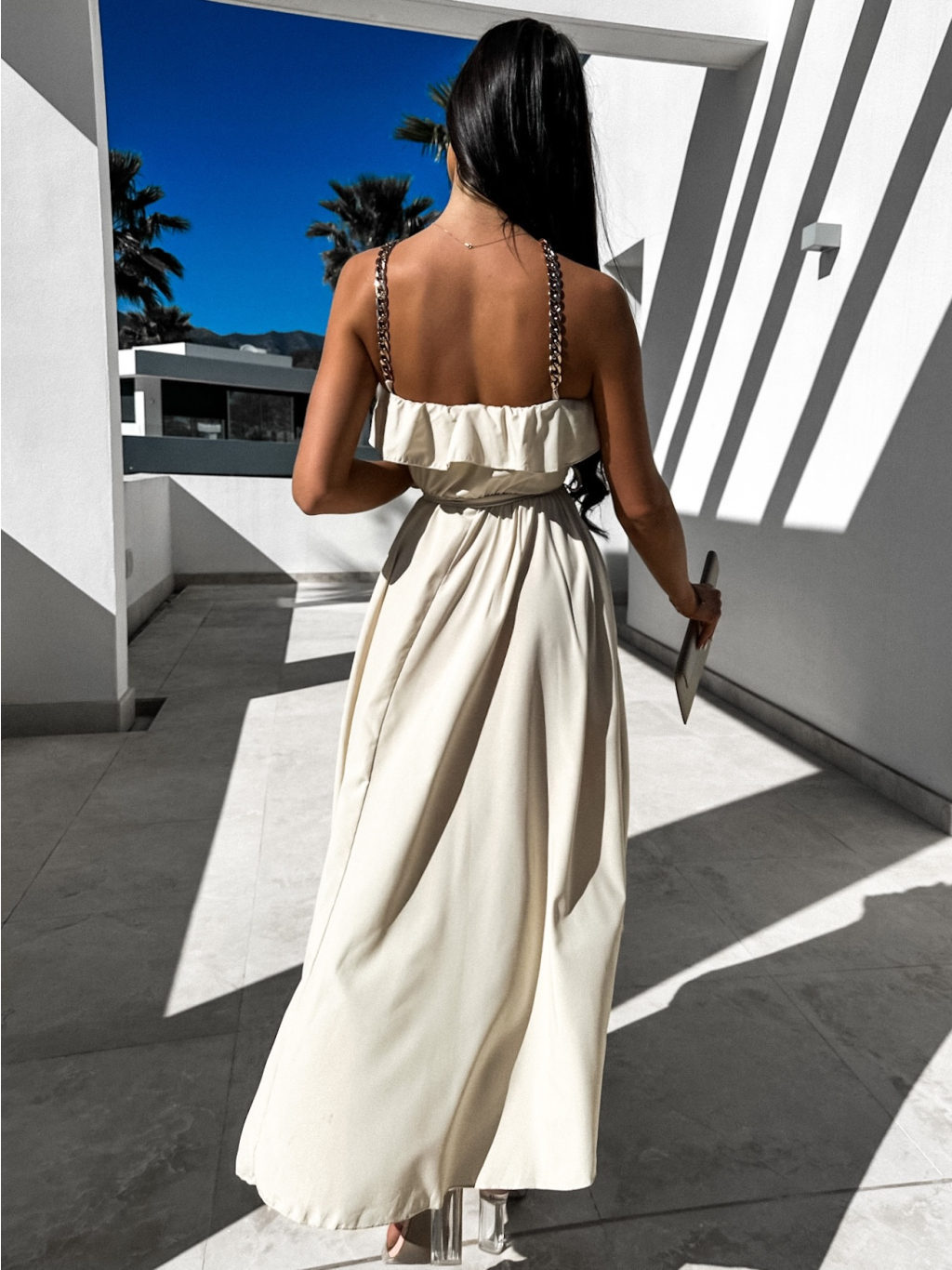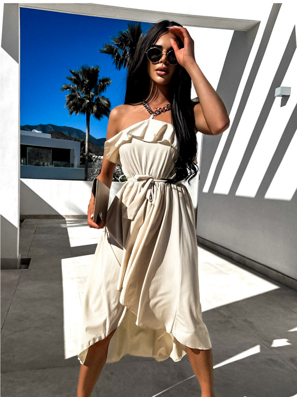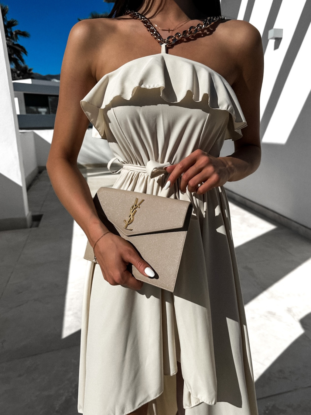 Béžové elegantní šaty LILLENI se zlatým detailem