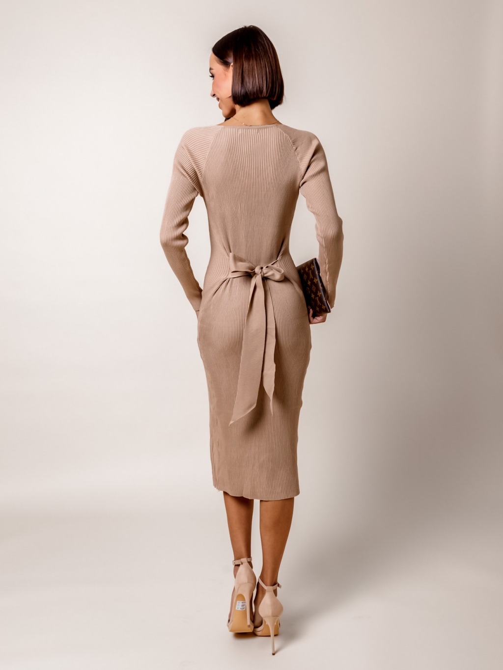 Béžové elegantní svetrové šaty RAEF na zavazování