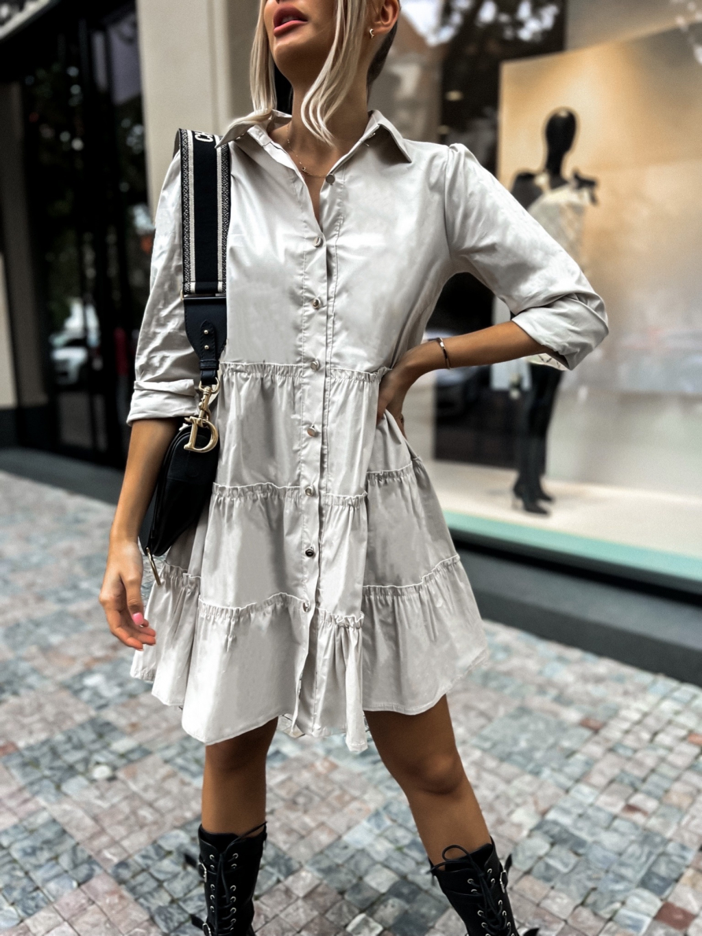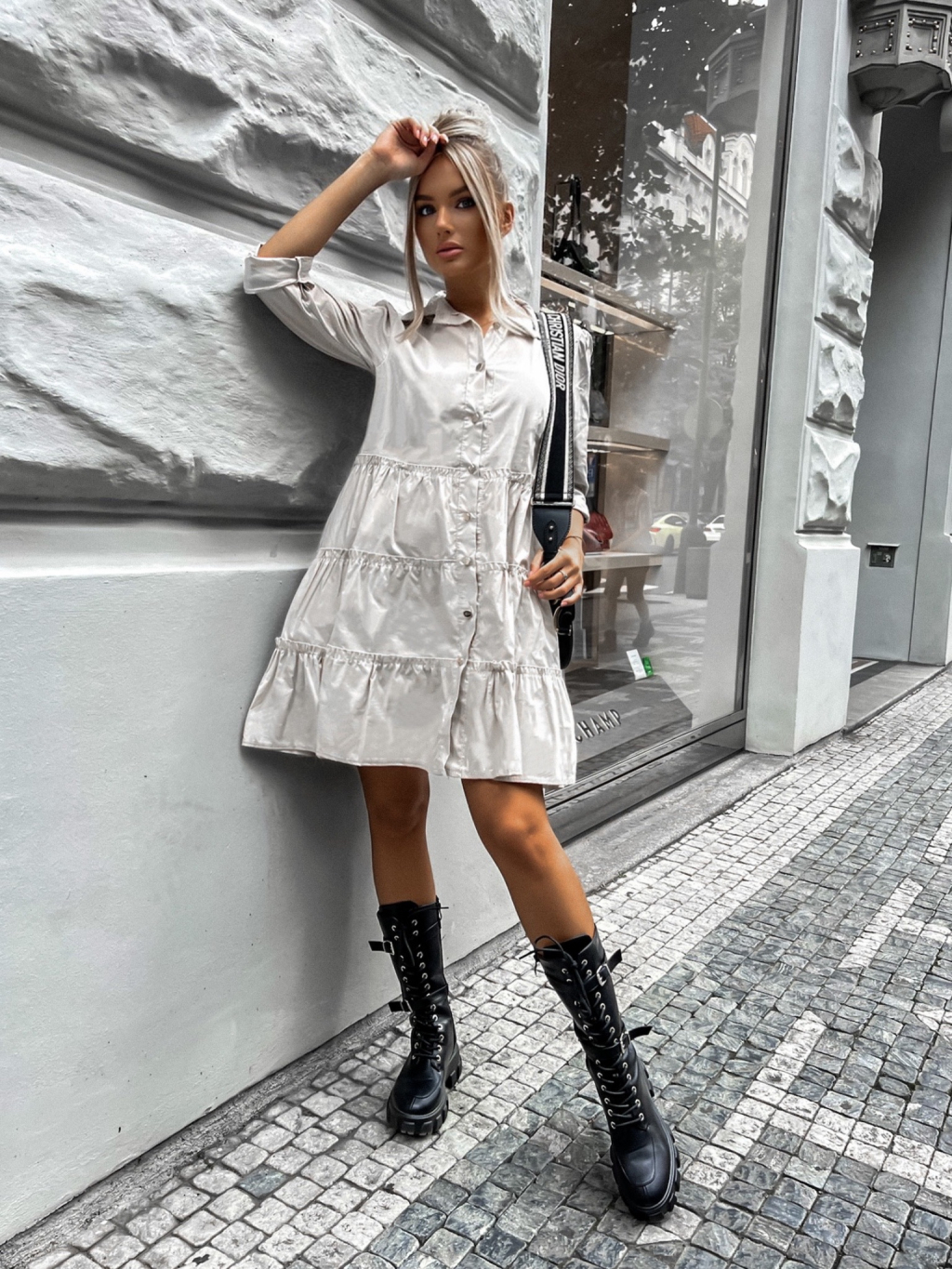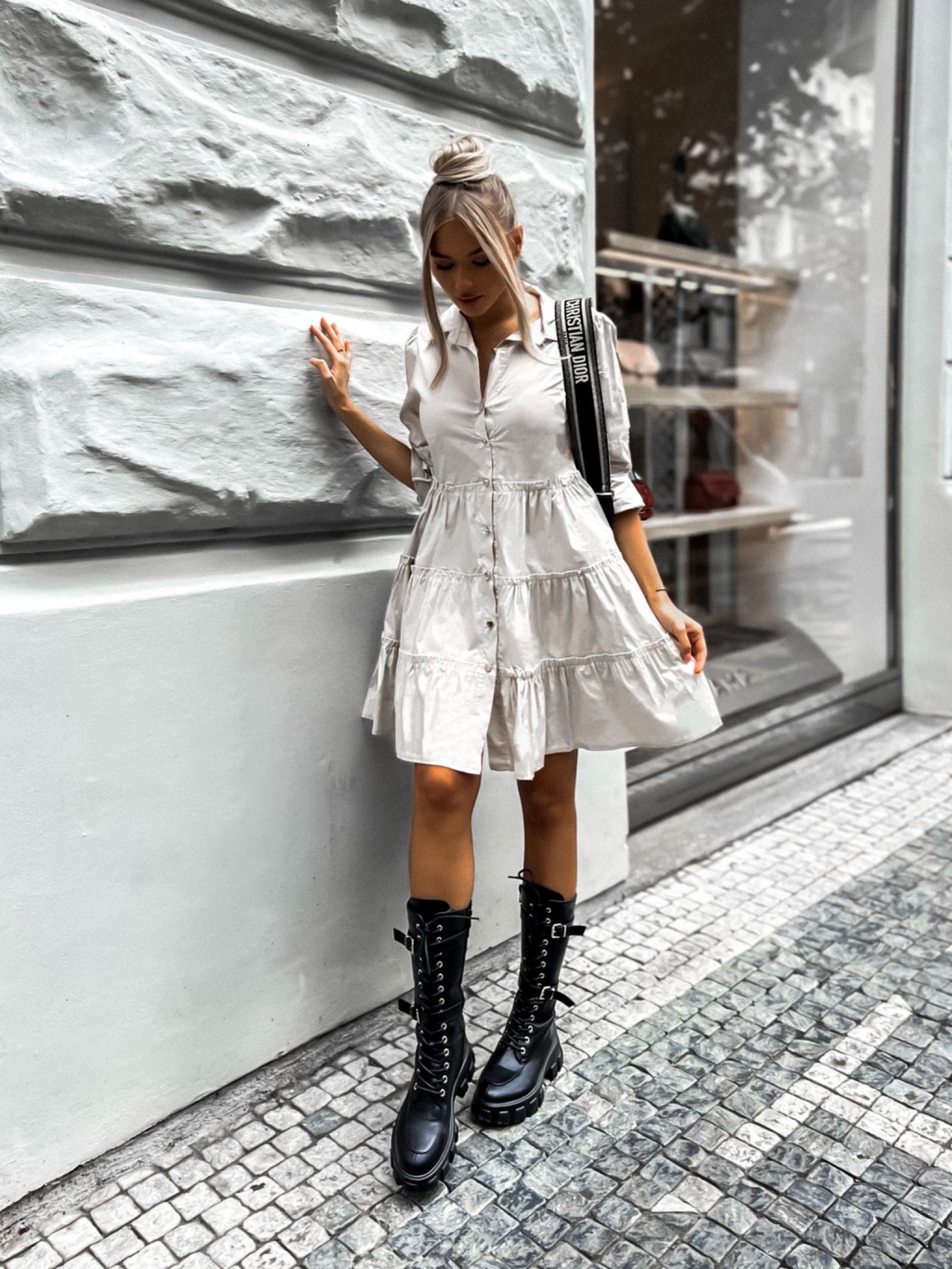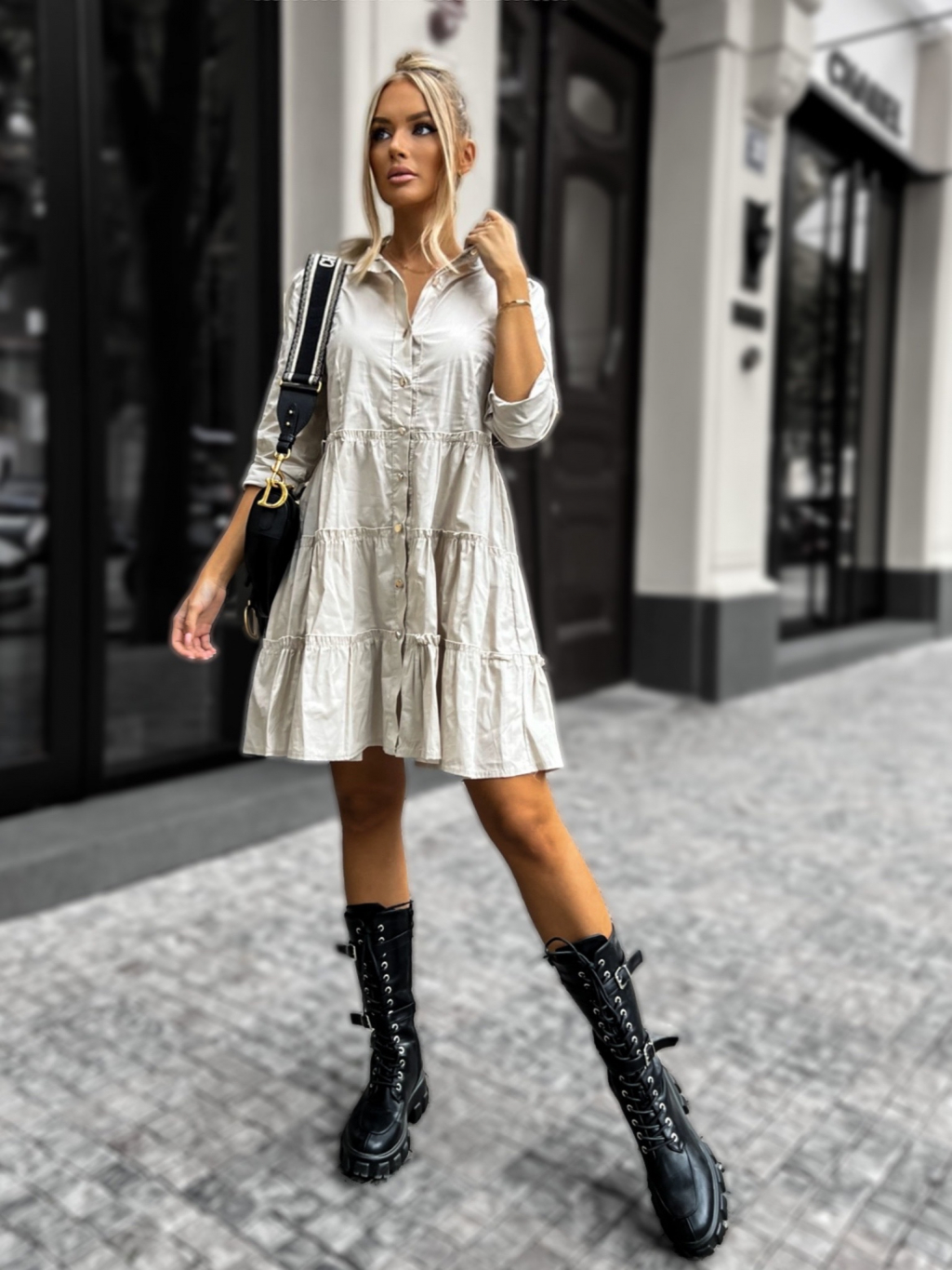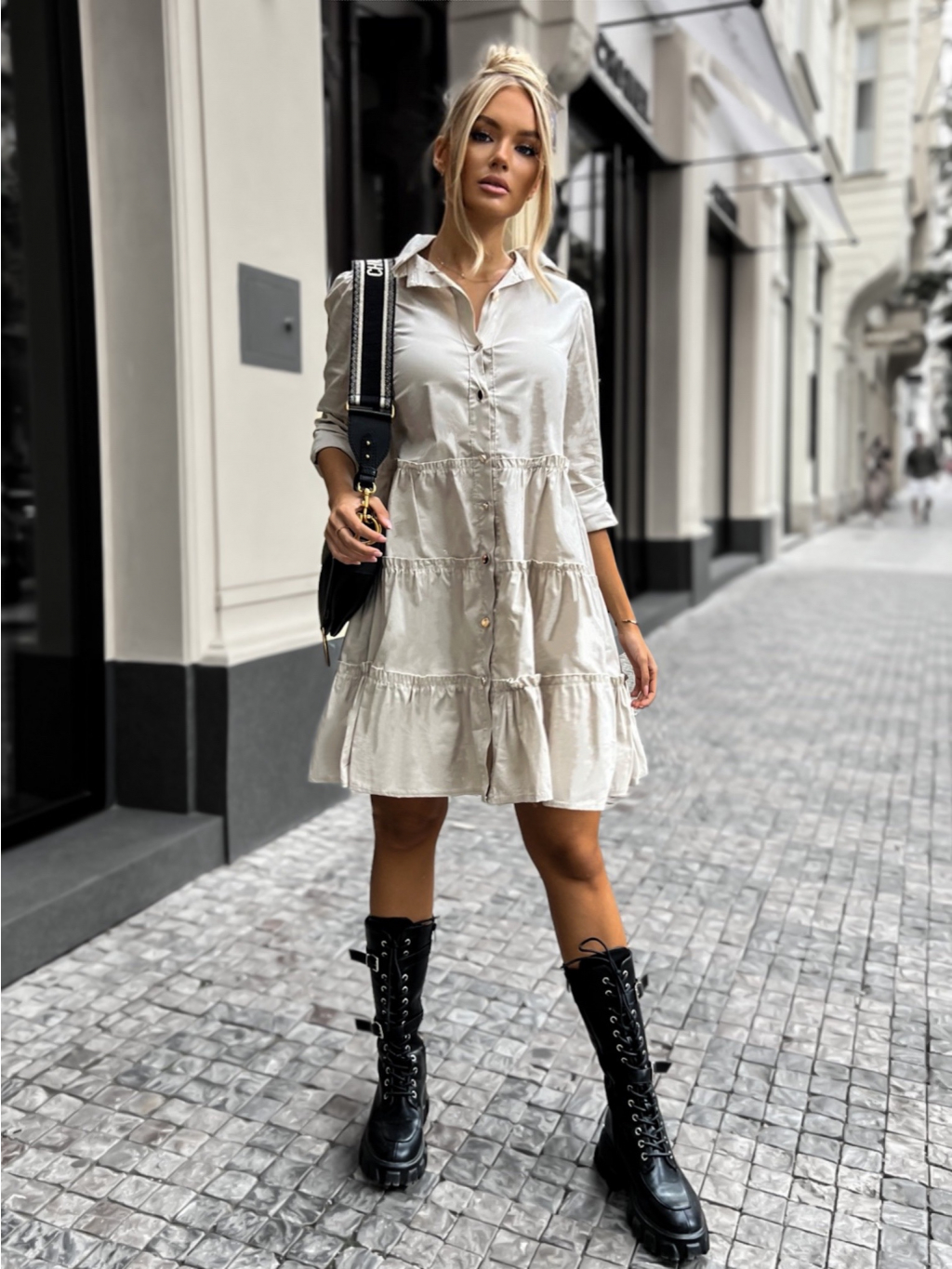 Béžové košilové šaty LILITH se zlatými knoflíky