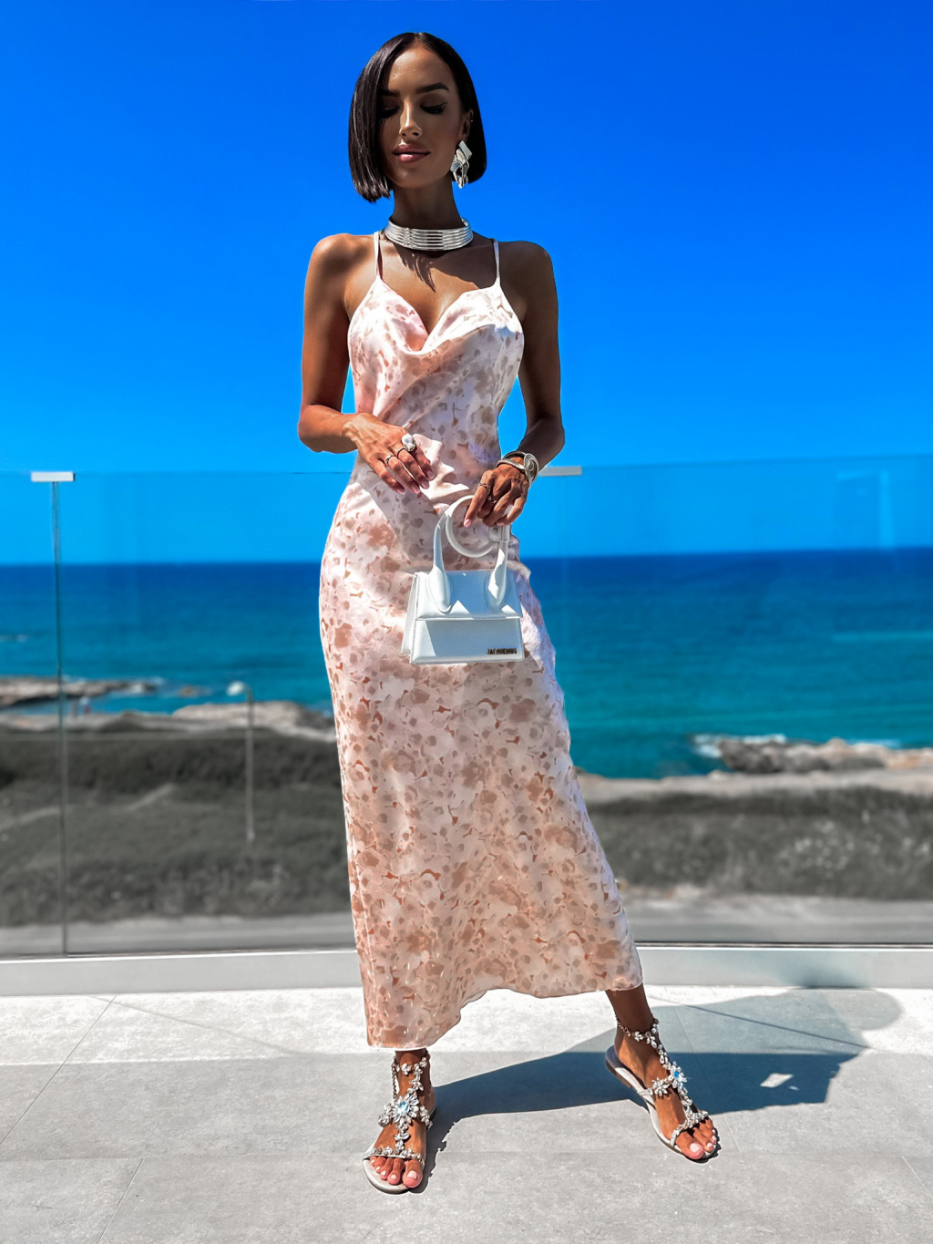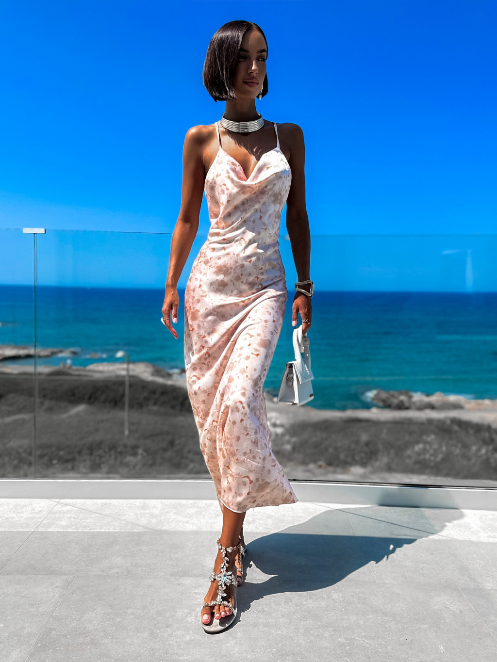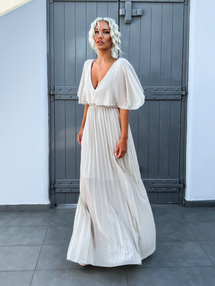 Béžové lesklé elegantní šaty DRAKSEN