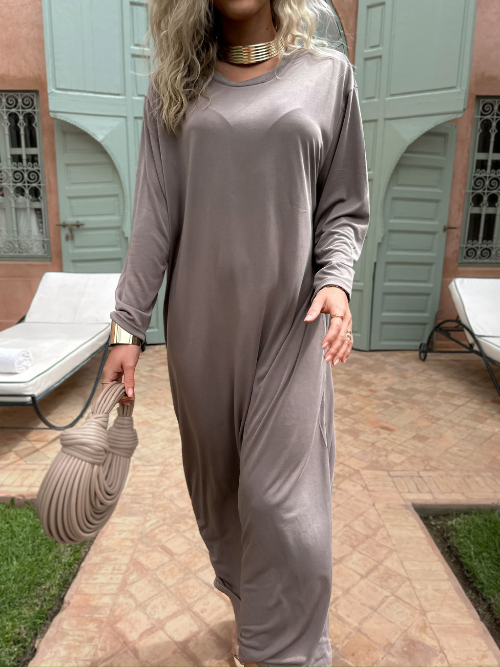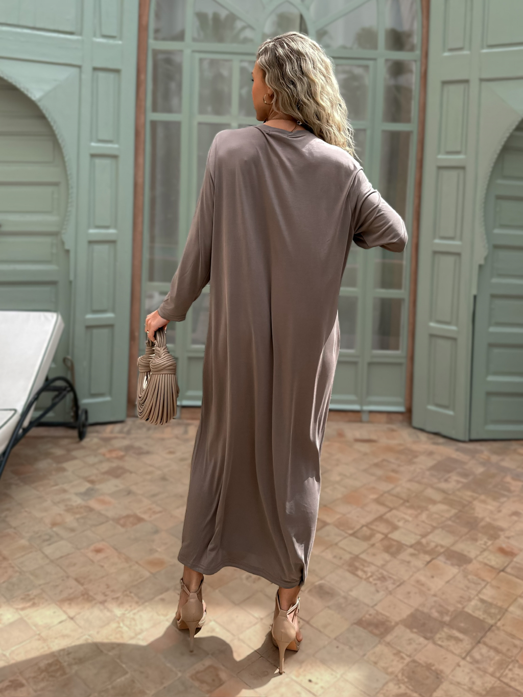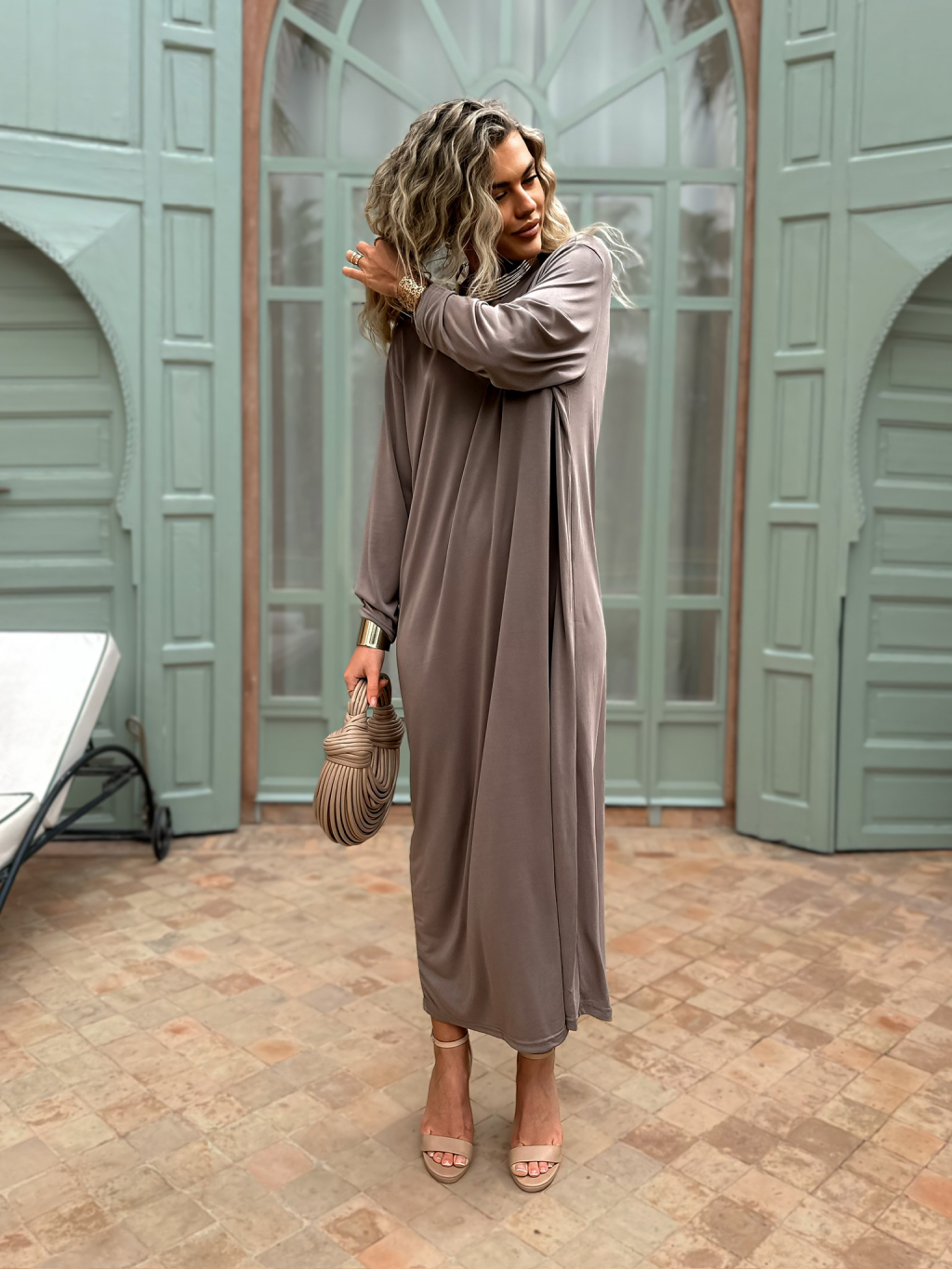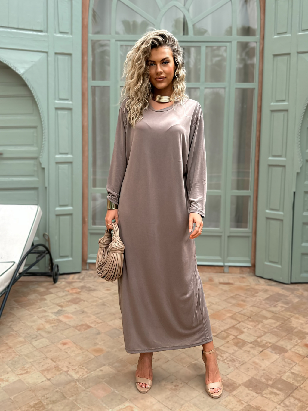 Béžové maxi basic dlouhé šaty STOPHERE