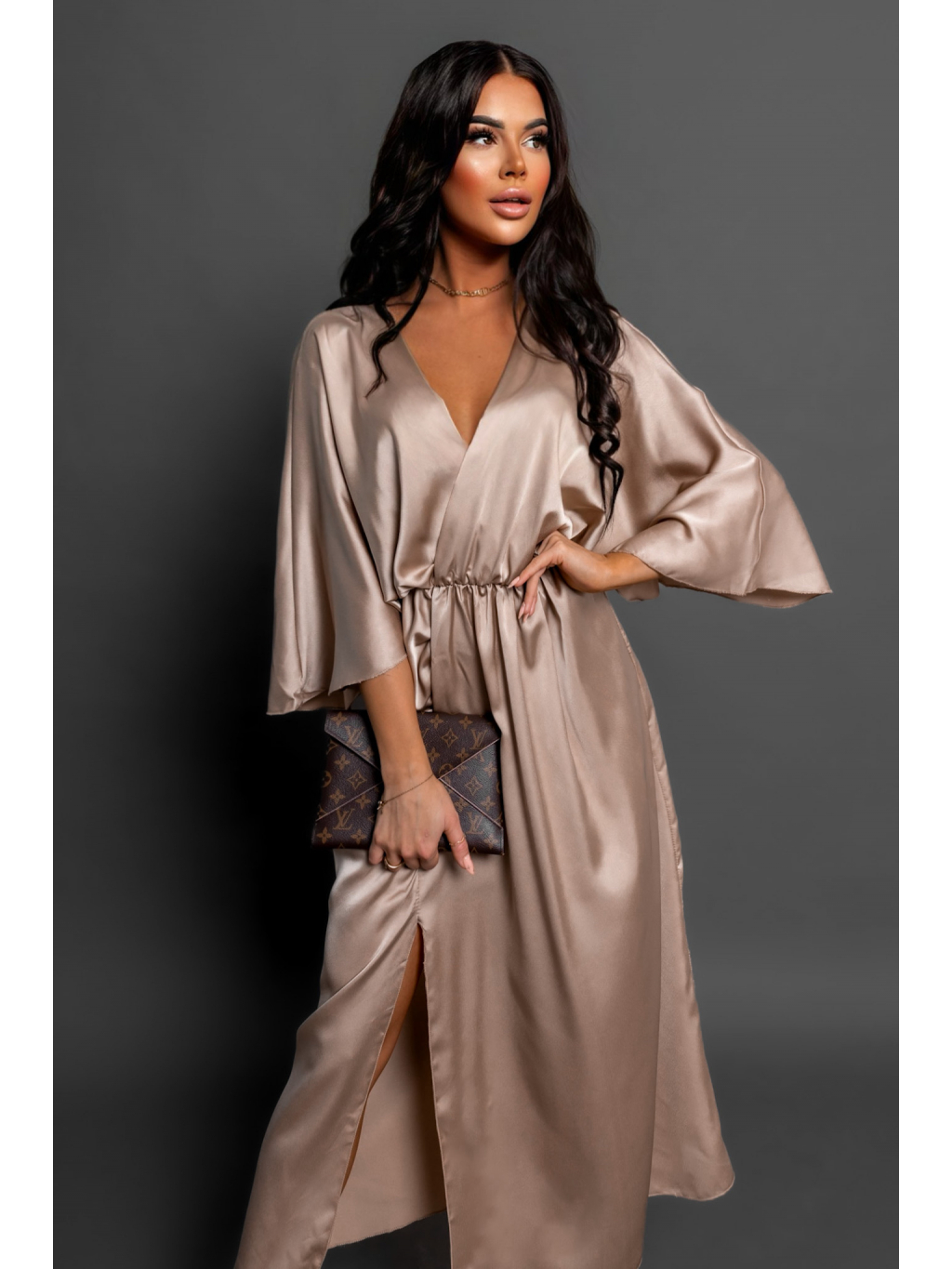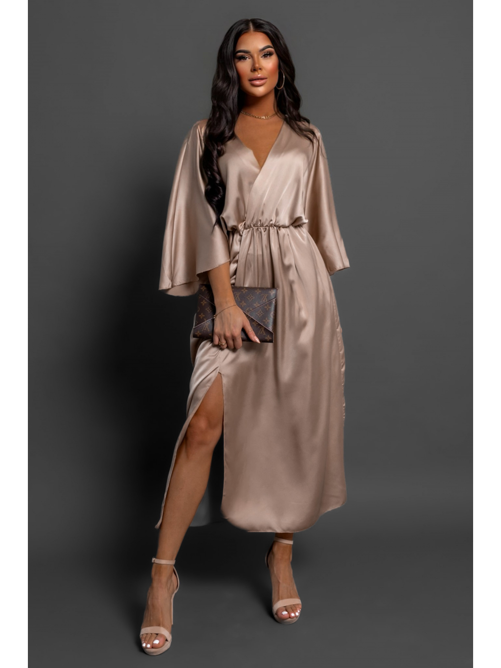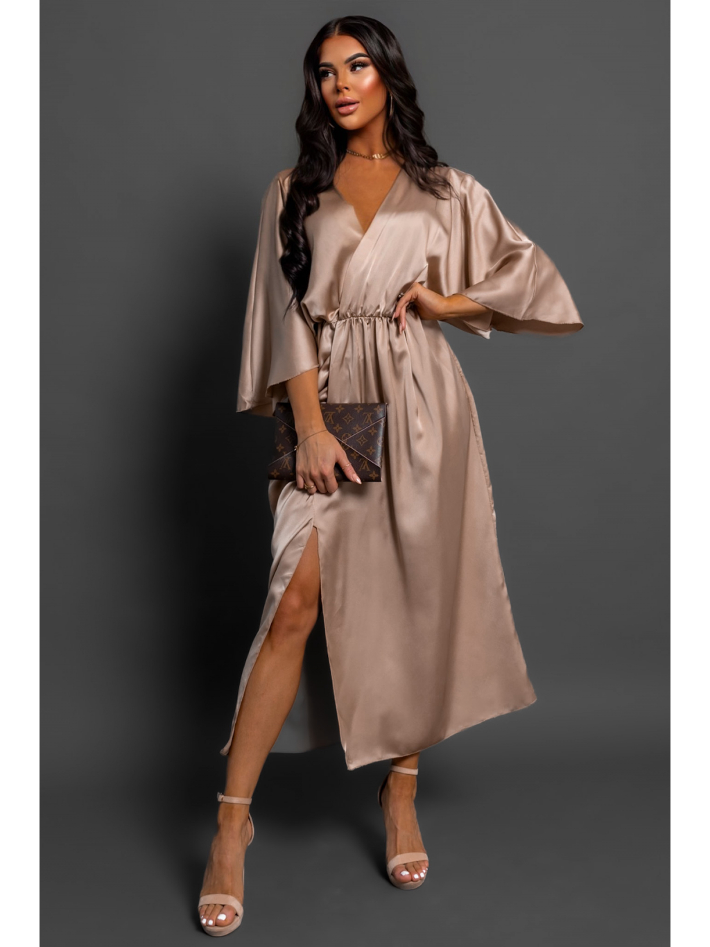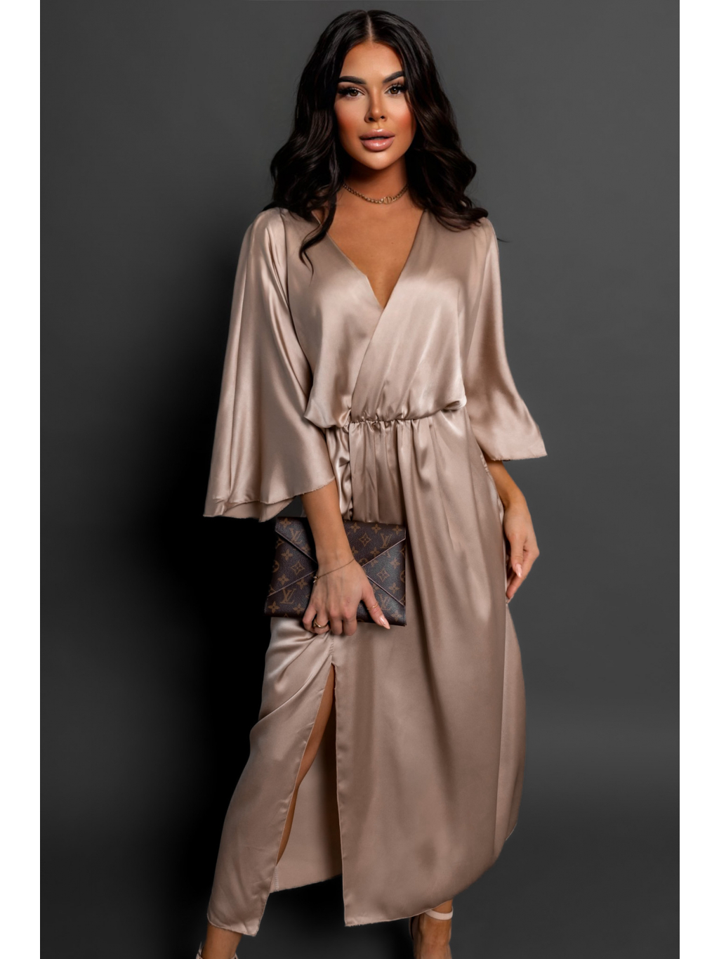 Béžové saténové elegantní šaty FRIENY