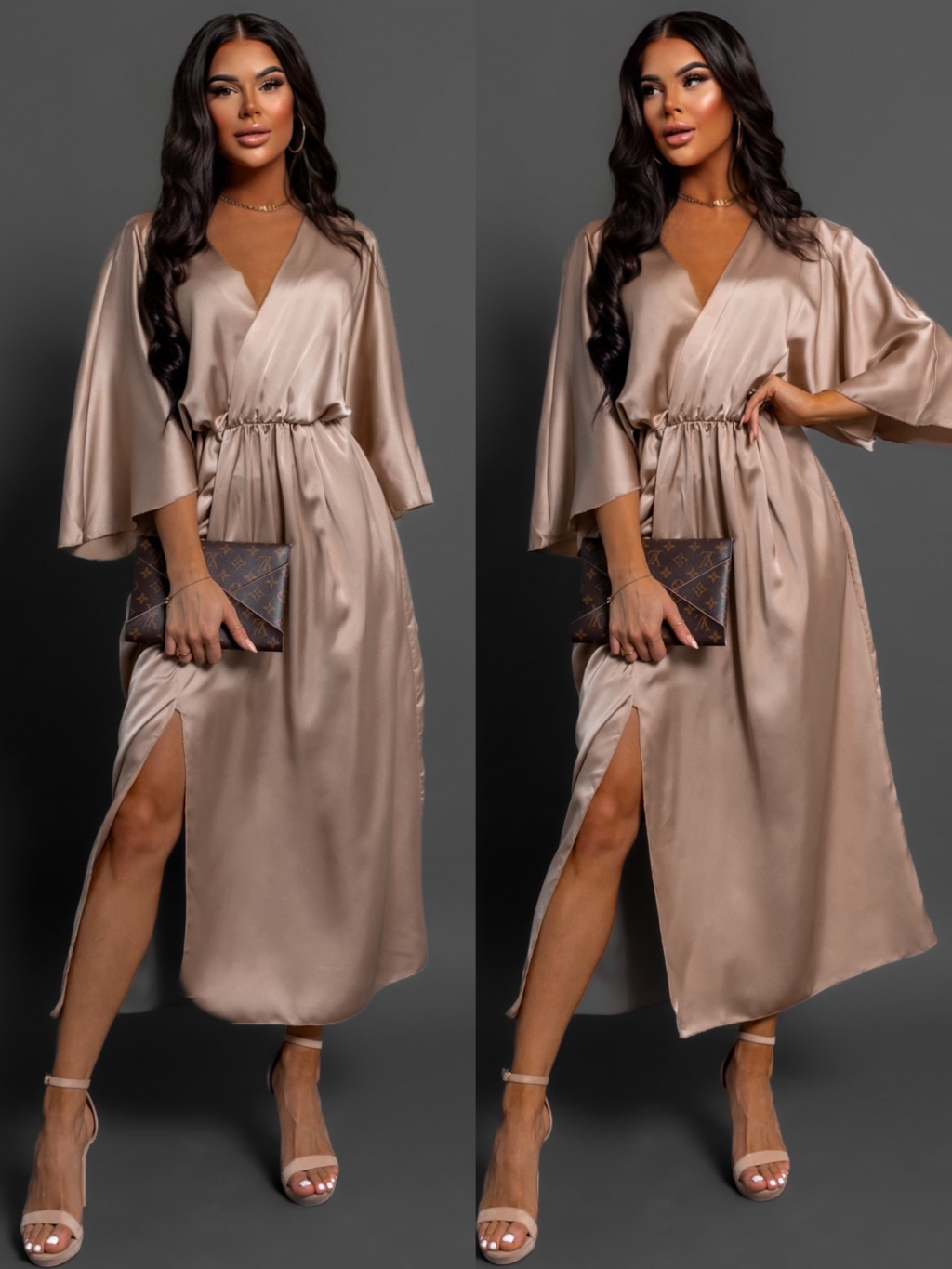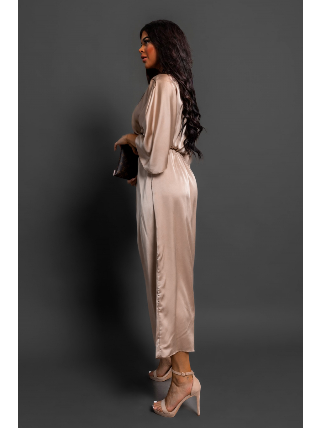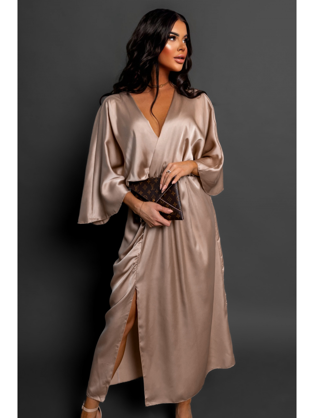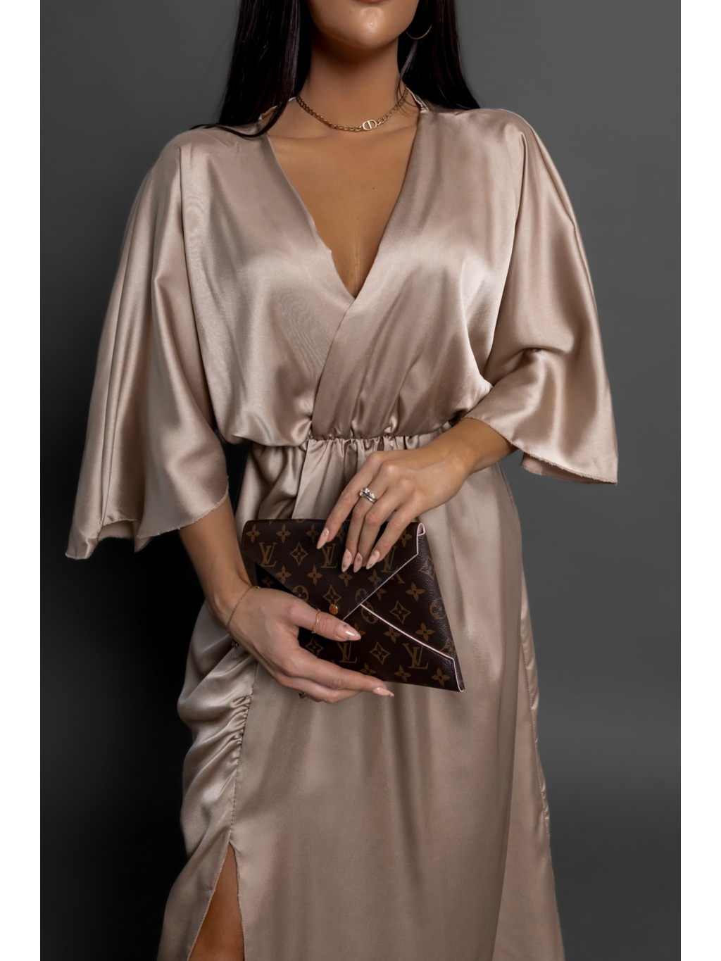 Béžové saténové elegantní šaty FRIENY