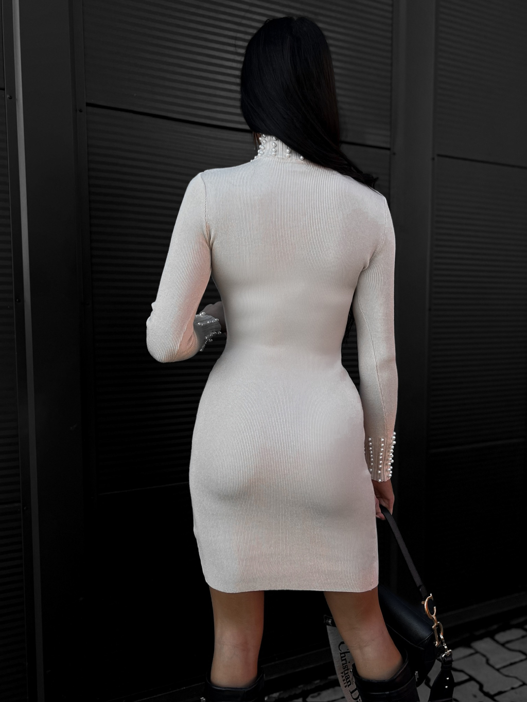 Béžové šaty DOLUNAY s perličkovým rolákem