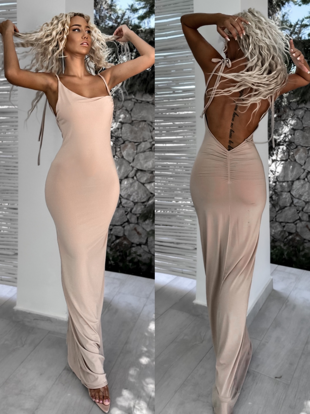 Béžové šaty KONTRAME se zavazováním na ramenech