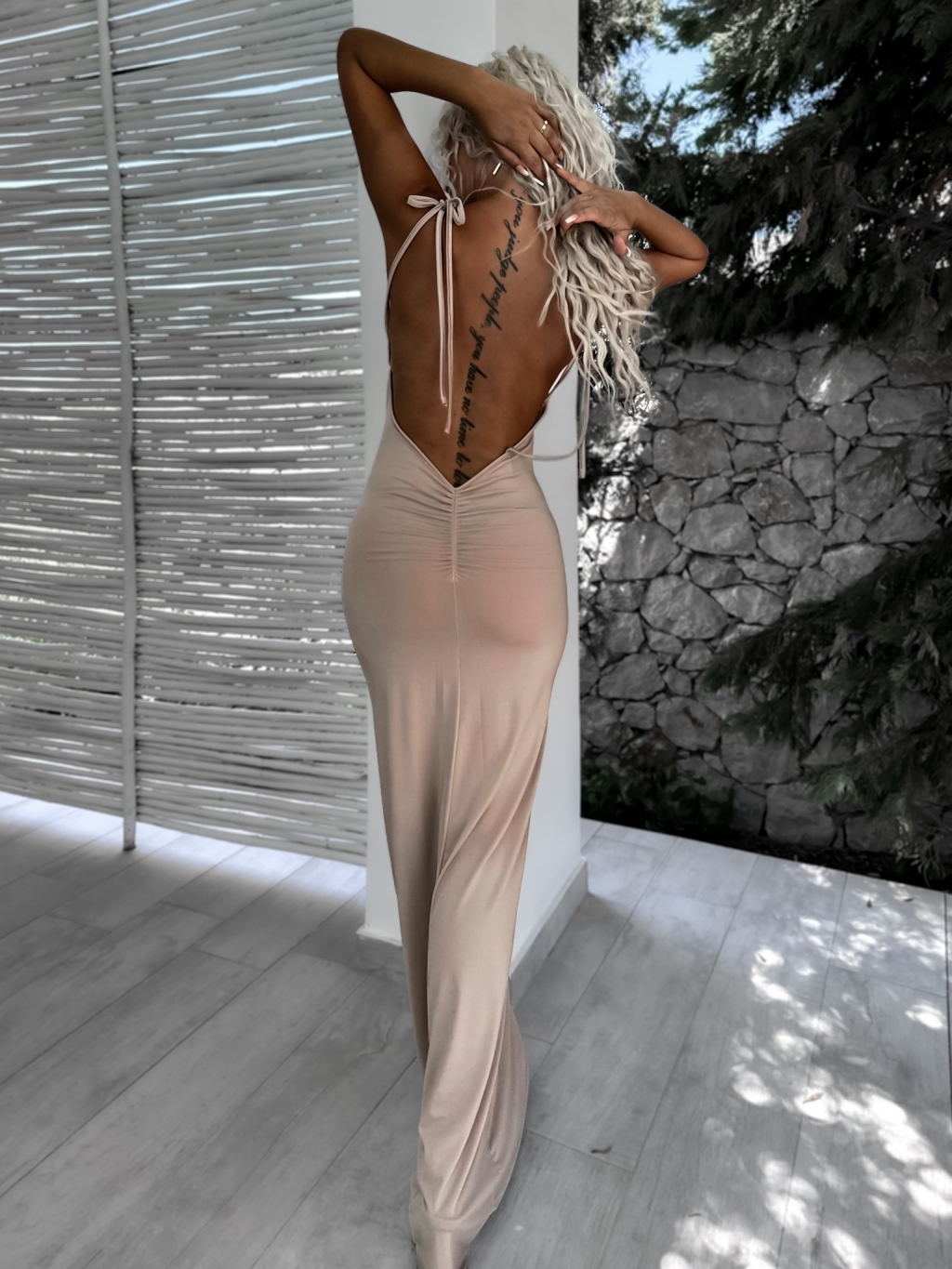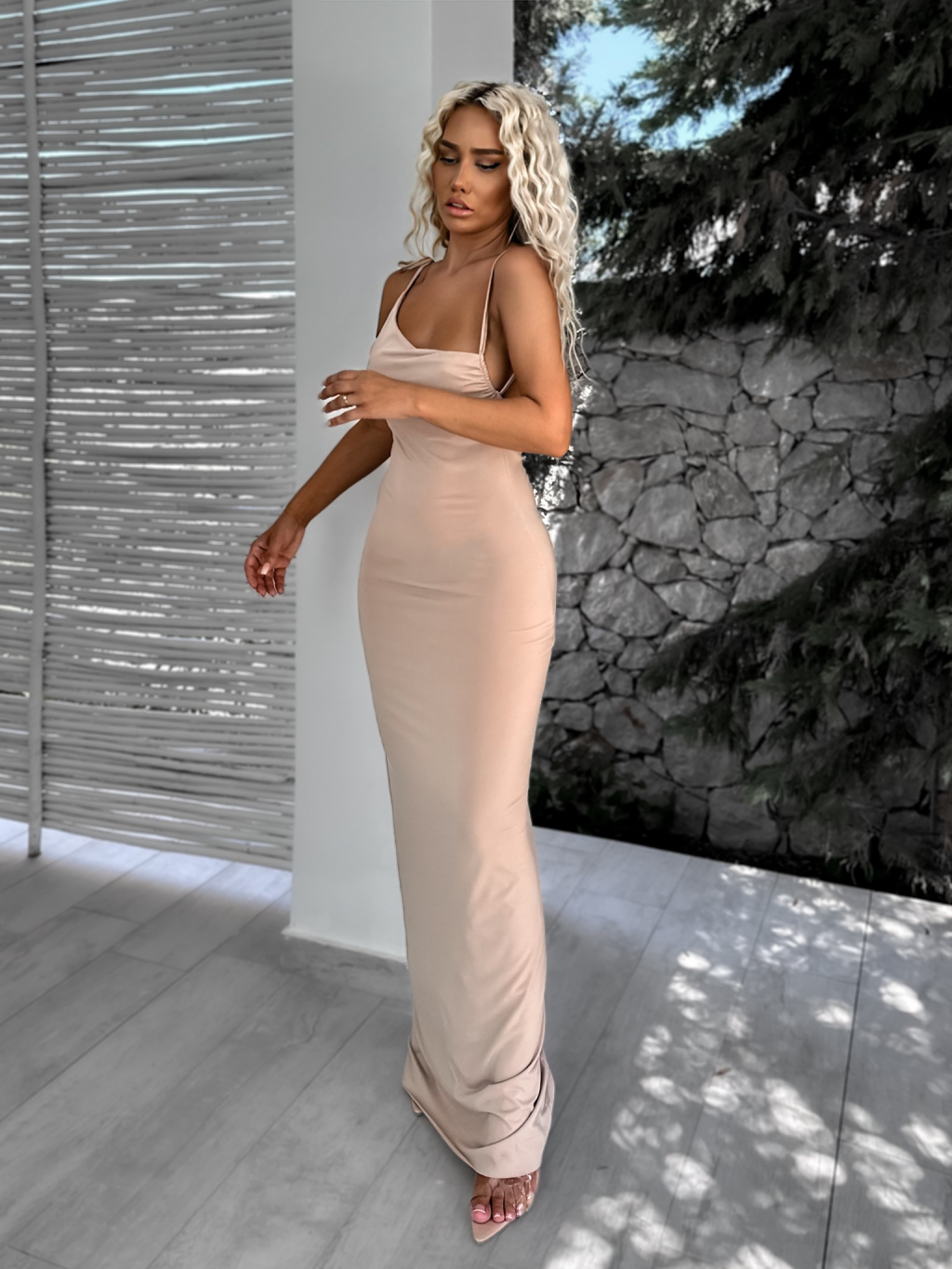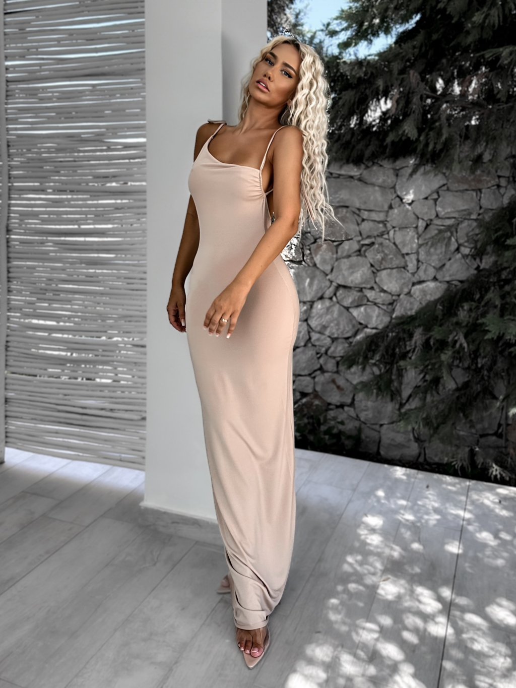 Béžové šaty KONTRAME se zavazováním na ramenech