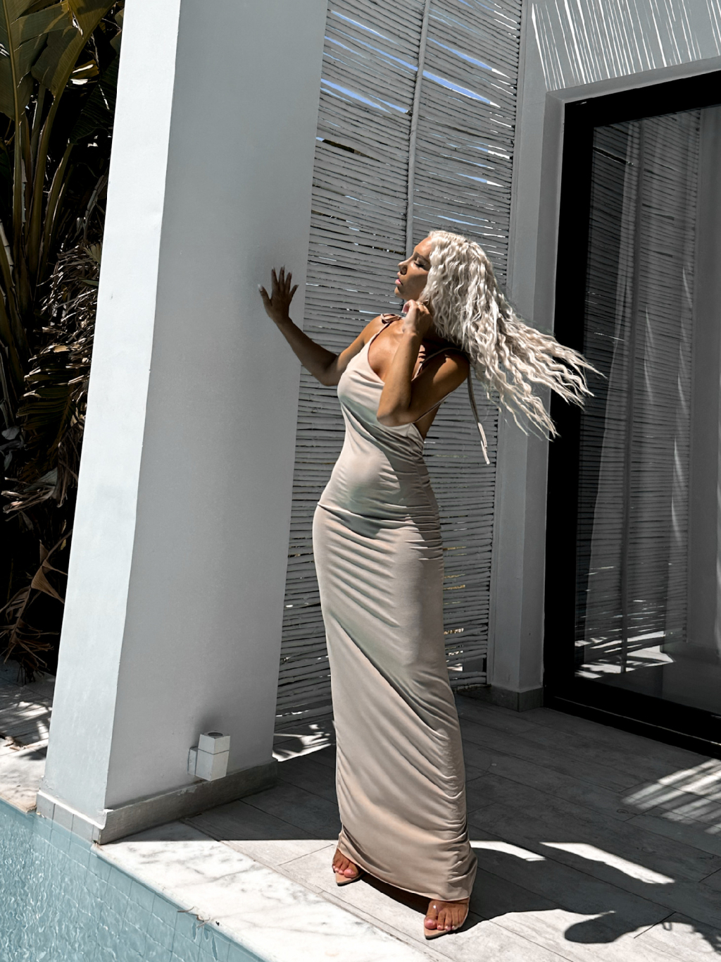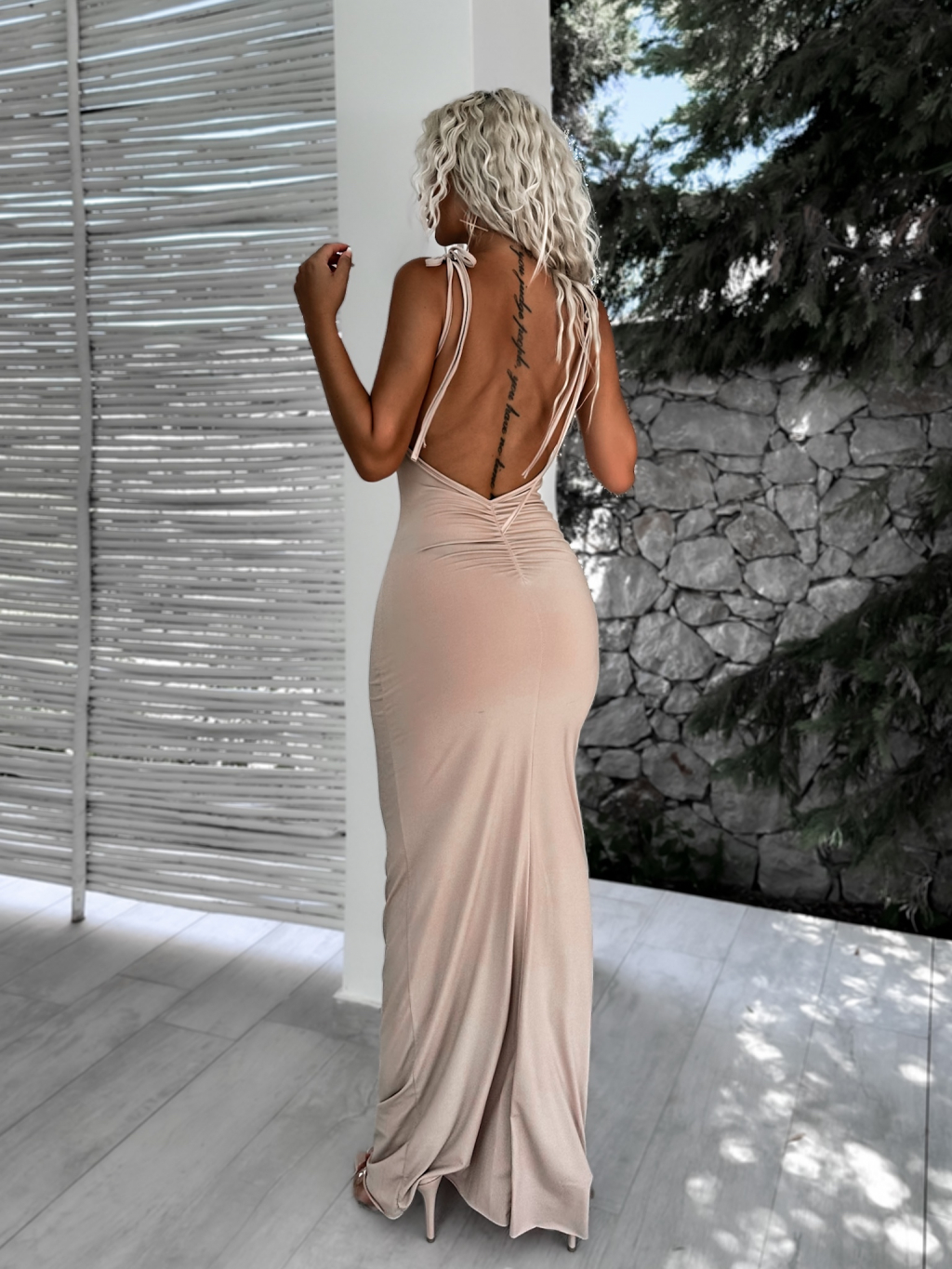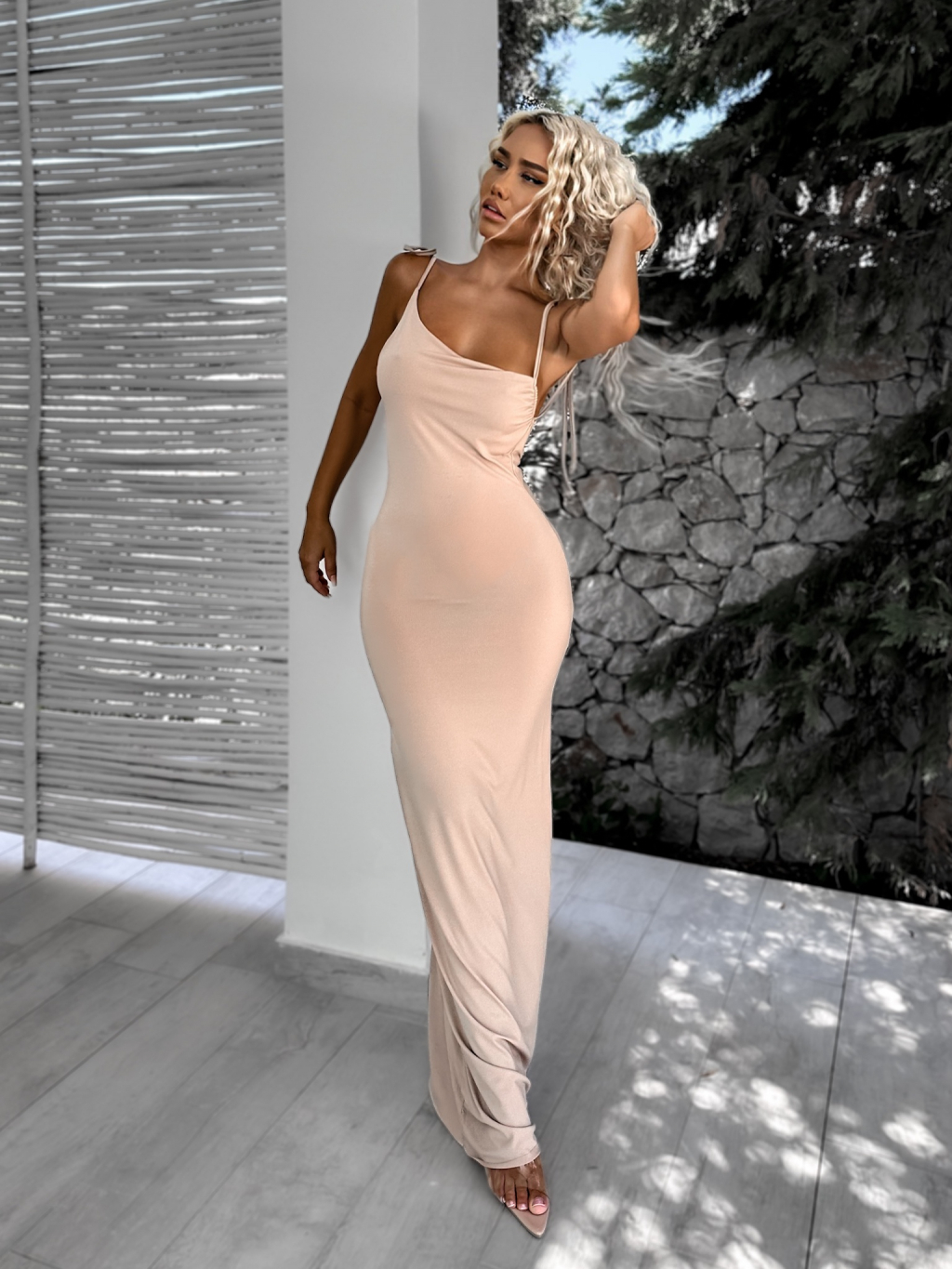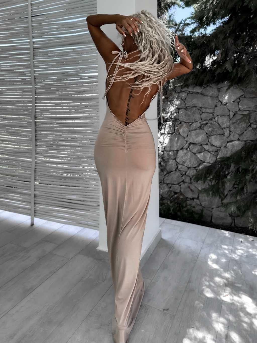 Béžové šaty KONTRAME se zavazováním na ramenech