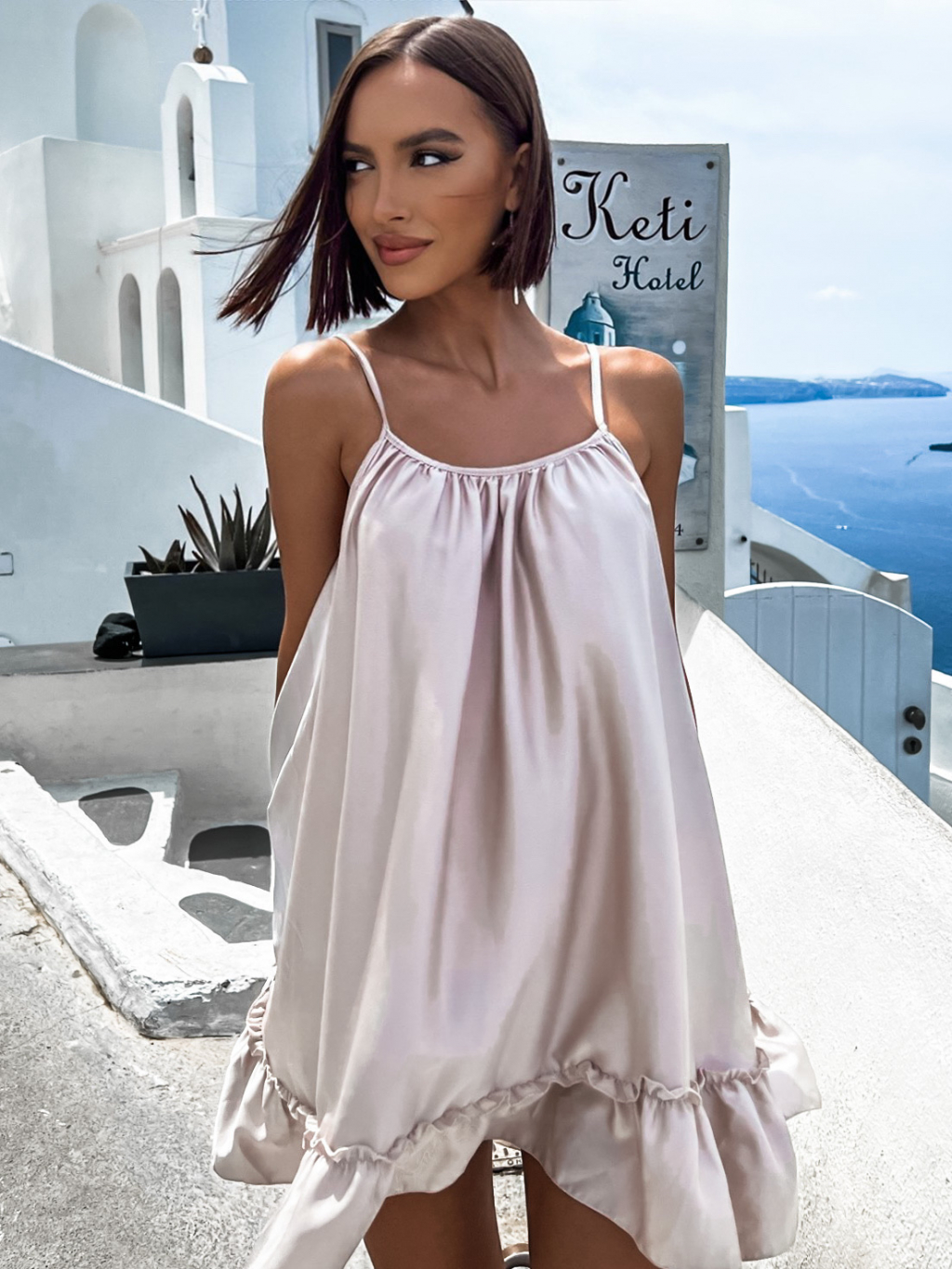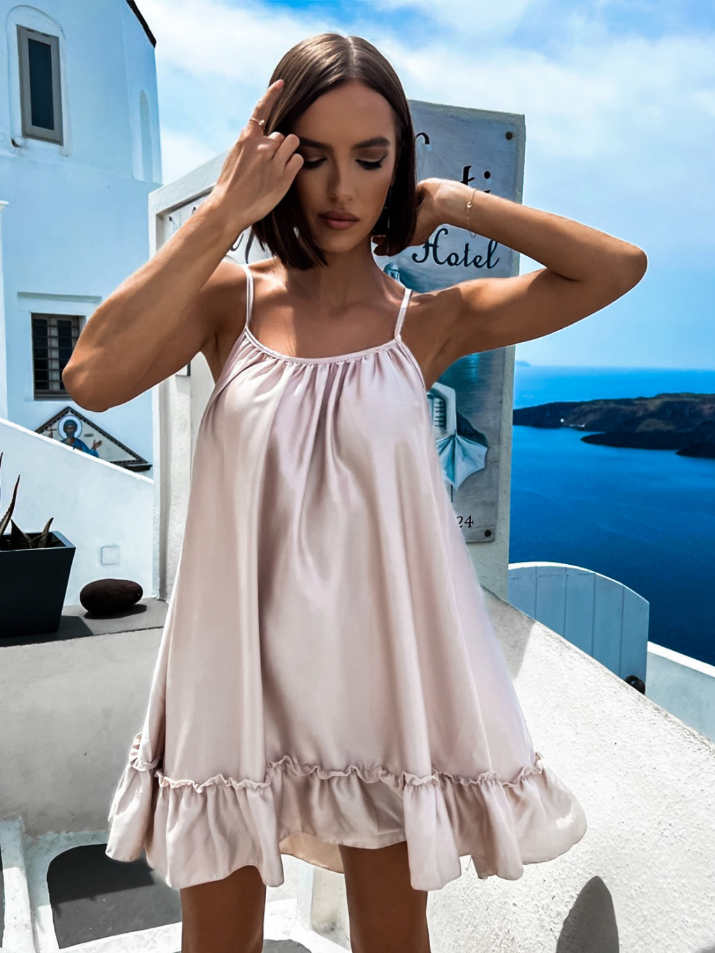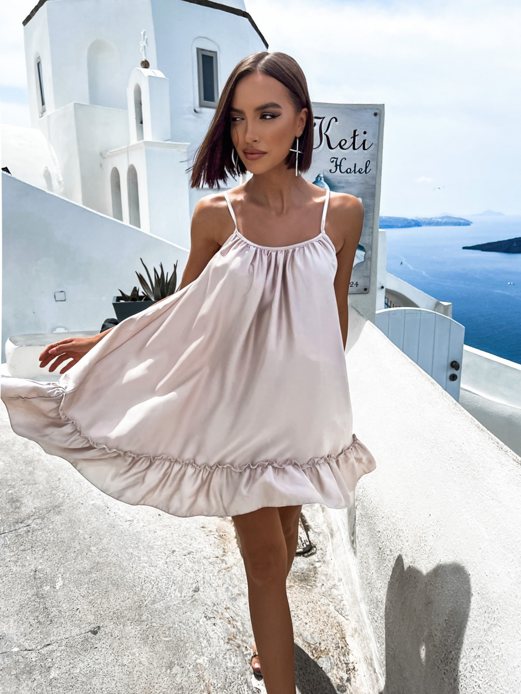 Béžové volánkové šaty GLASSY volného střihu