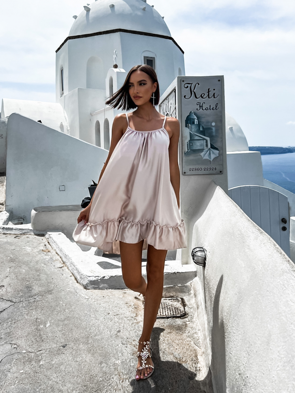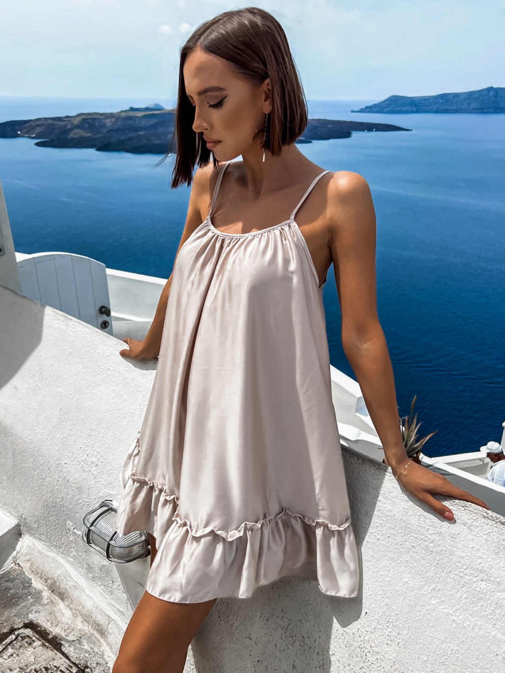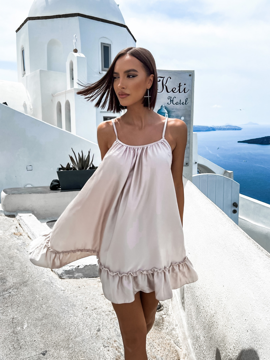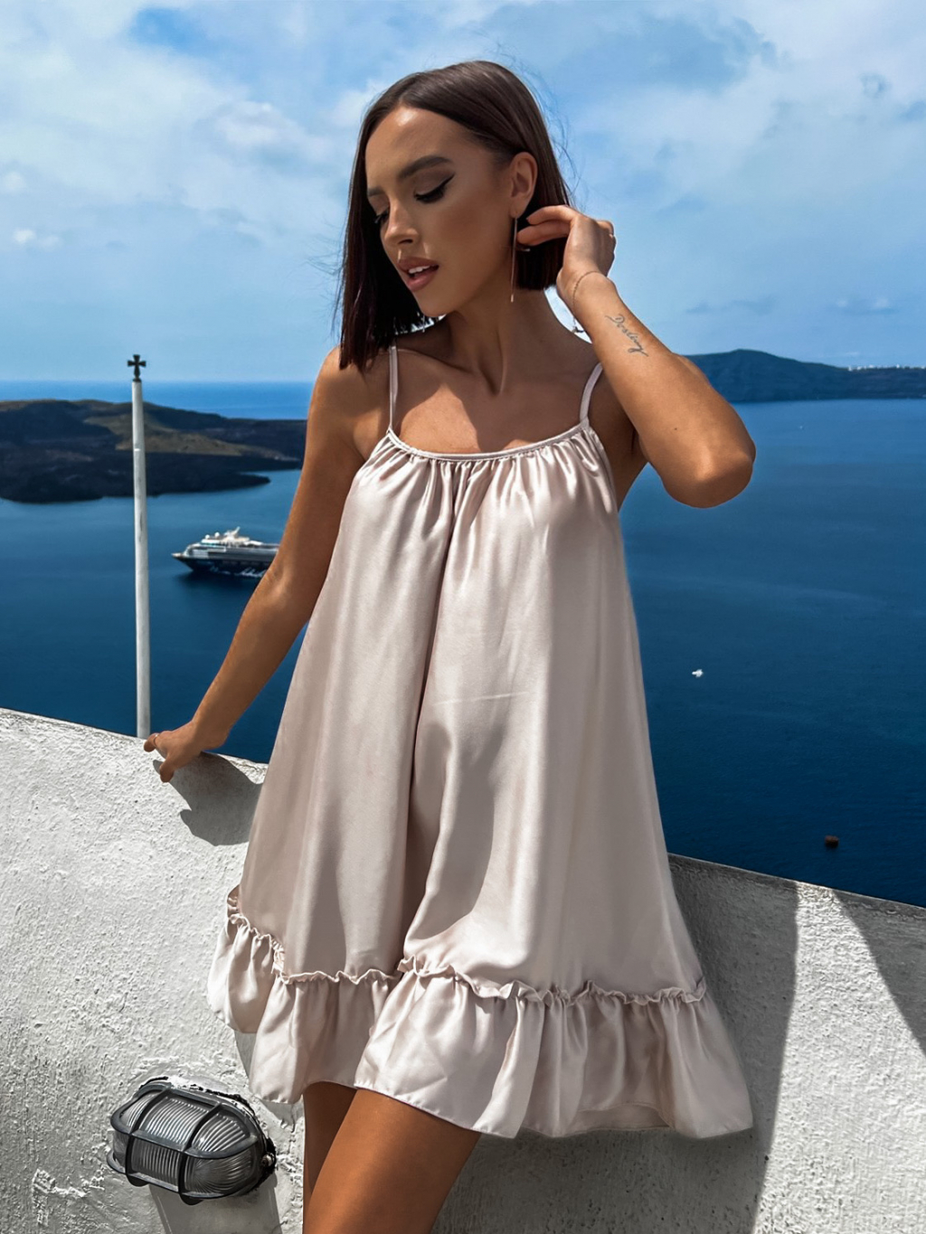 Béžové volánkové šaty GLASSY volného střihu