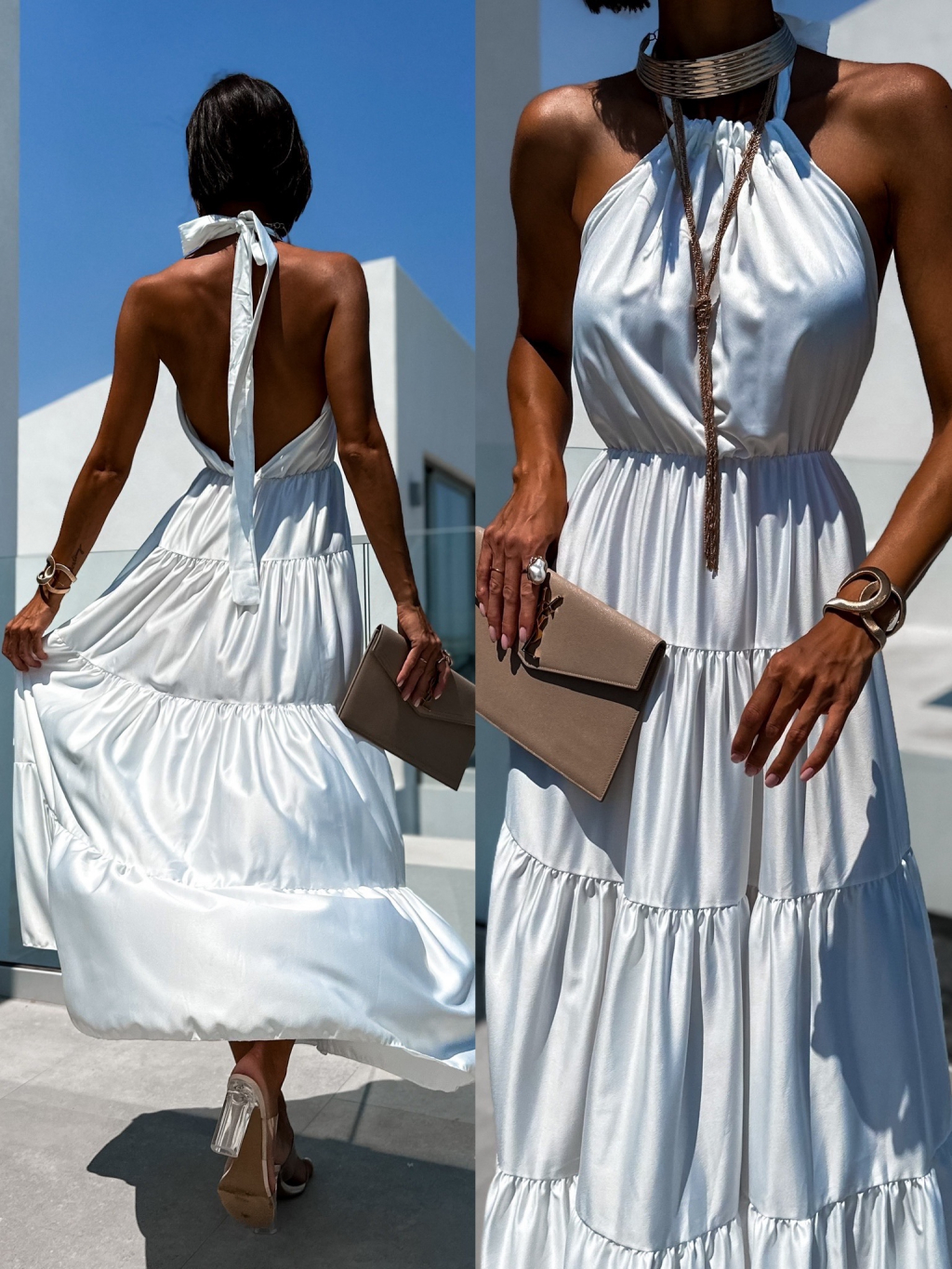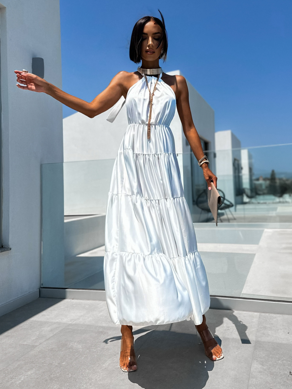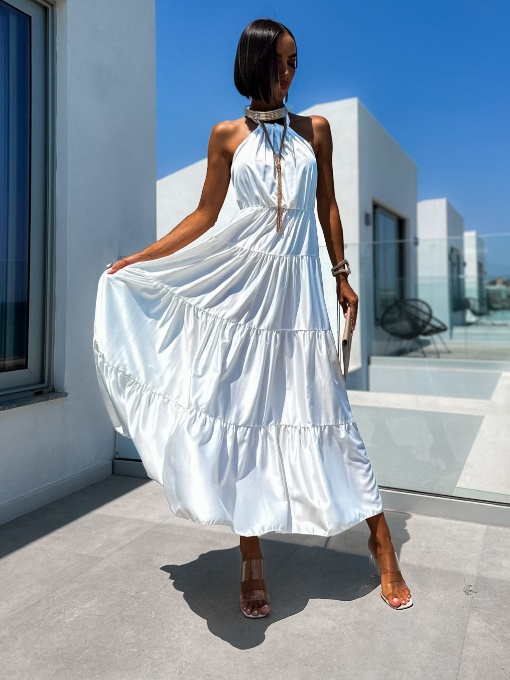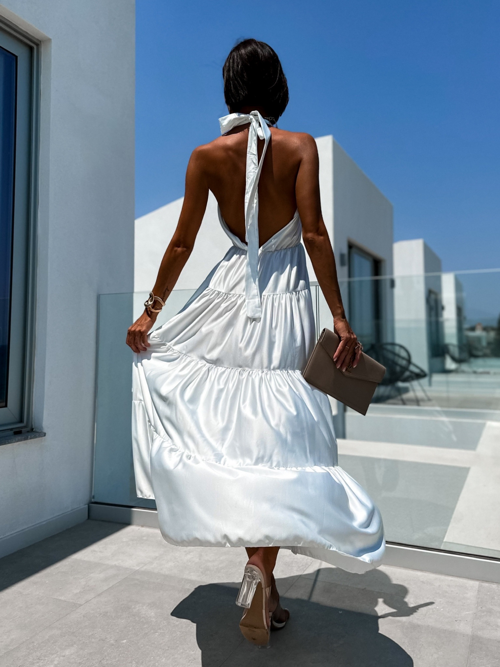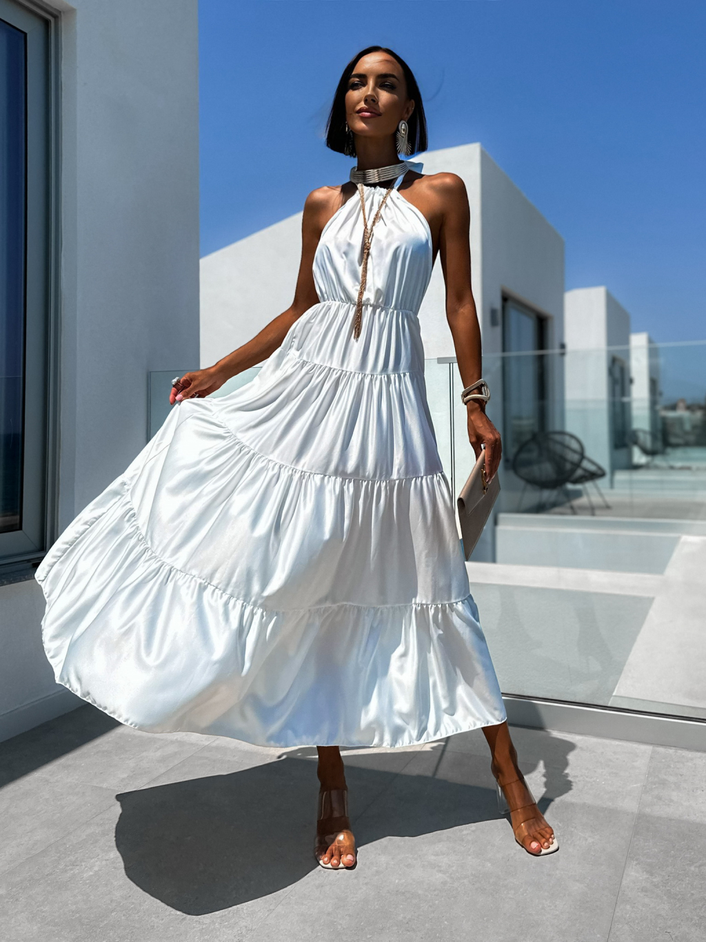 Bílé dlouhé elegantní šaty FERNS s průstřihem na zádech