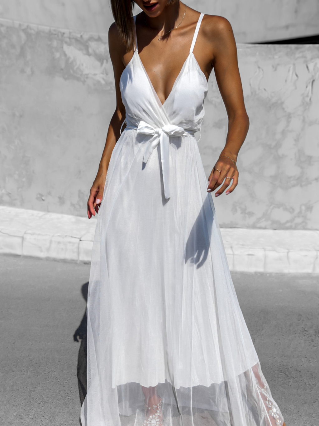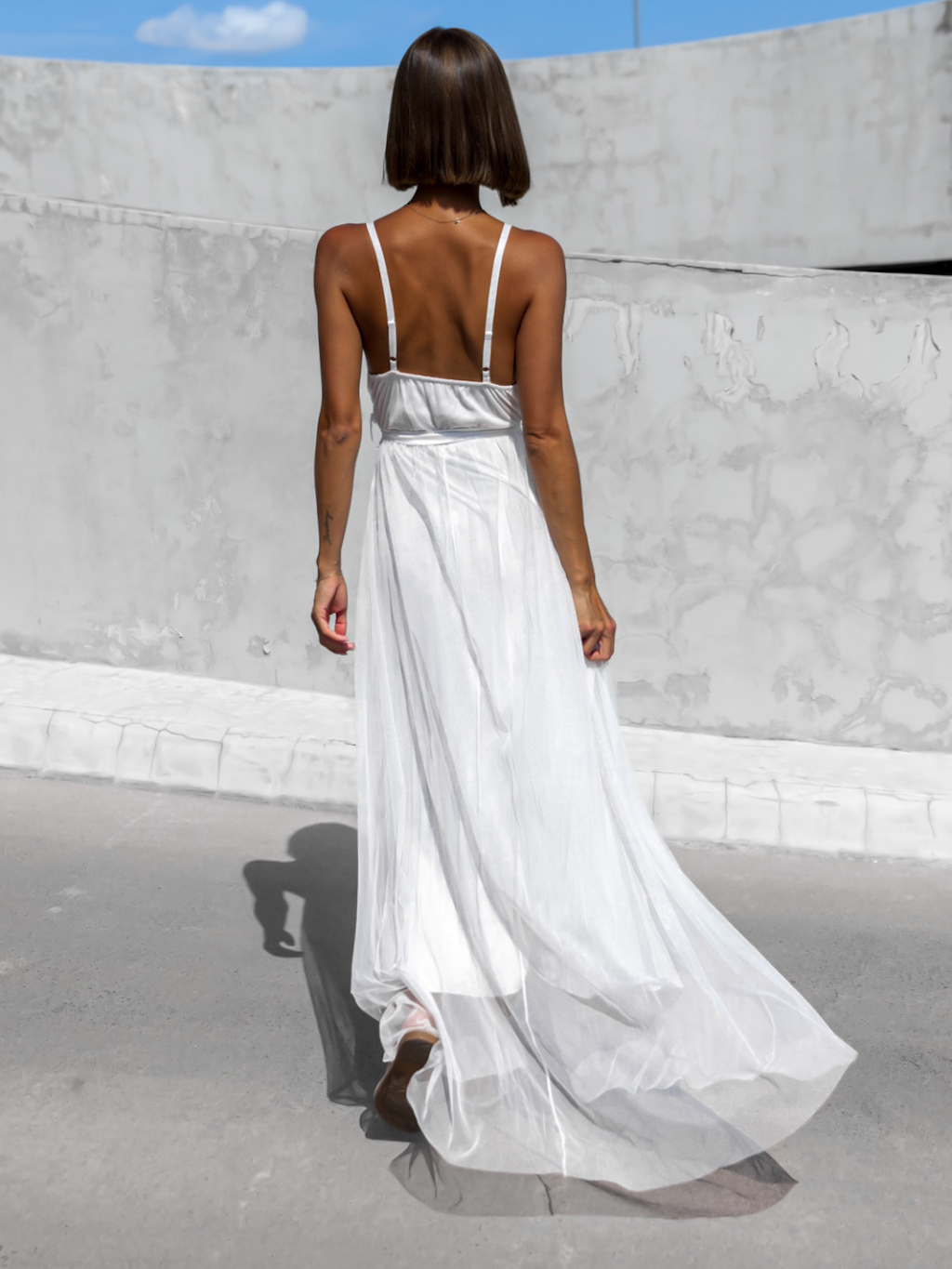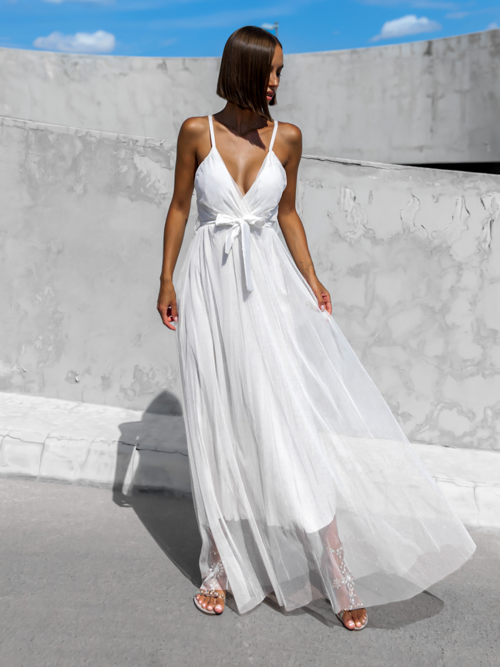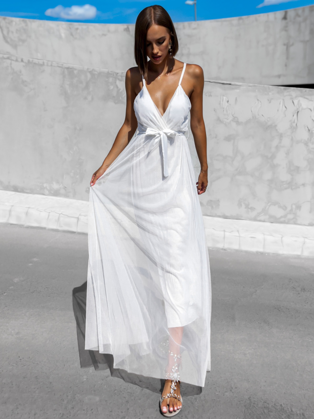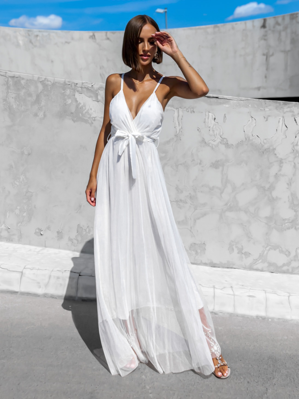 Bílé dlouhé elegantní šaty MONARCH na zavazování