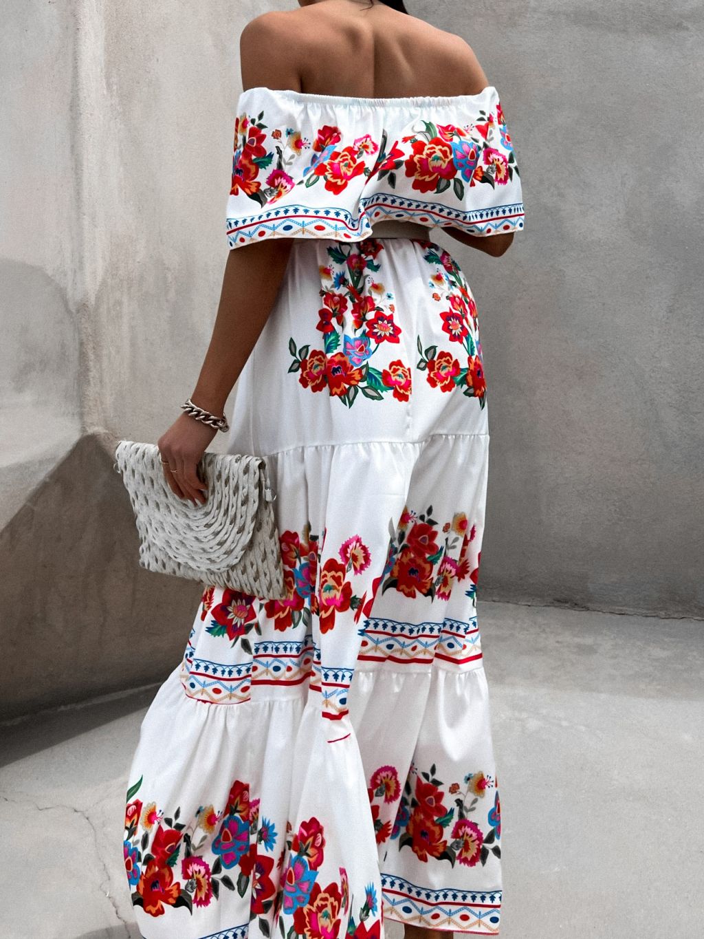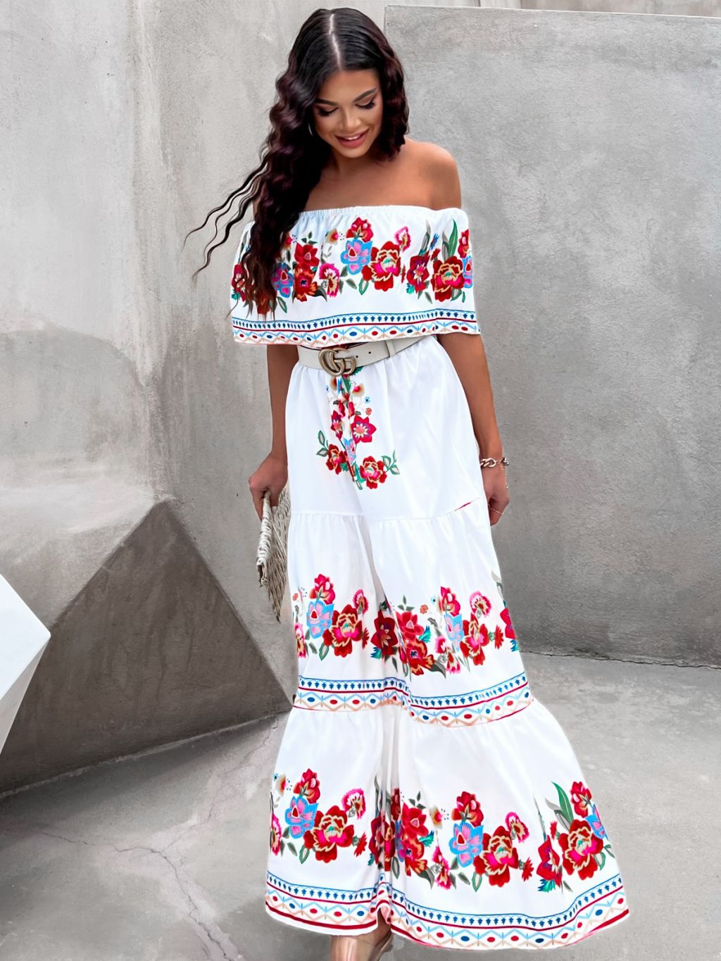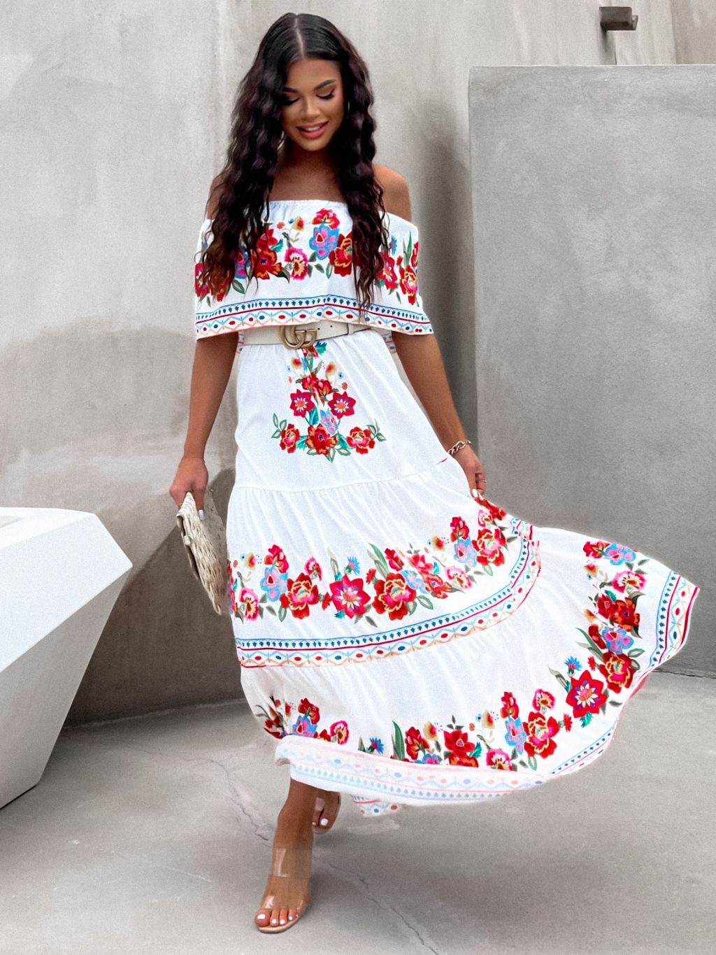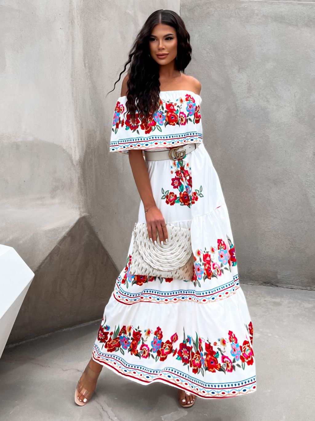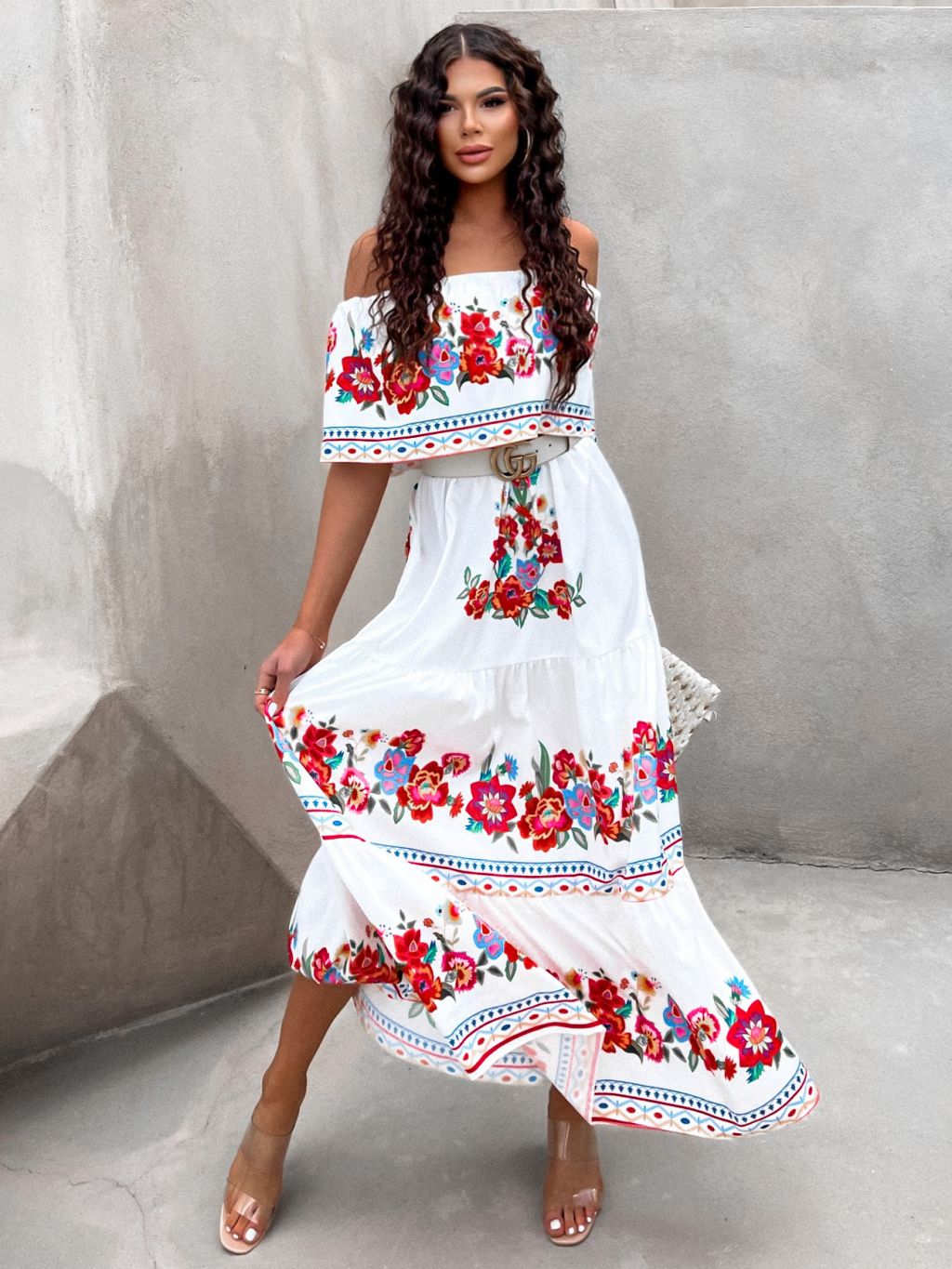 Bílé dlouhé elegantní šaty PRESSURE s květinovým vzorem