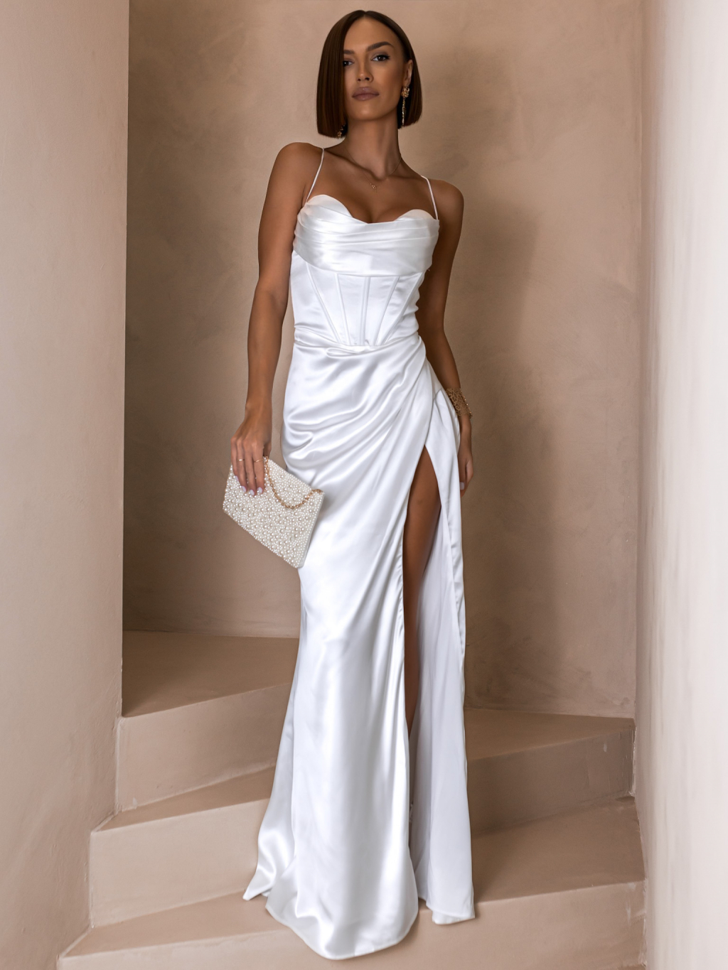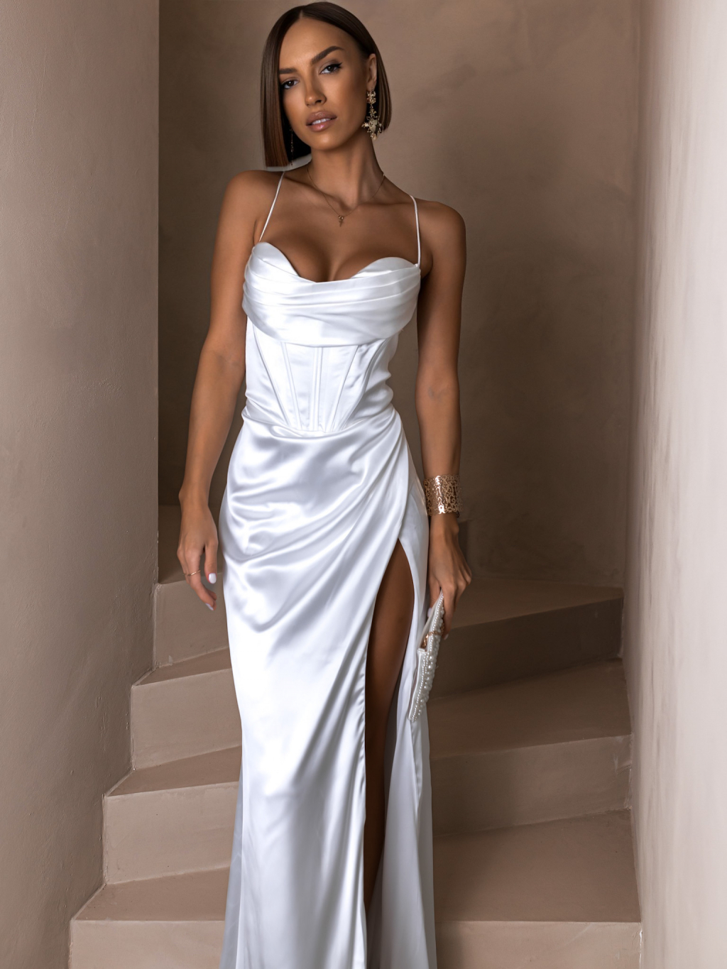 Bílé dlouhé plesové elegantní šaty VOLINET