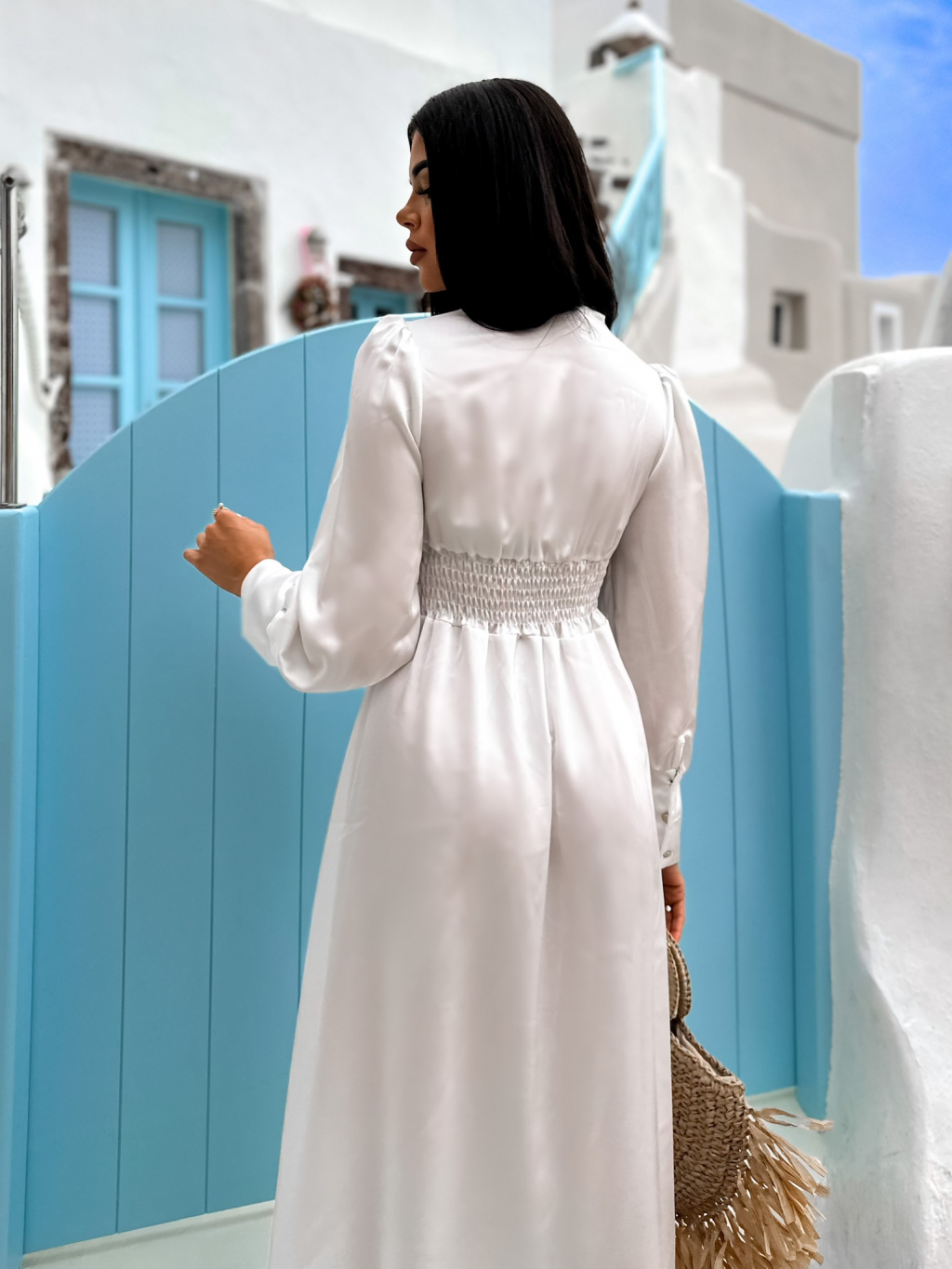 Bílé dlouhé šaty FALLENS s dlouhým rukávem
