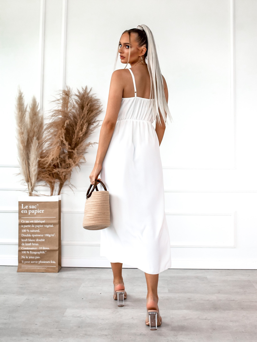 Bílé dlouhé šaty GROOVES s knoflíky