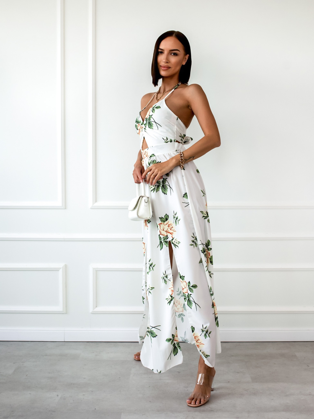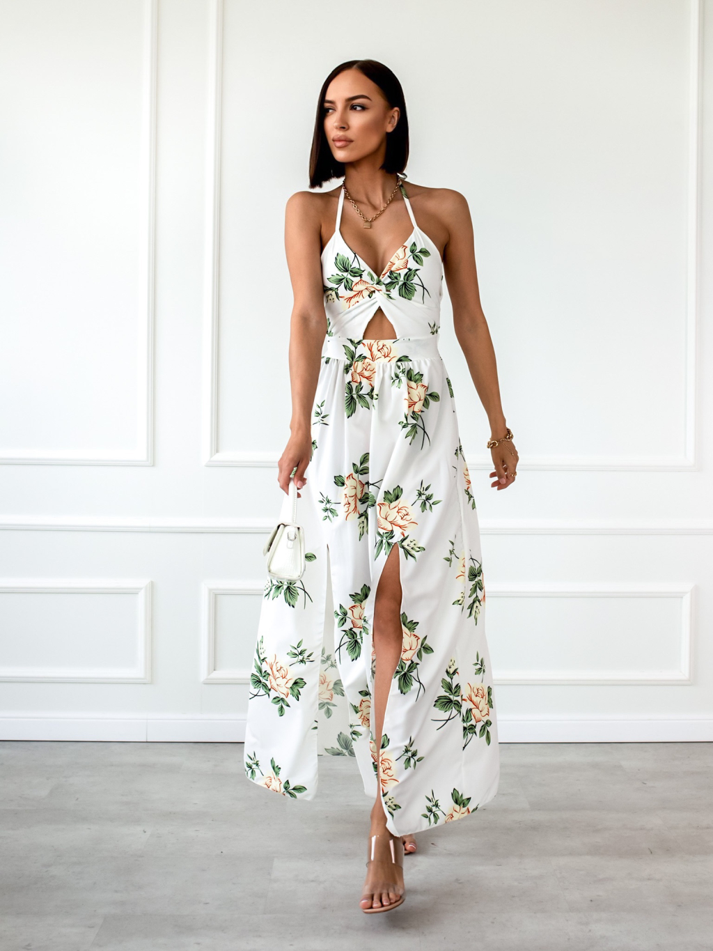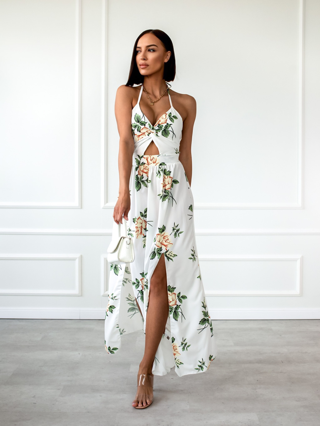 Bílé dlouhé šaty SMELL s průstřihy a rozparkem