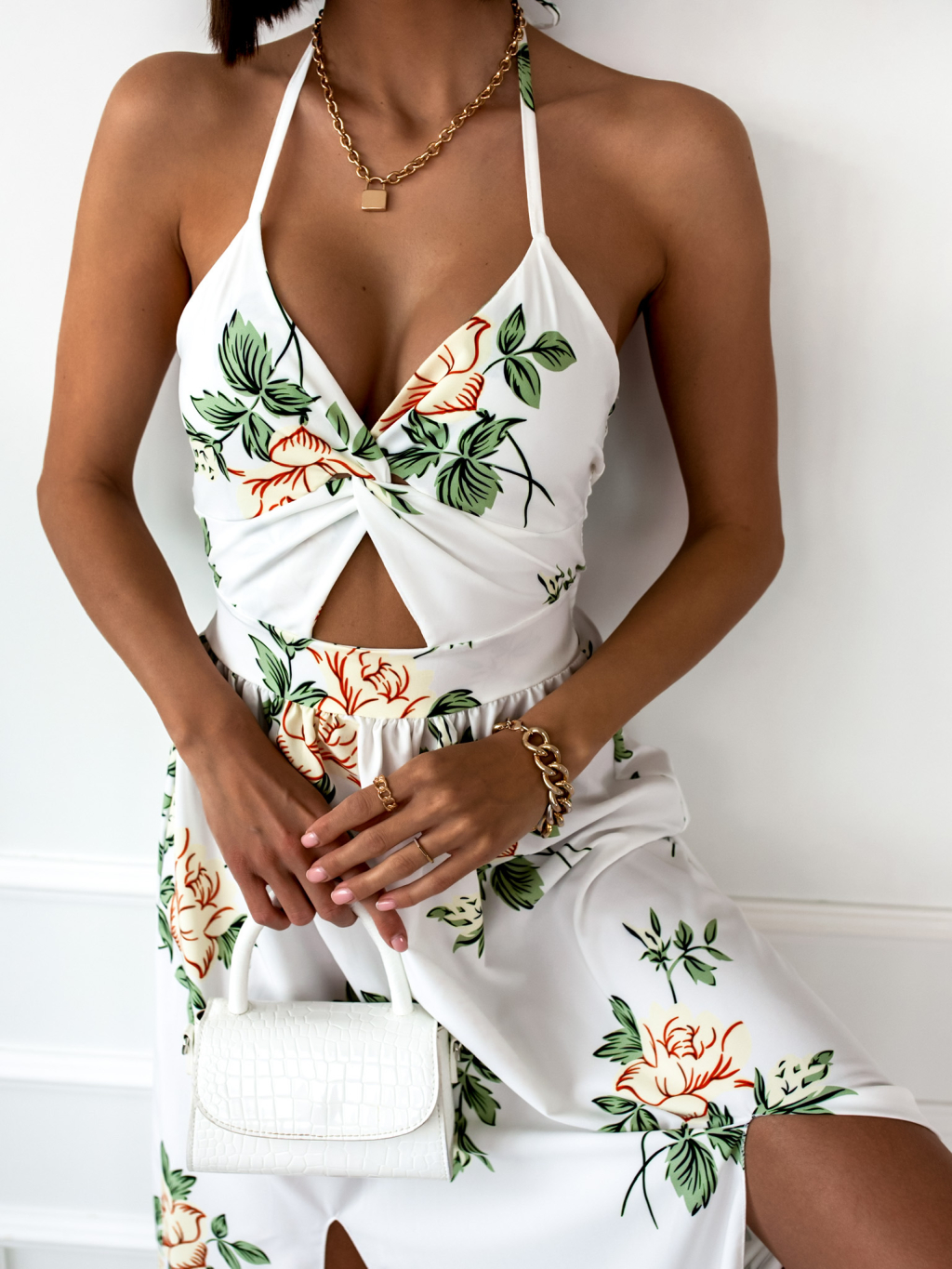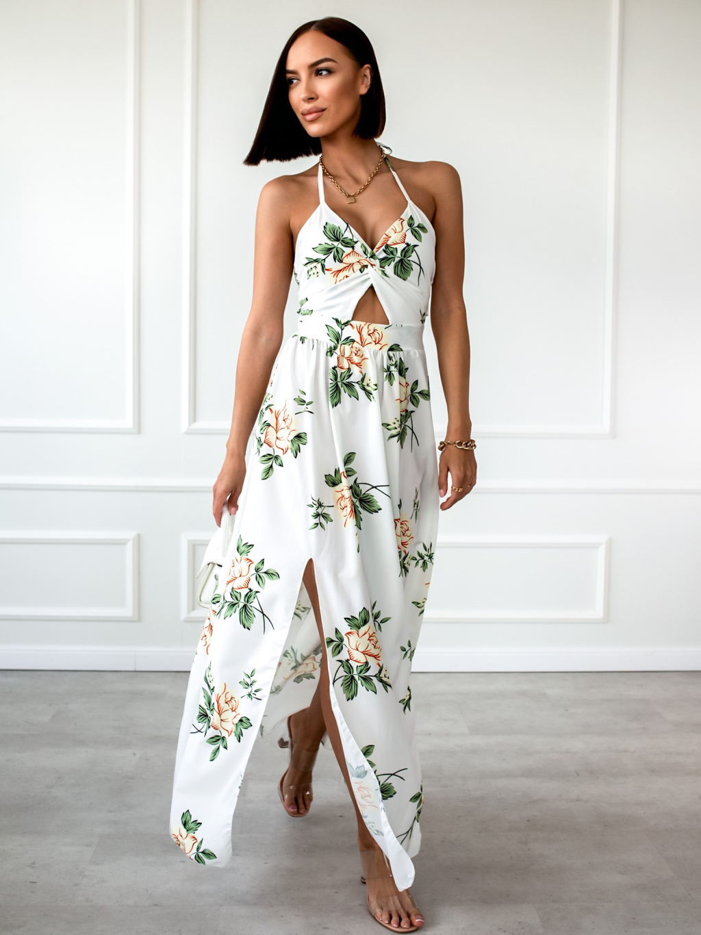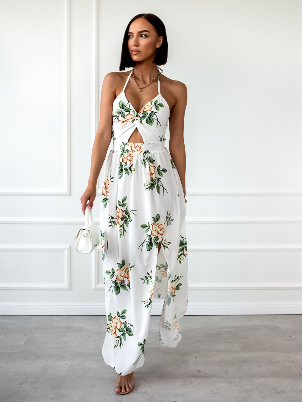 Bílé dlouhé šaty SMELL s průstřihy a rozparkem