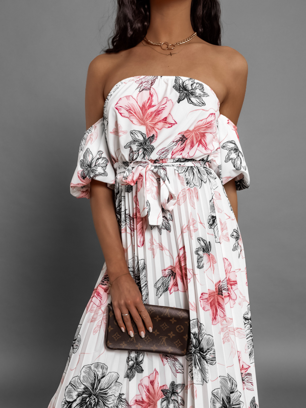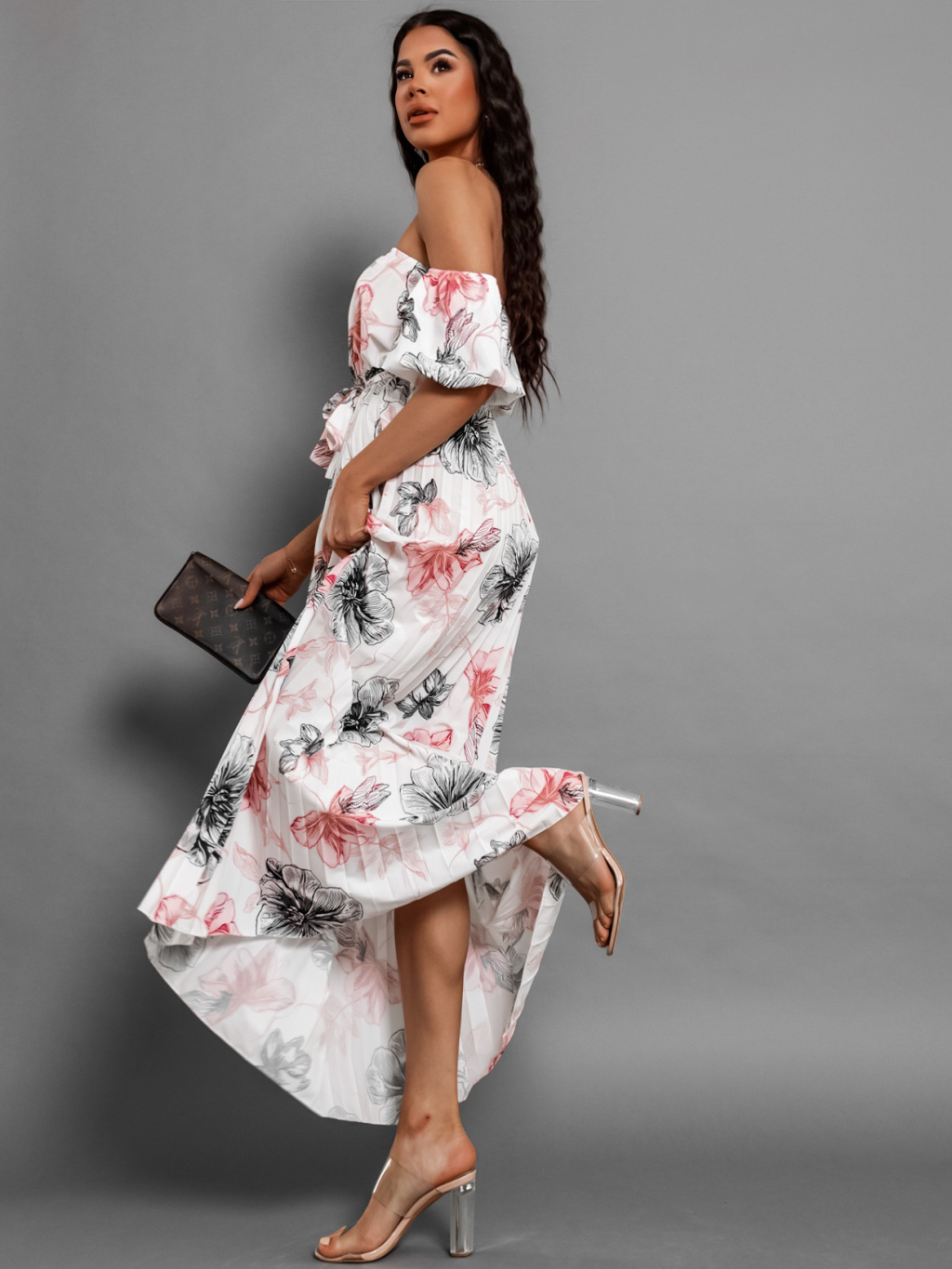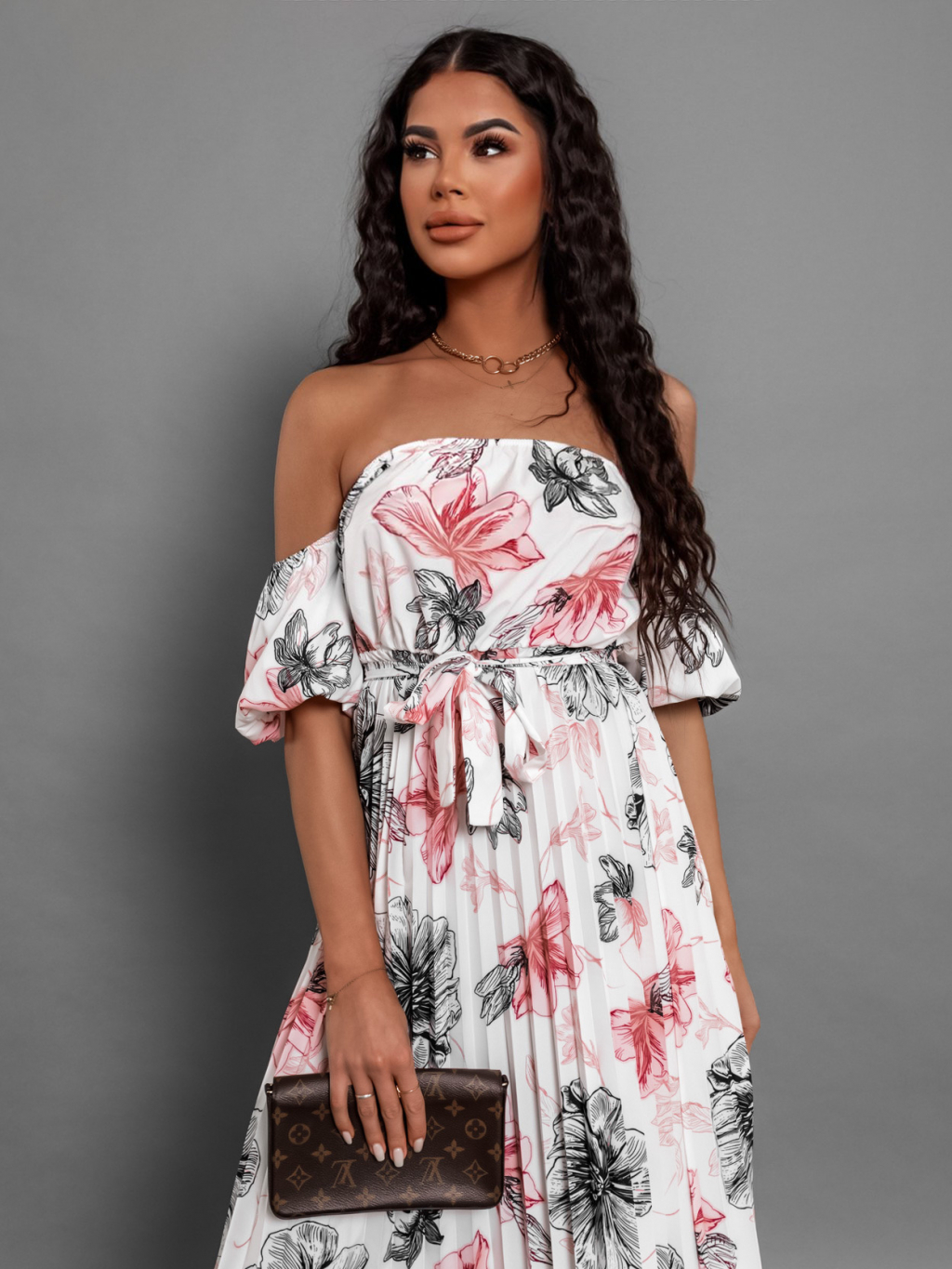 Bílé elegantní šaty AMONA s květinovým vzorem