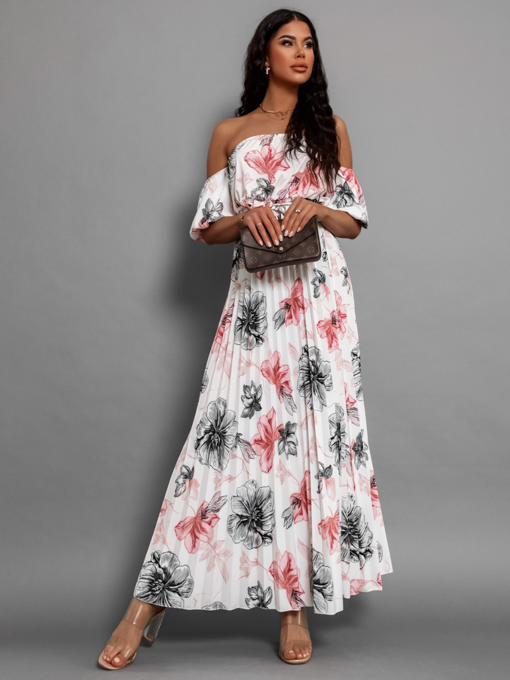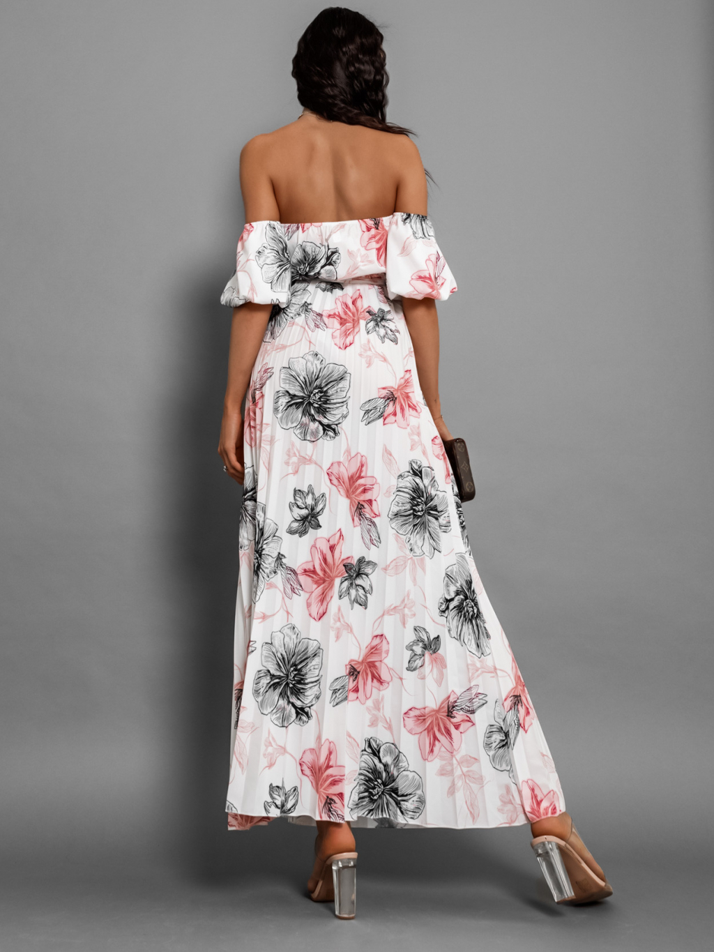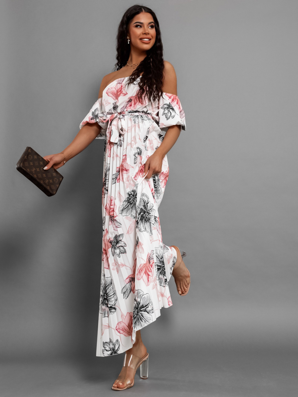 Bílé elegantní šaty AMONA s květinovým vzorem