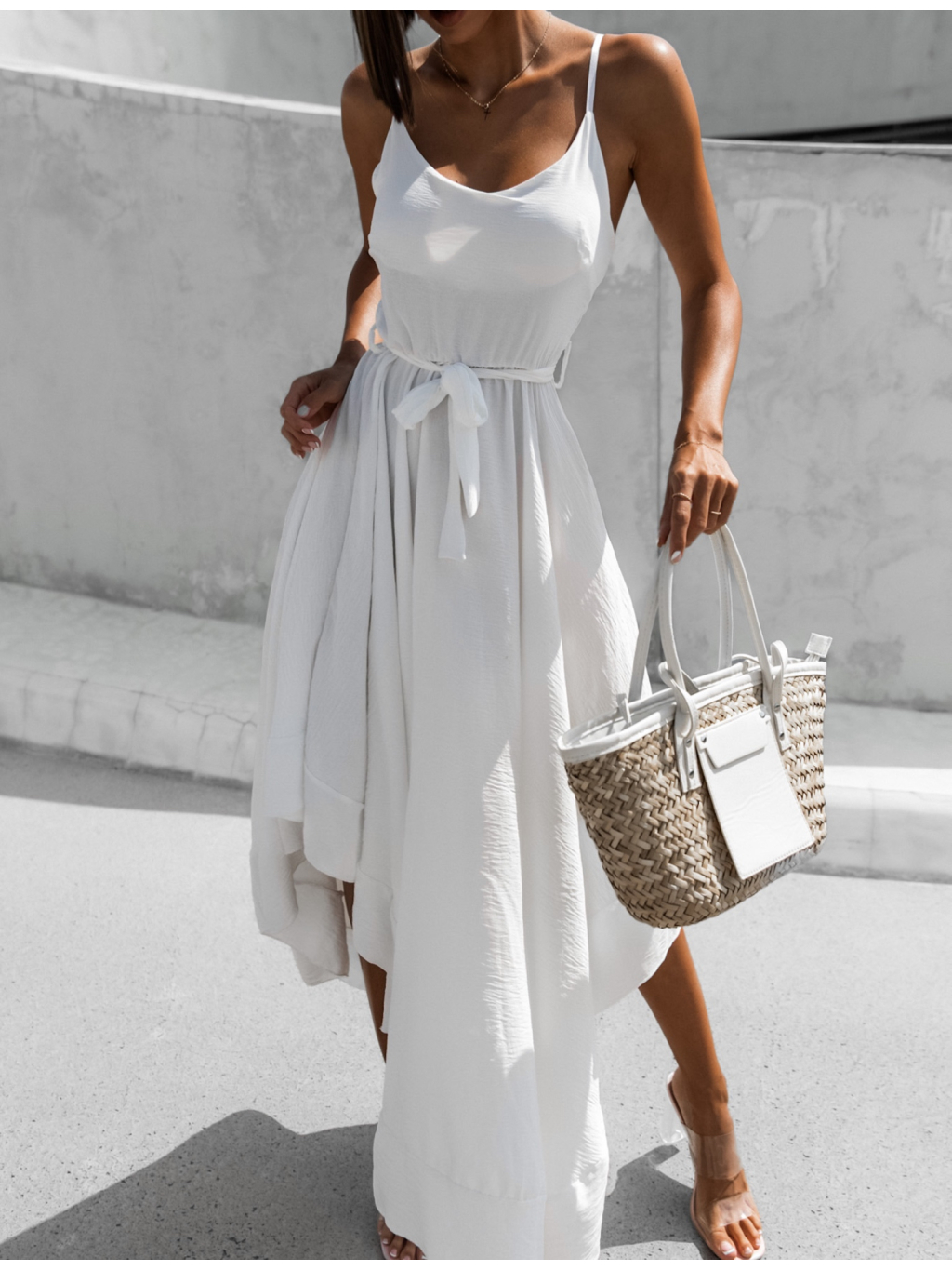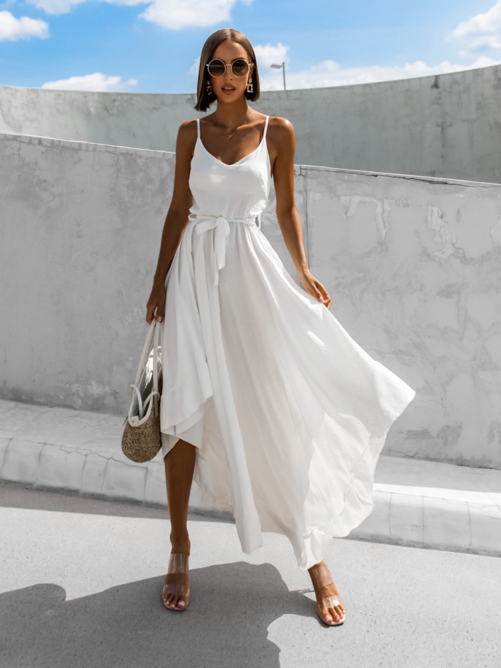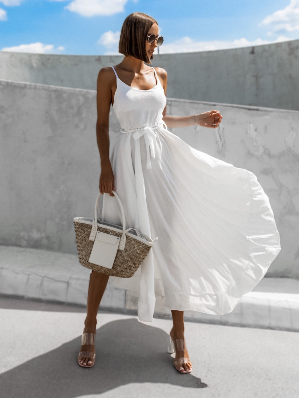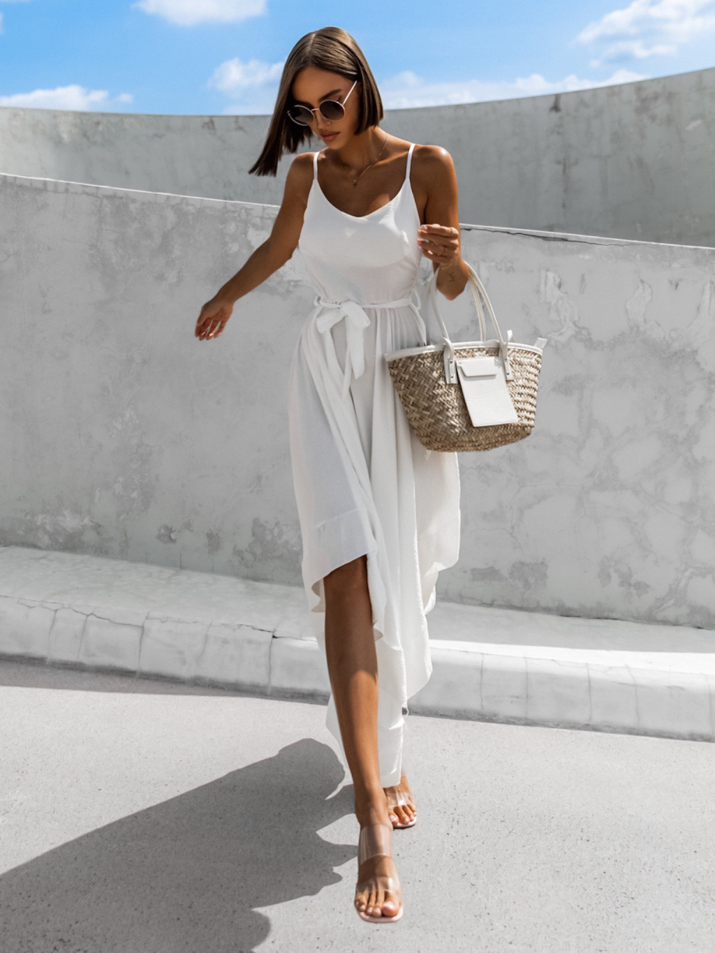 Bílé elegantní šaty FLORIE asymetrického stylu