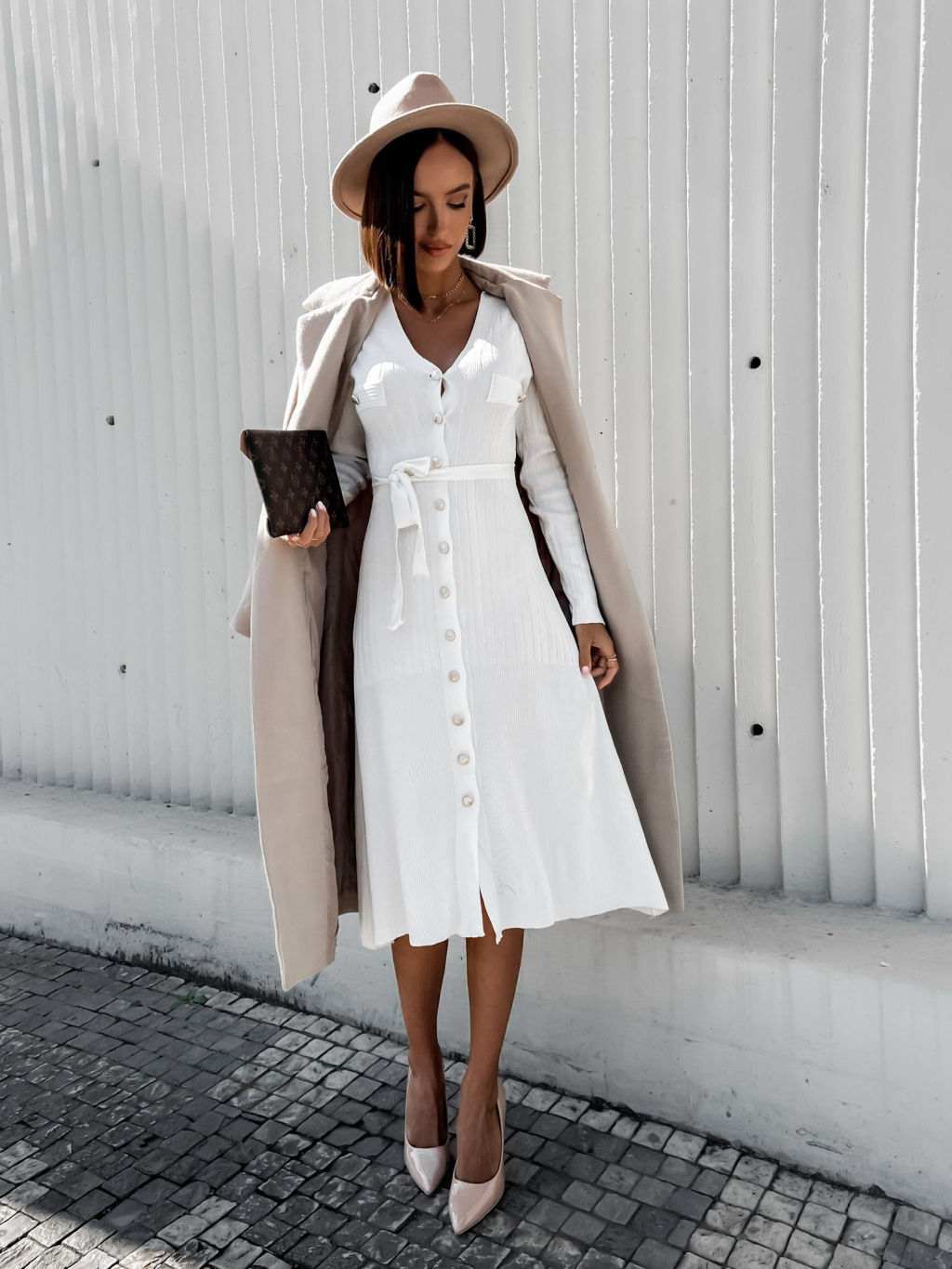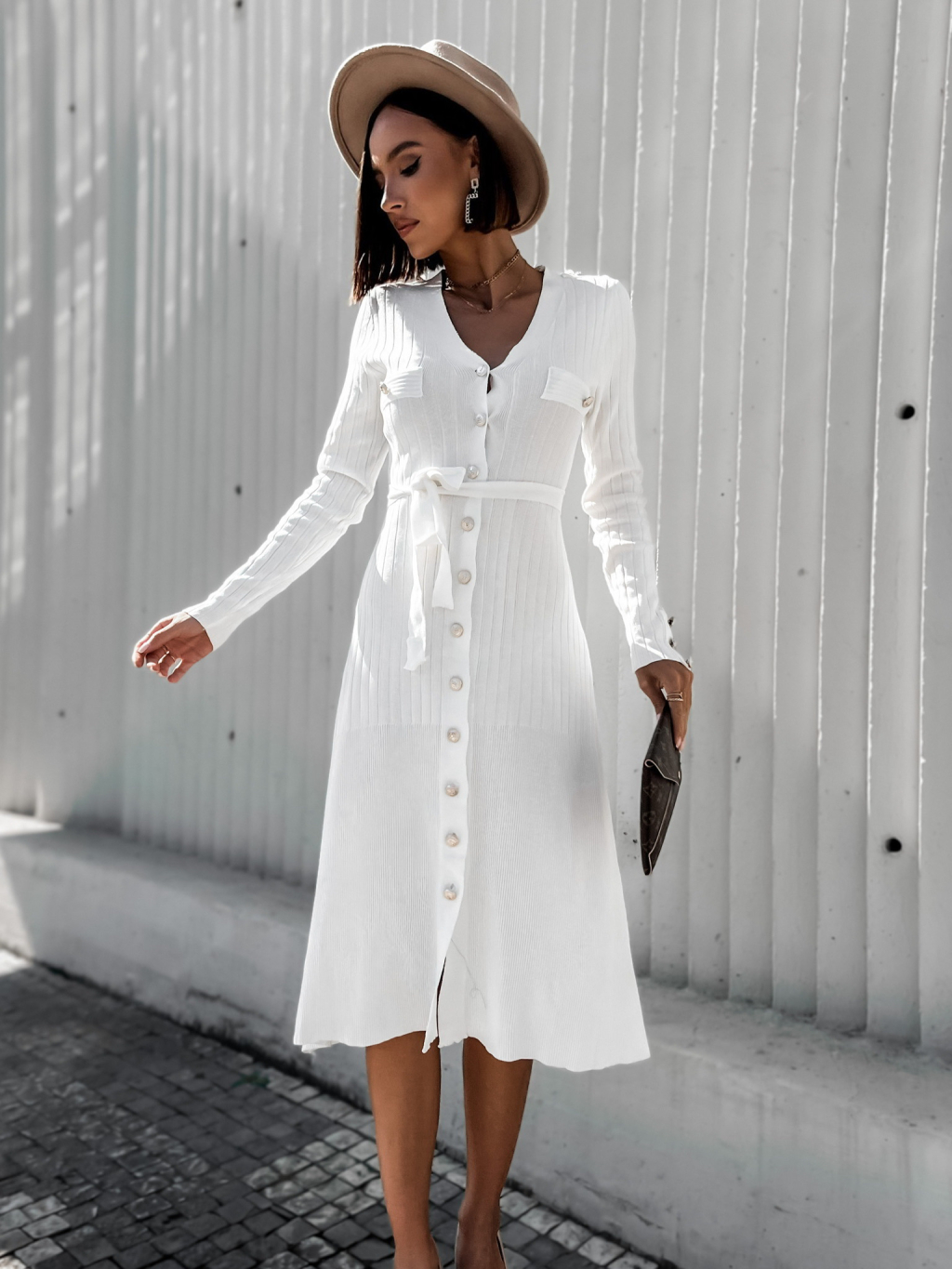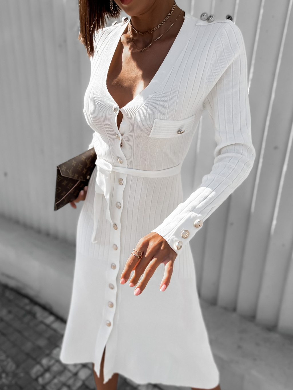Bílé elegantní šaty FLUTER na zavazování