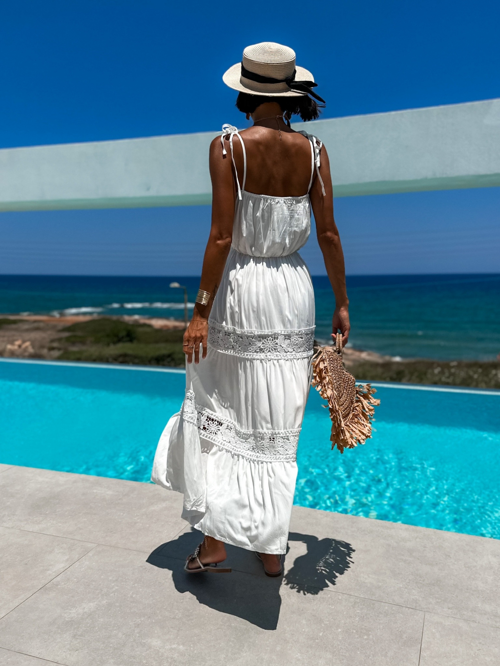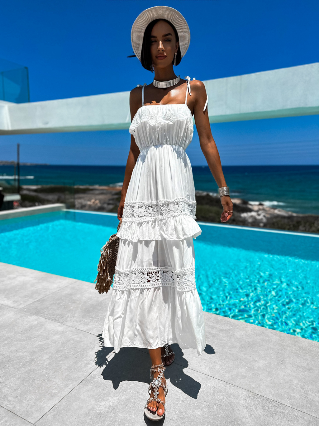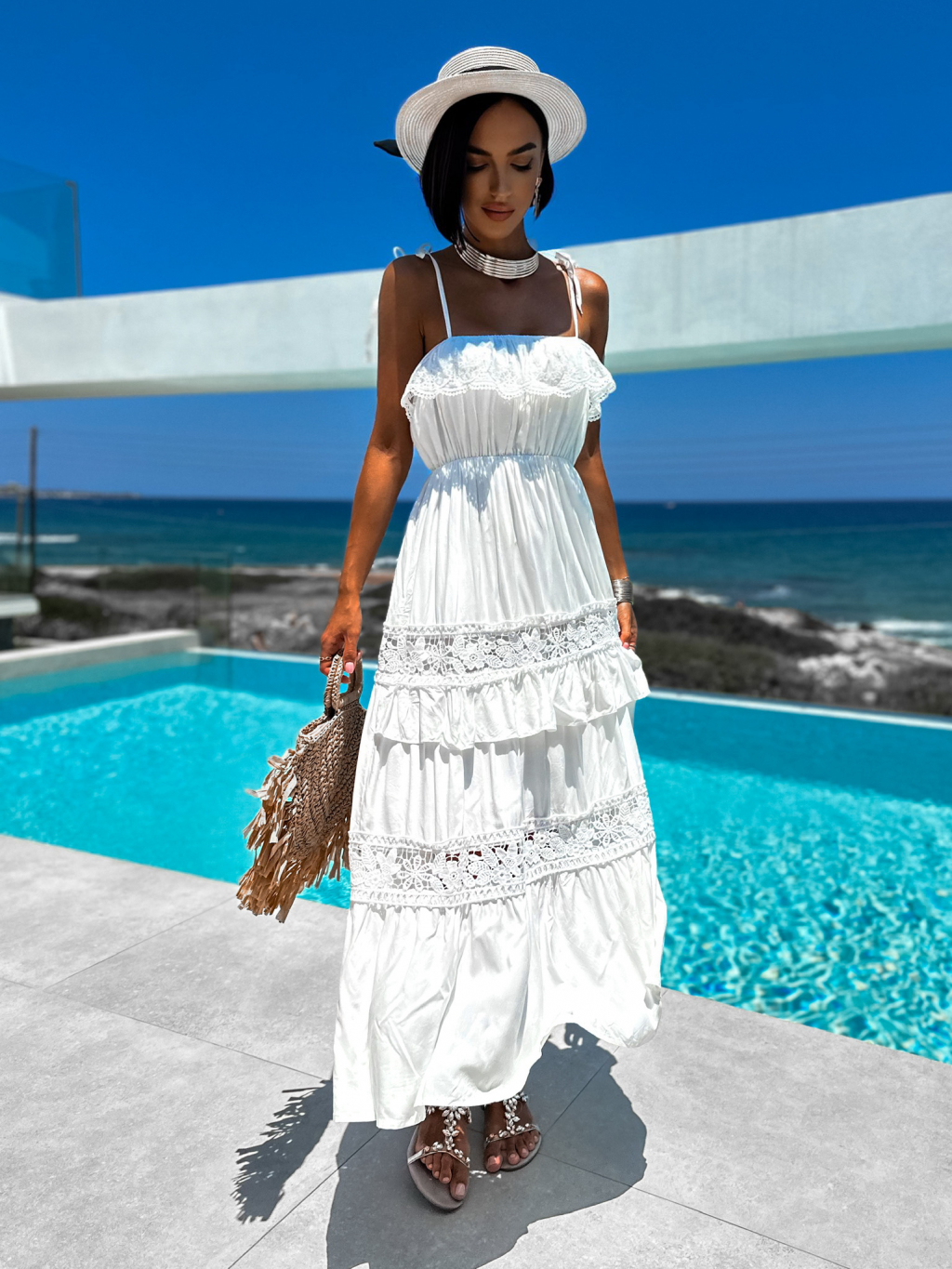 Bílé elegantní šaty SLICIE s volánky